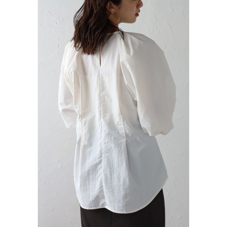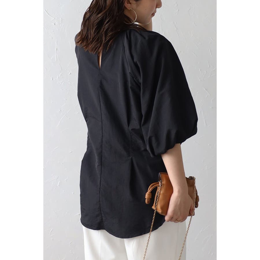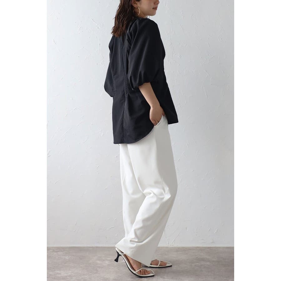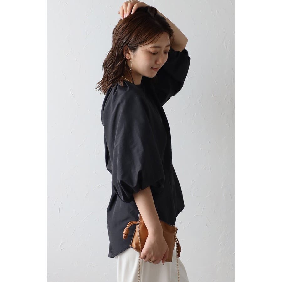 バルーンスリーブノーカラーウエストタックシャツ 77-003956