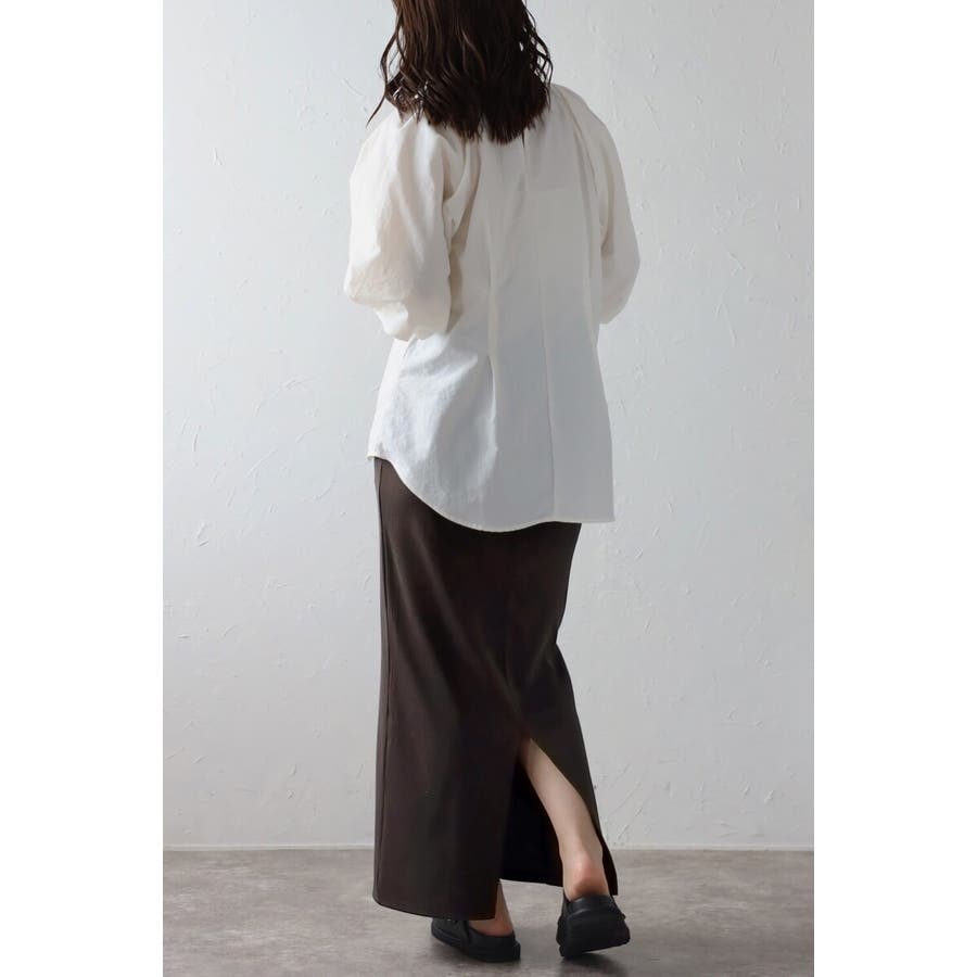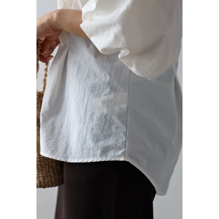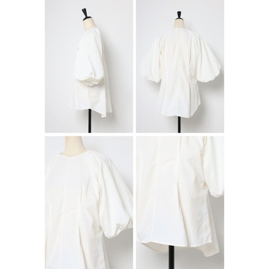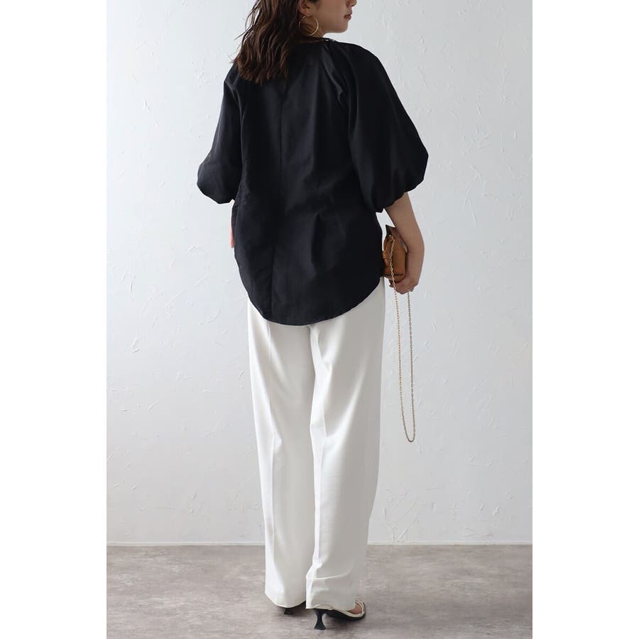 バルーンスリーブノーカラーウエストタックシャツ 77-003956