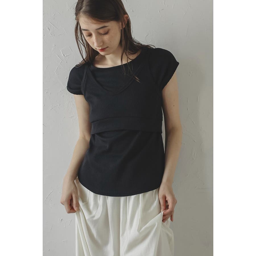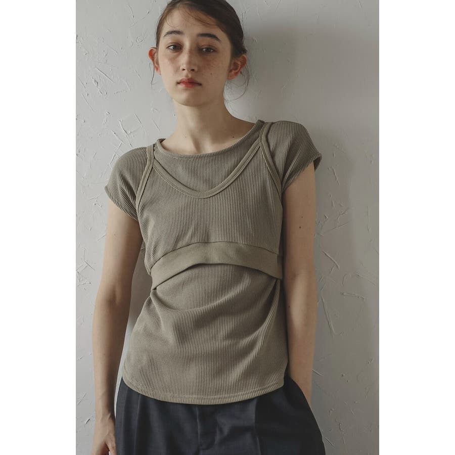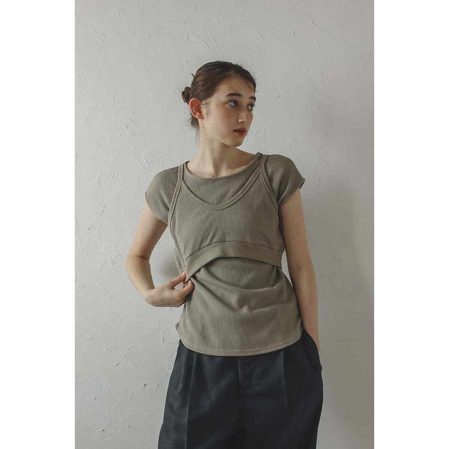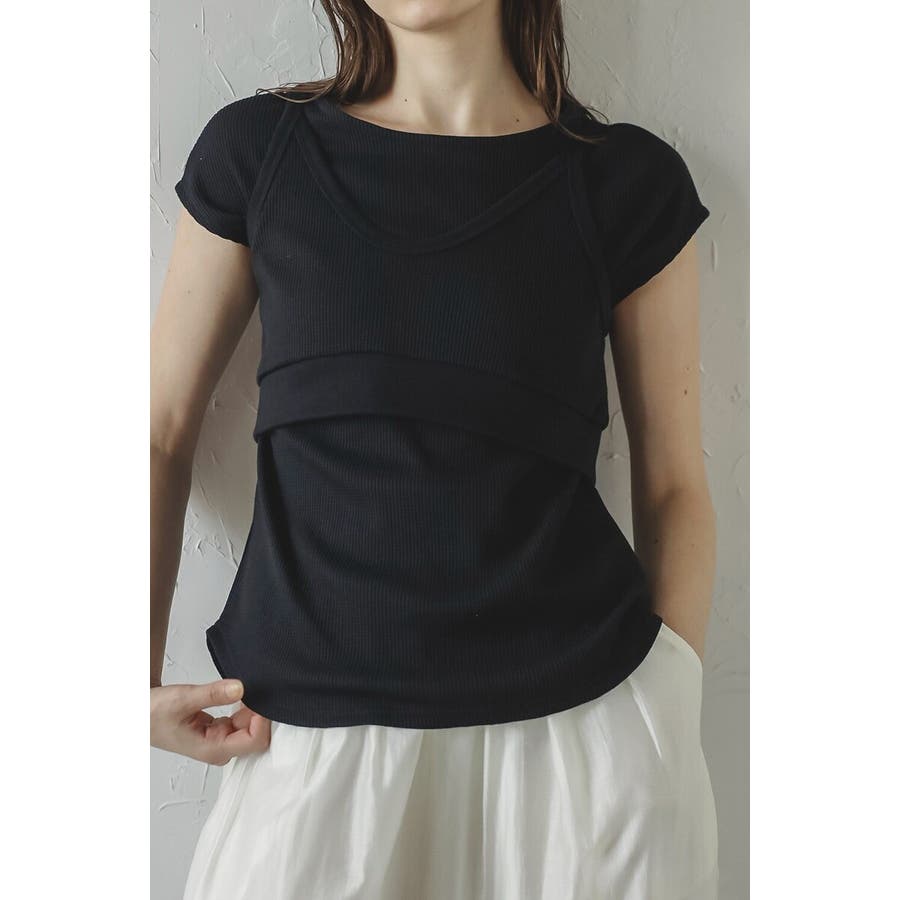 着回し自在!快適&おしゃれなビスチェセットトップスシンプルで使いやすい、サーマル素材の2点セット。