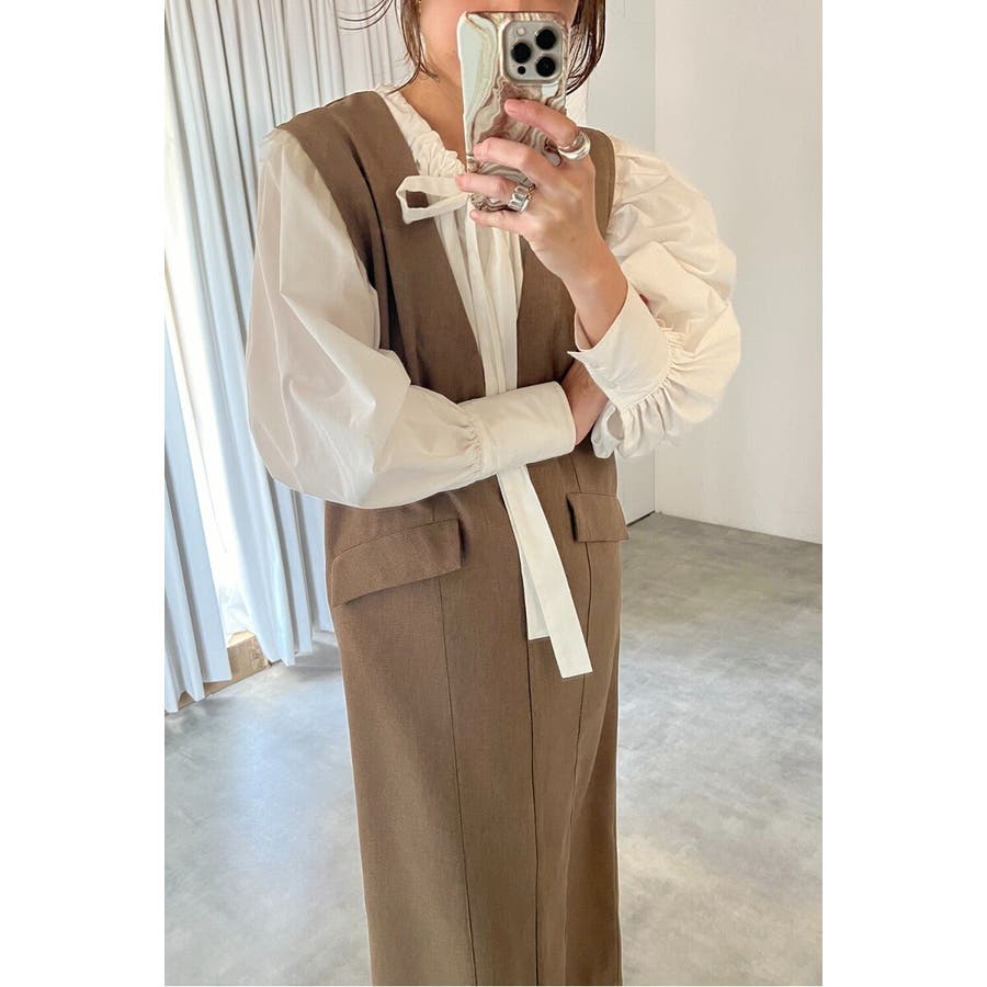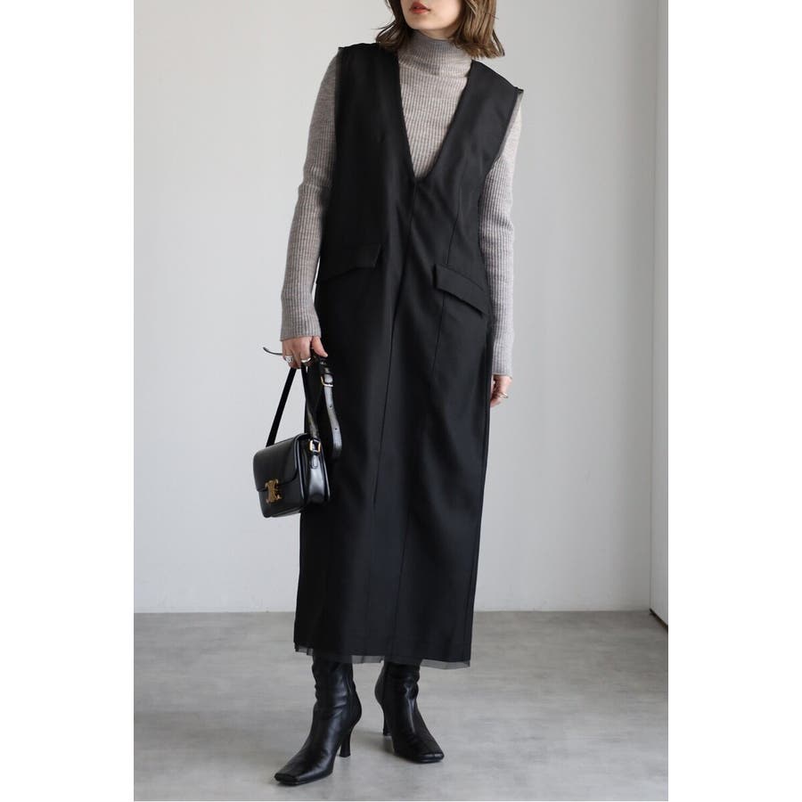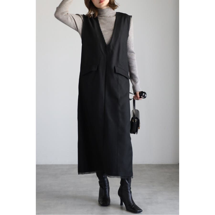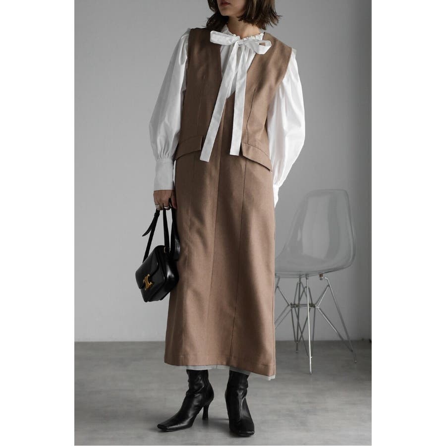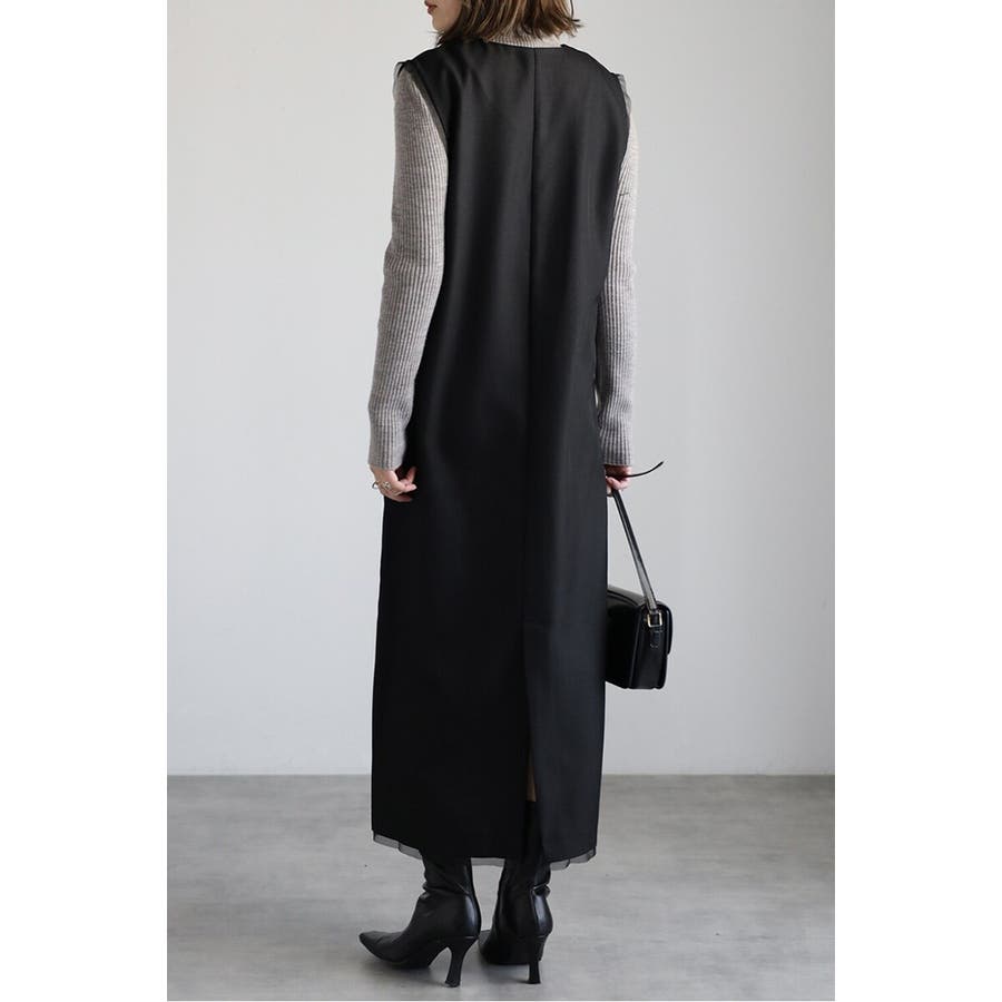 レイヤード風デザインで着映える上品ジャンスカワンピース