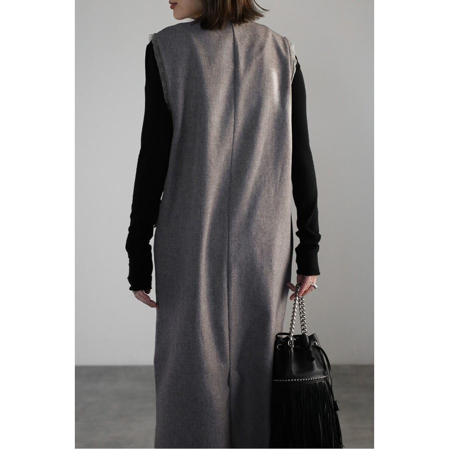 杢調ツイル素材が上品な印象を与えるジャンスカワンピース。
