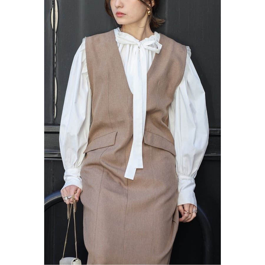 ライトツイルレイヤード風Vネックジャンスカ 77-004499