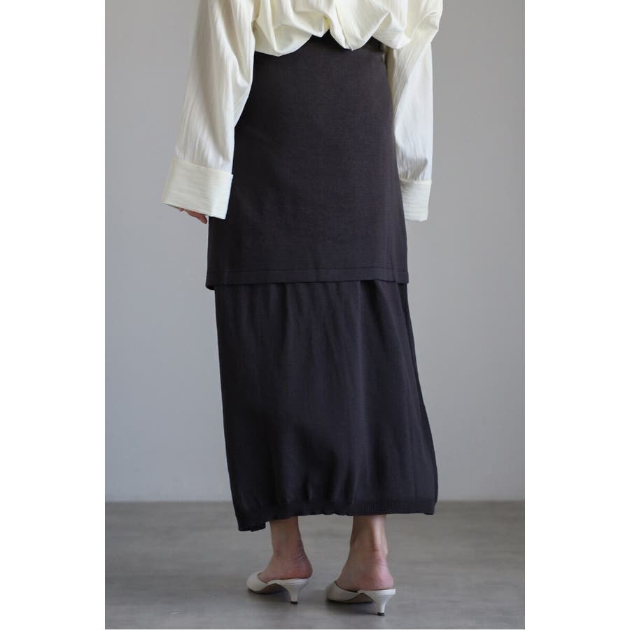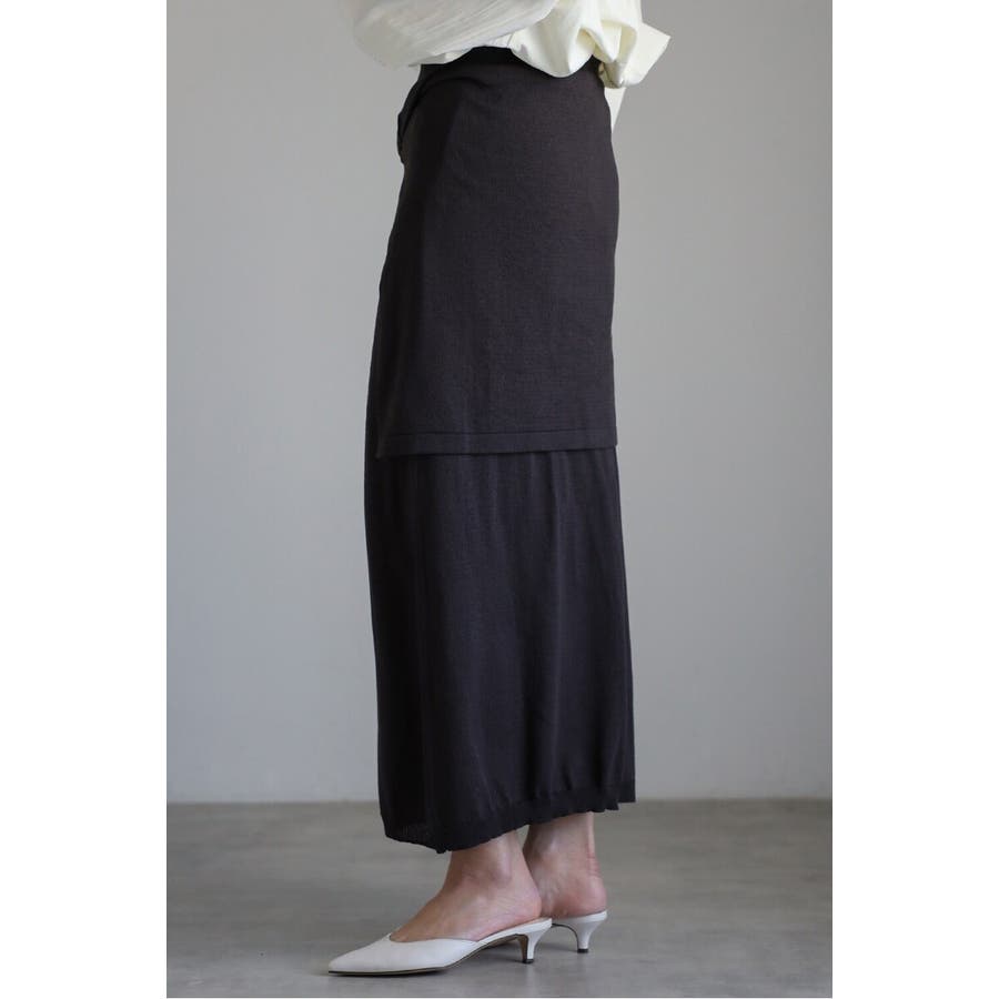 一枚で重ね着スタイルが完成する、レイヤード風ニットスカート。