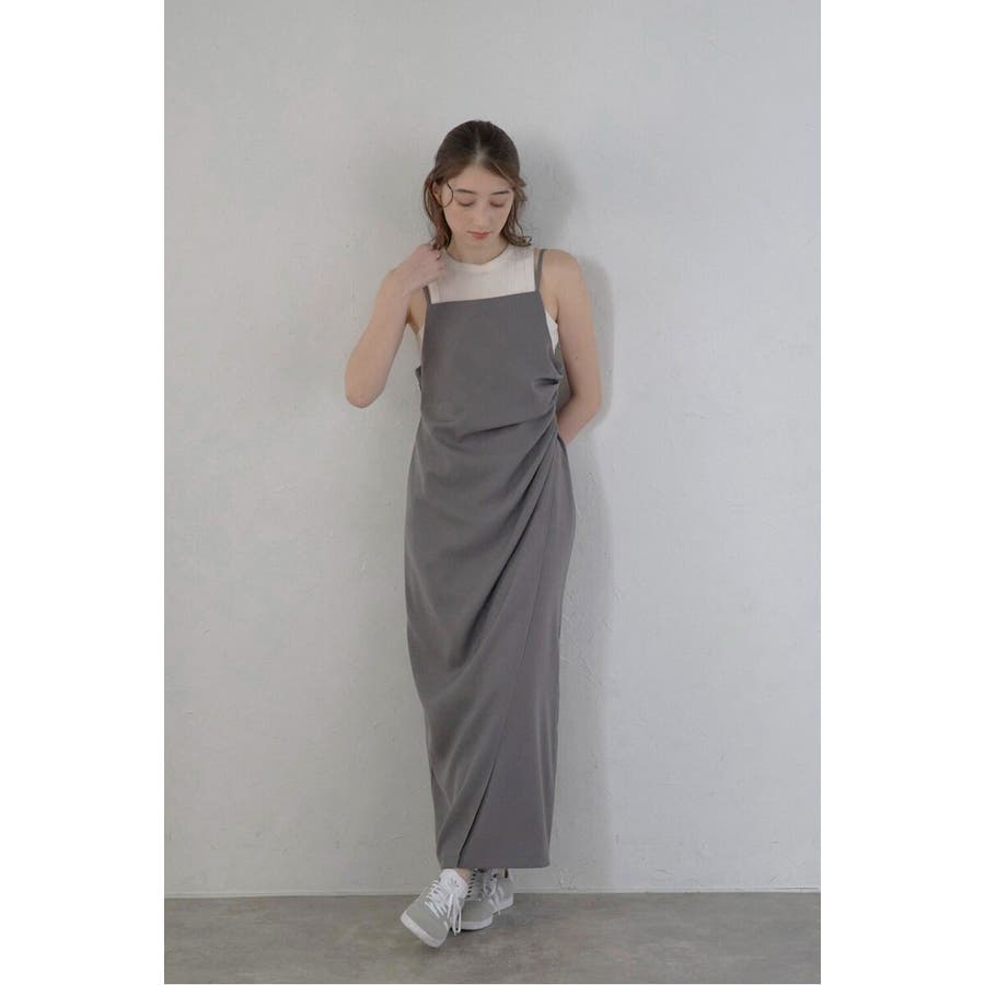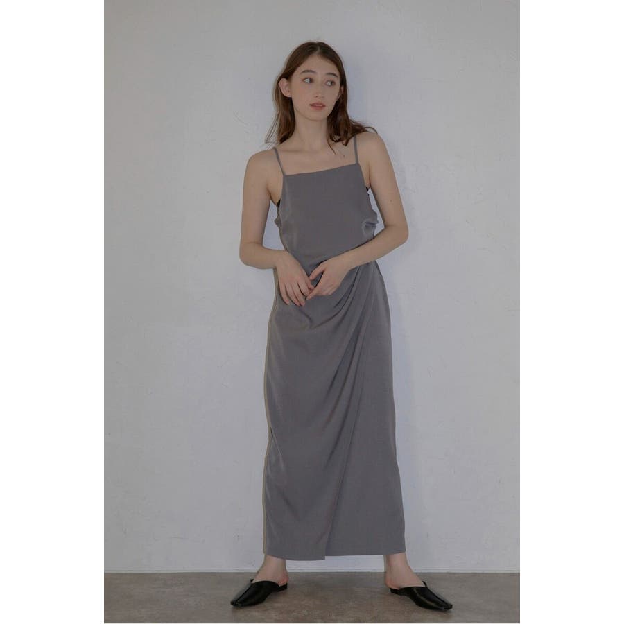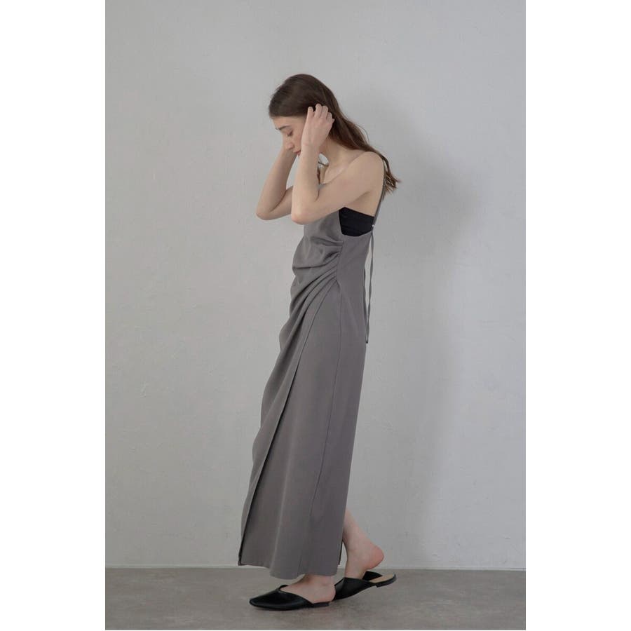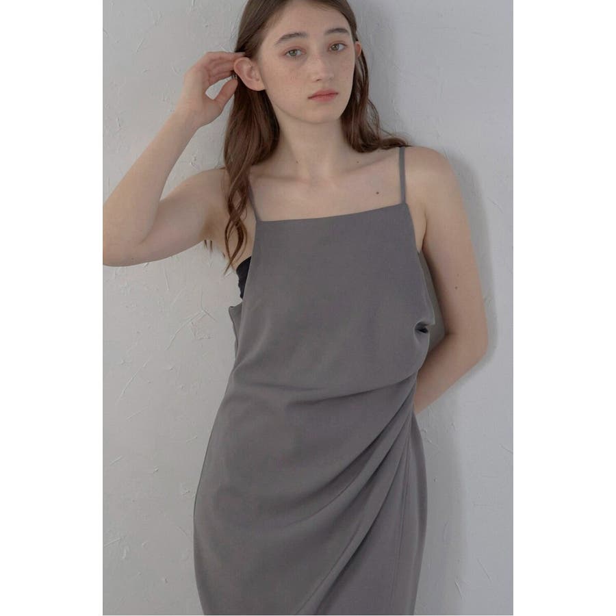 上品に魅せるモダンなキャミソールドレス身体に自然に寄り添うタックディテールと、アシンメトリーデザインが目を惹くキャミワンピース。