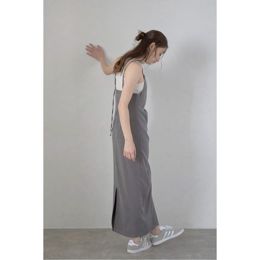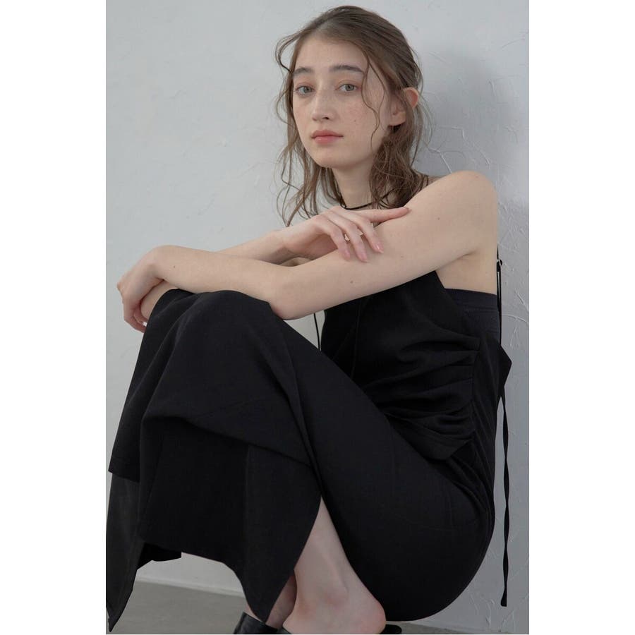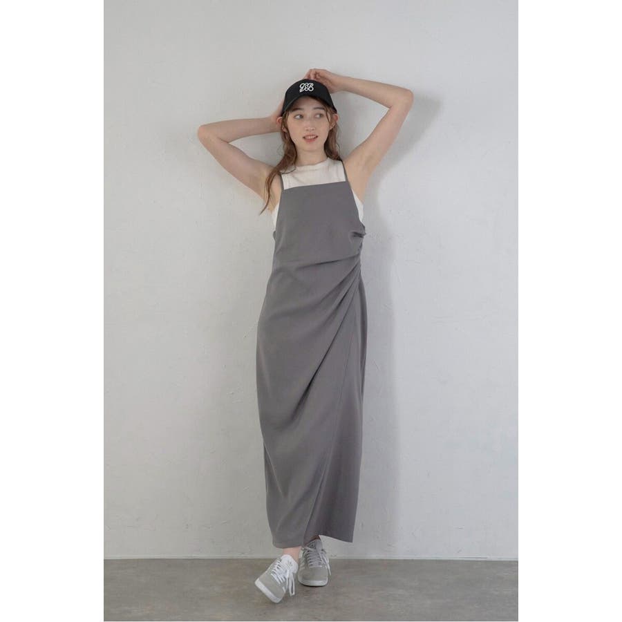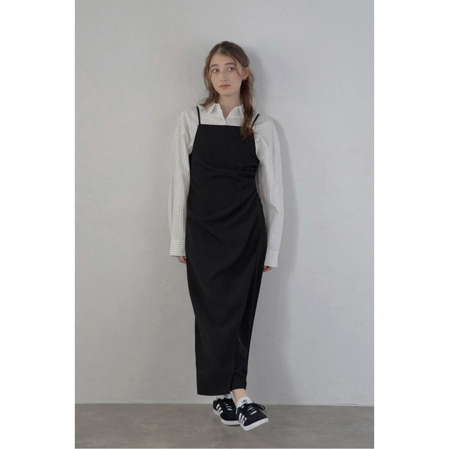 上品に魅せるモダンなキャミソールドレス身体に自然に寄り添うタックディテールと、アシンメトリーデザインが目を惹くキャミワンピース。