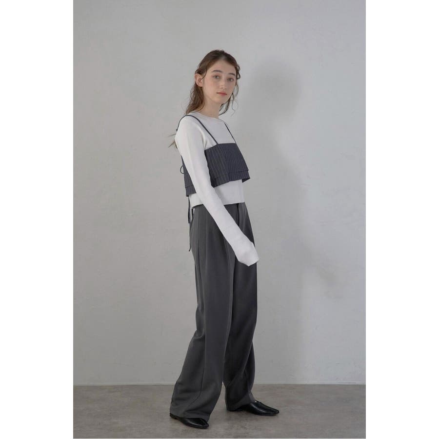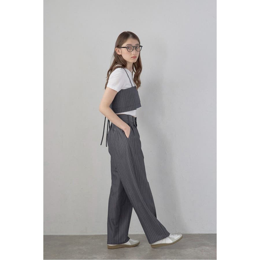 ピンストライプ柄がモダンで上品な印象を与え、大人のスタイリングに最適です。