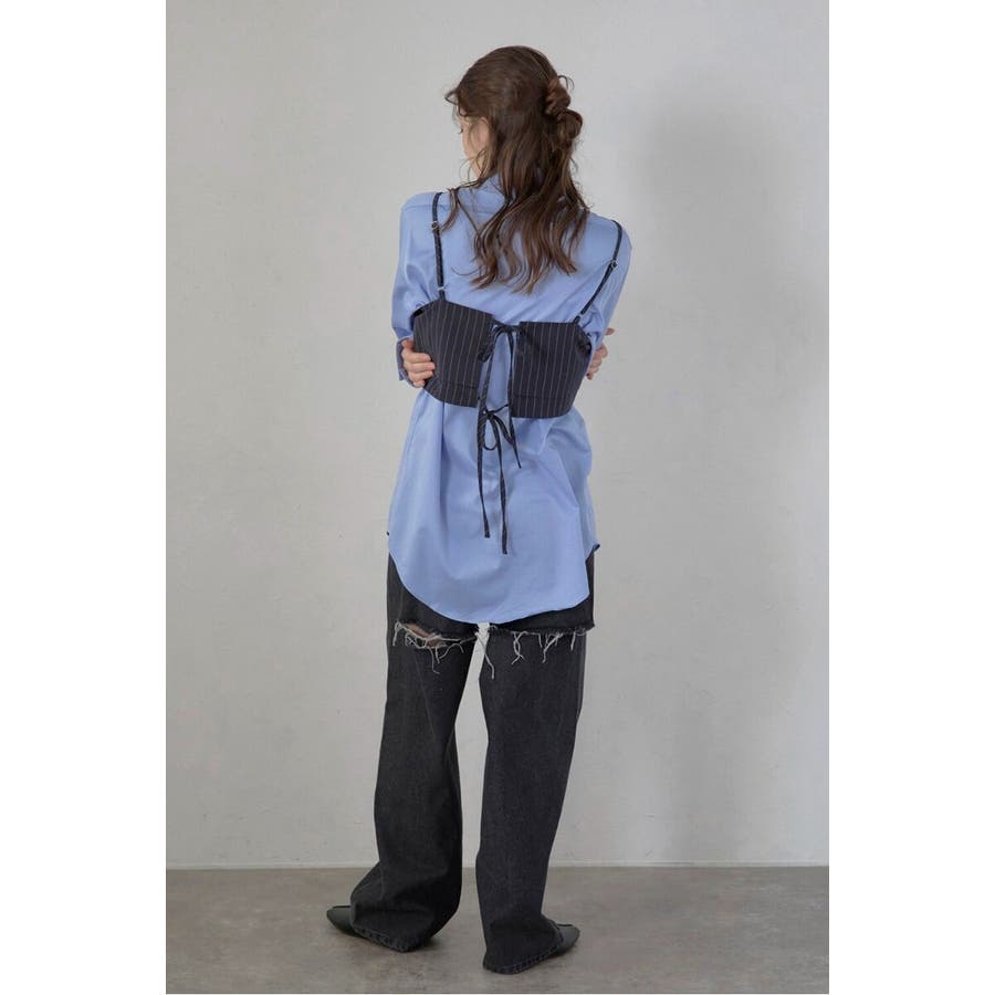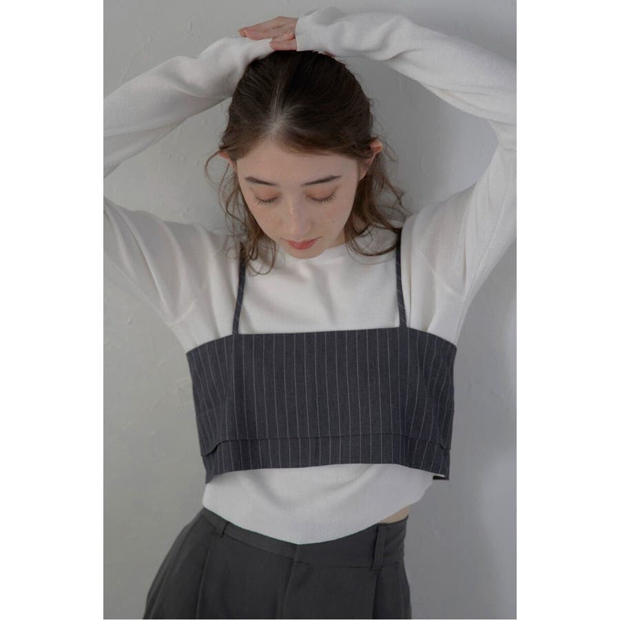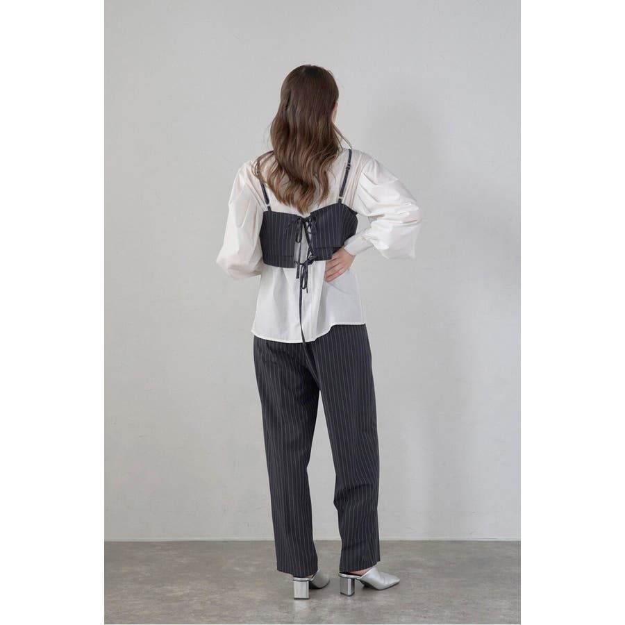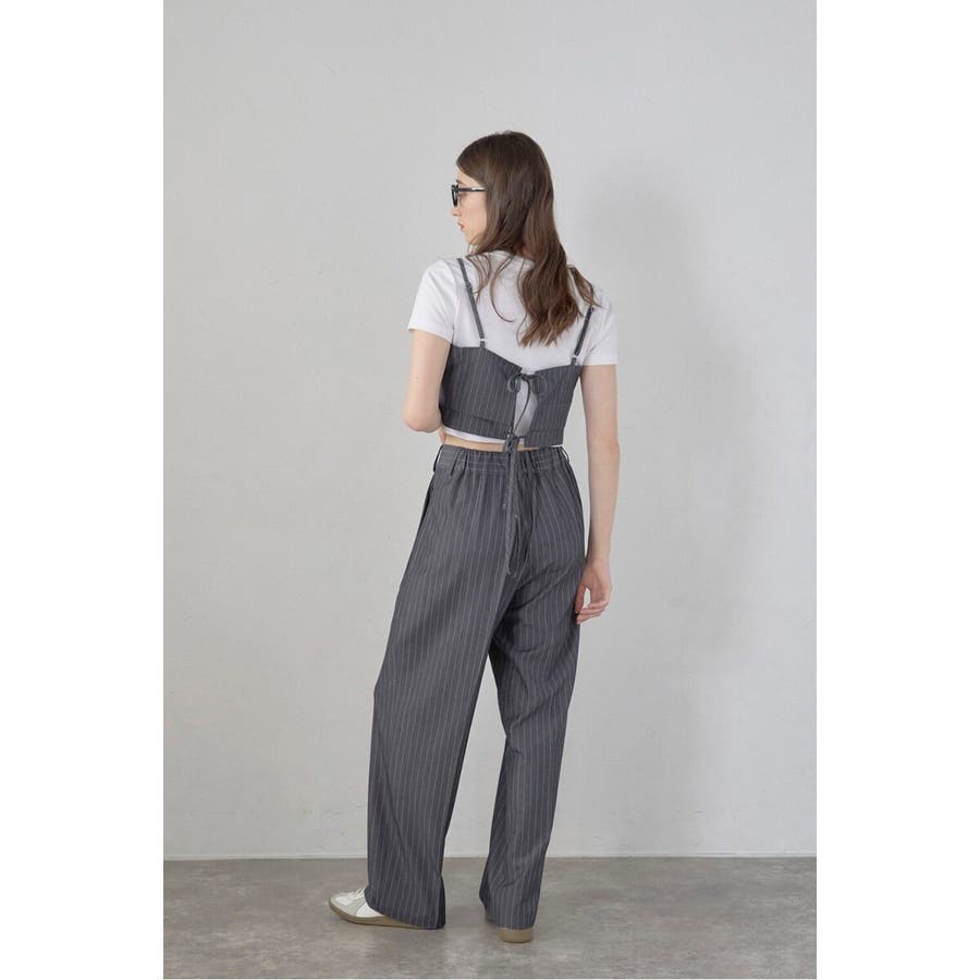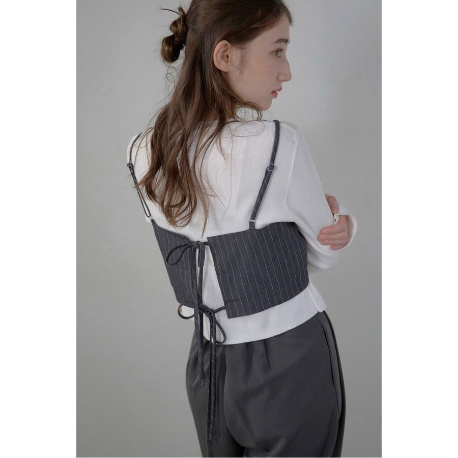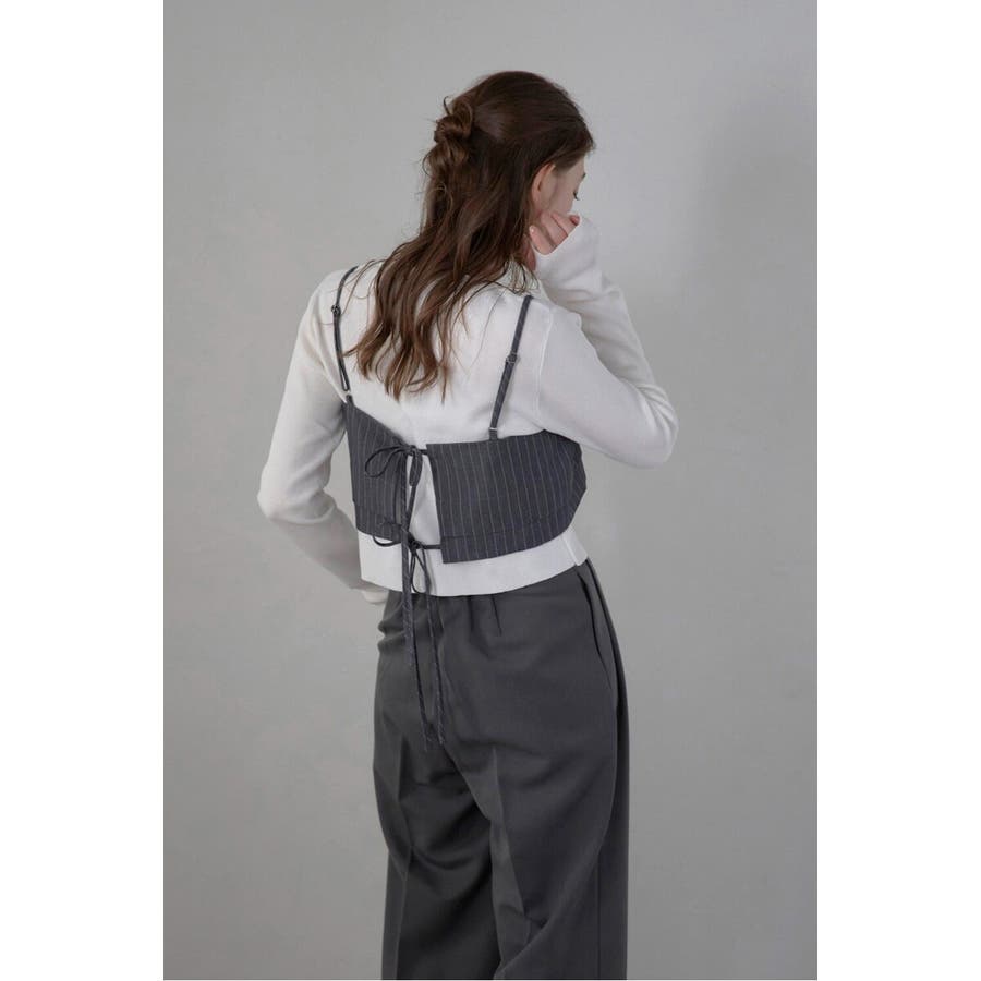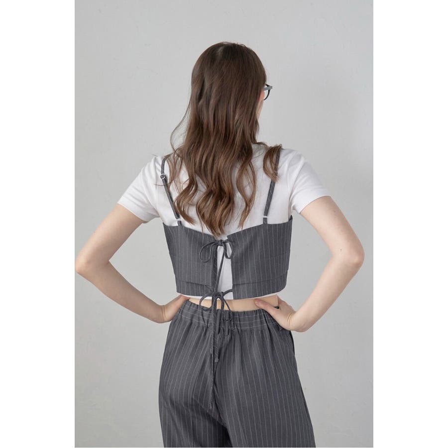 背中で差をつける!ピンストライプビスチェバックリボンが華やかさをプラスする、ピンストライプ柄のビスチェ。