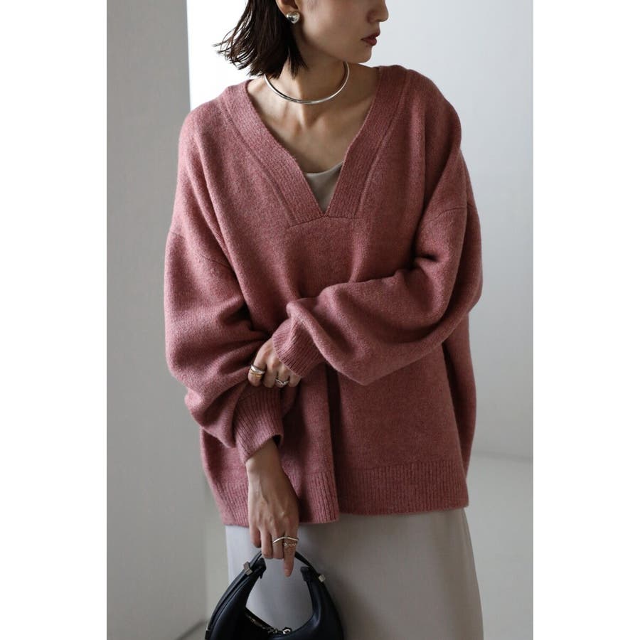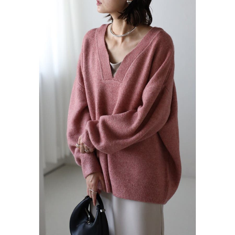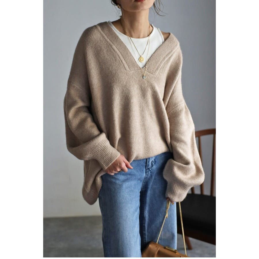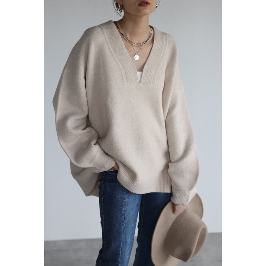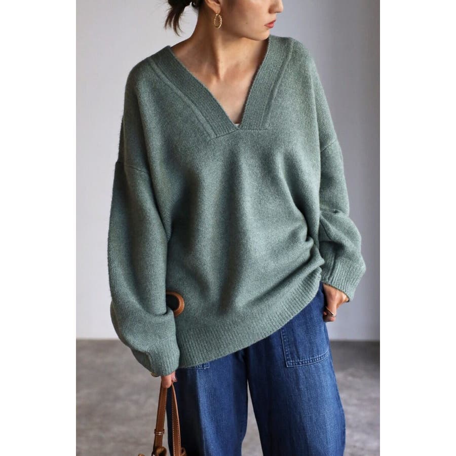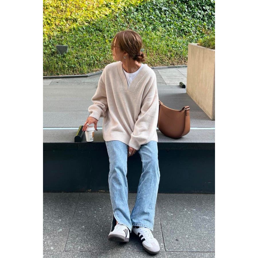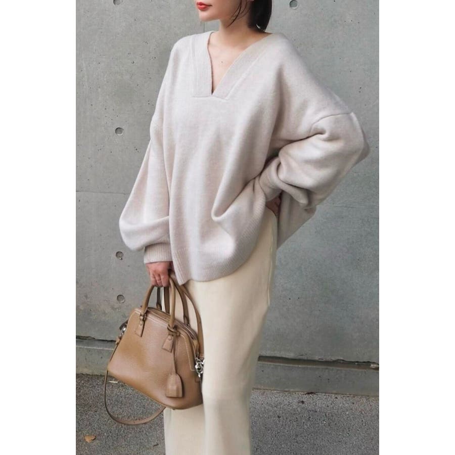 深めのVネック開きでオーバーサイズの抜け感のあるシルエット。