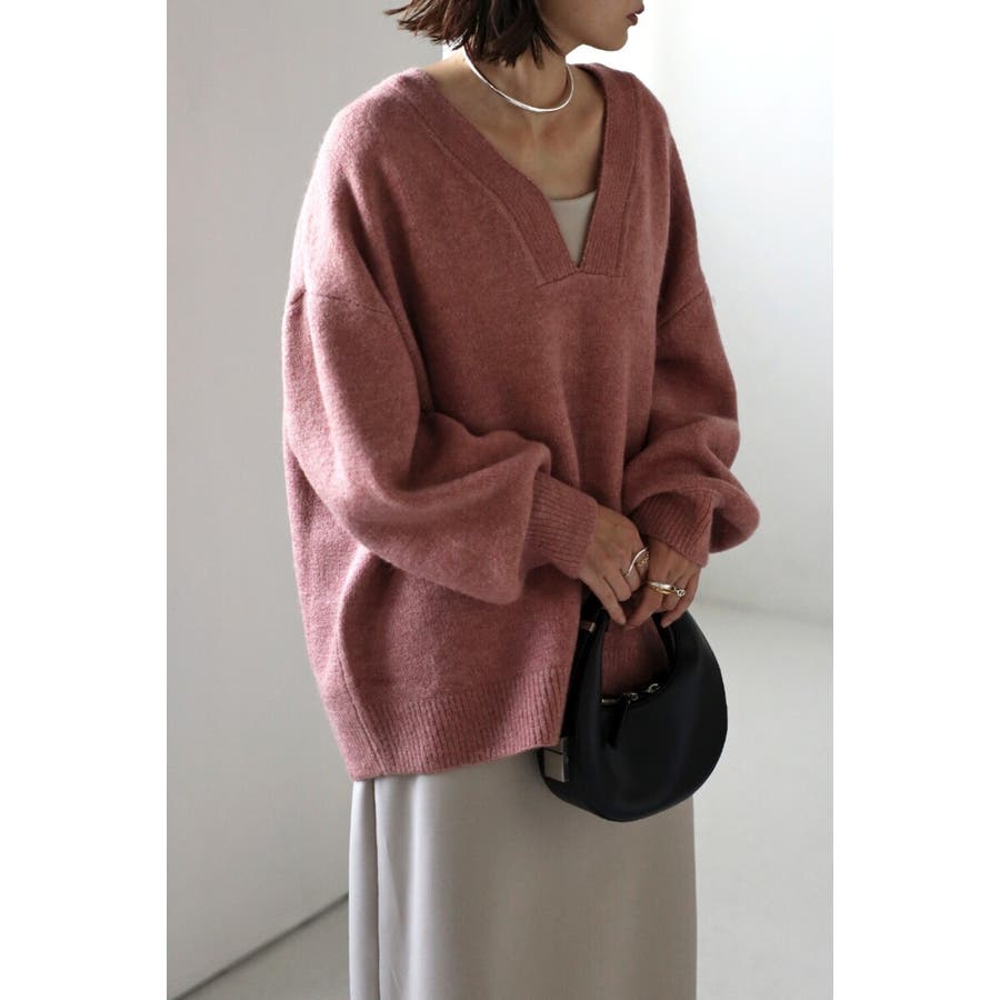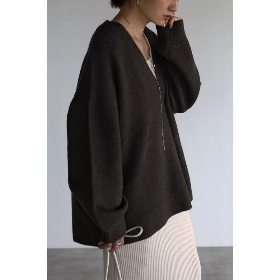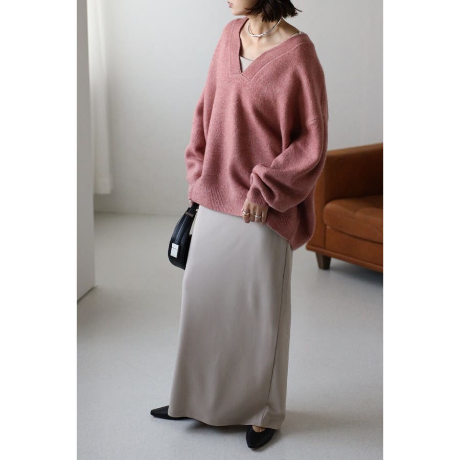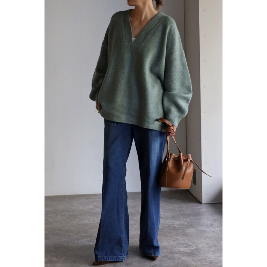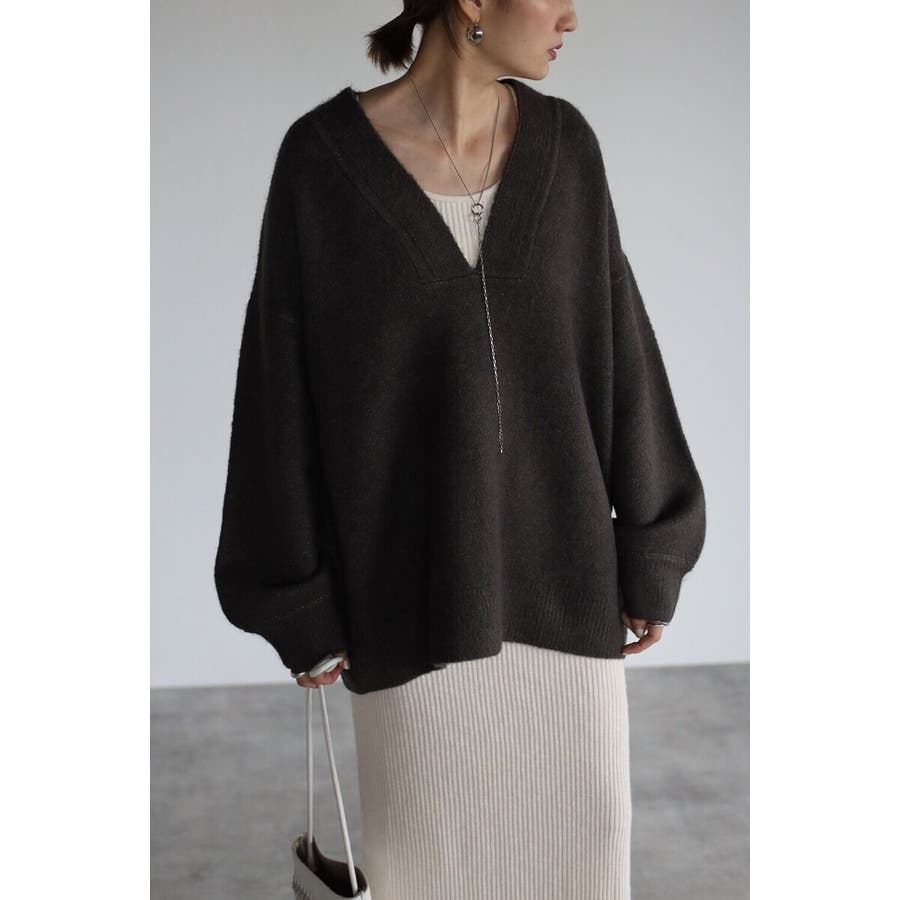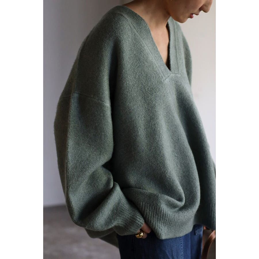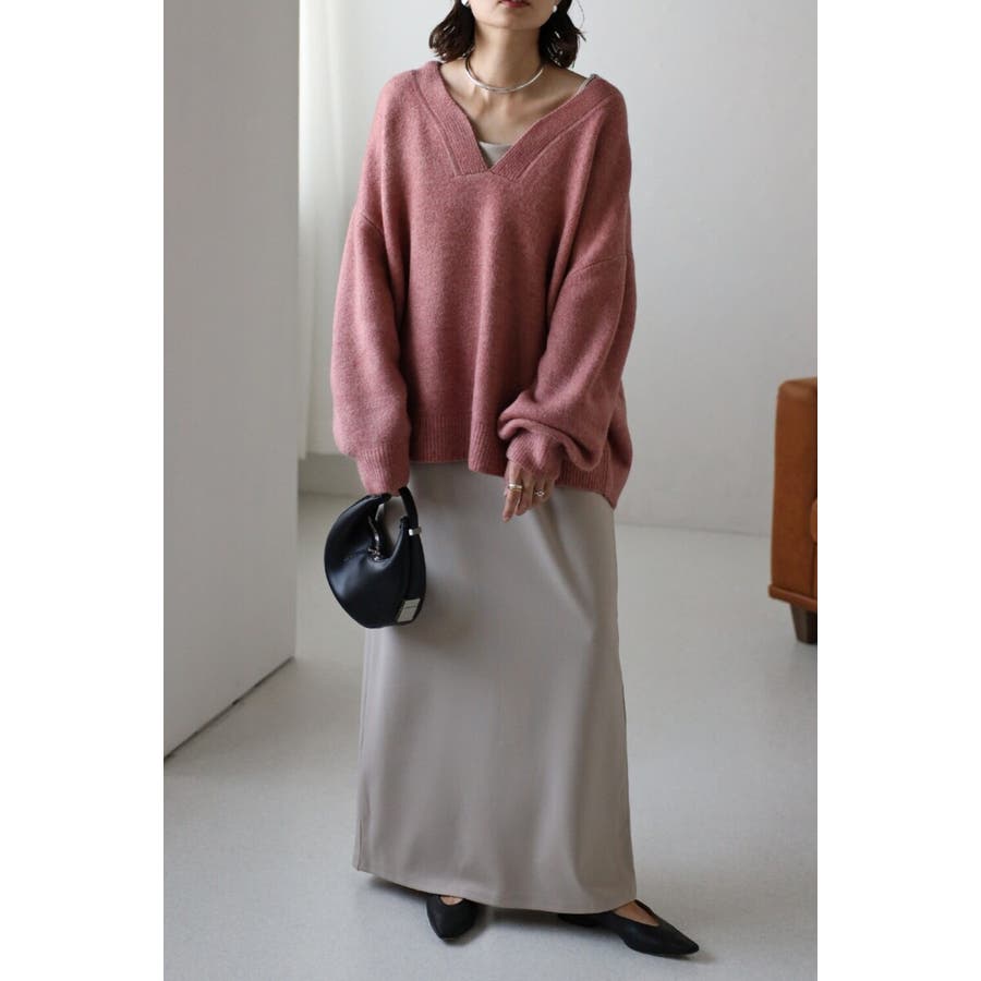 深めのVネック開きでオーバーサイズの抜け感のあるシルエット。