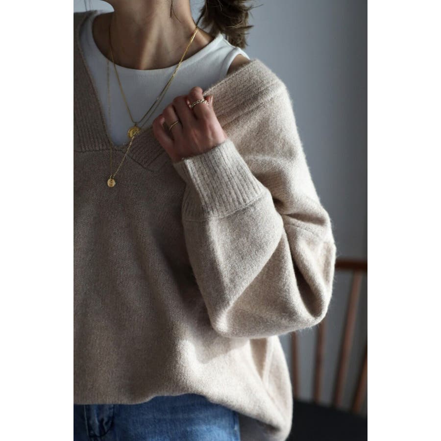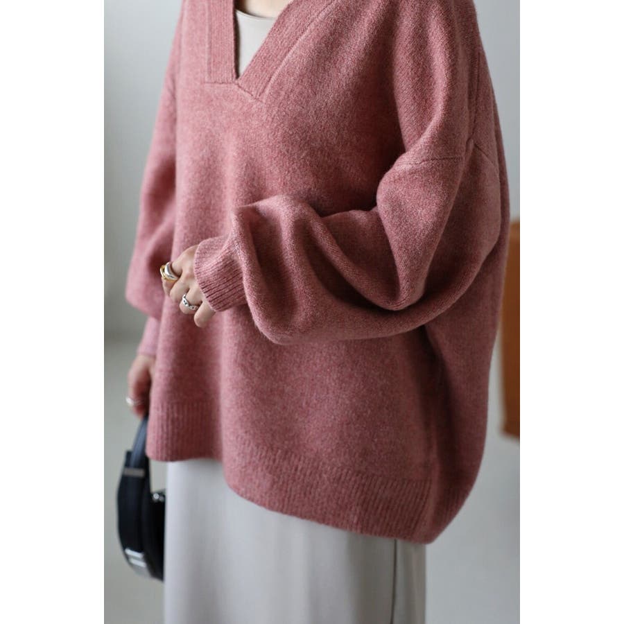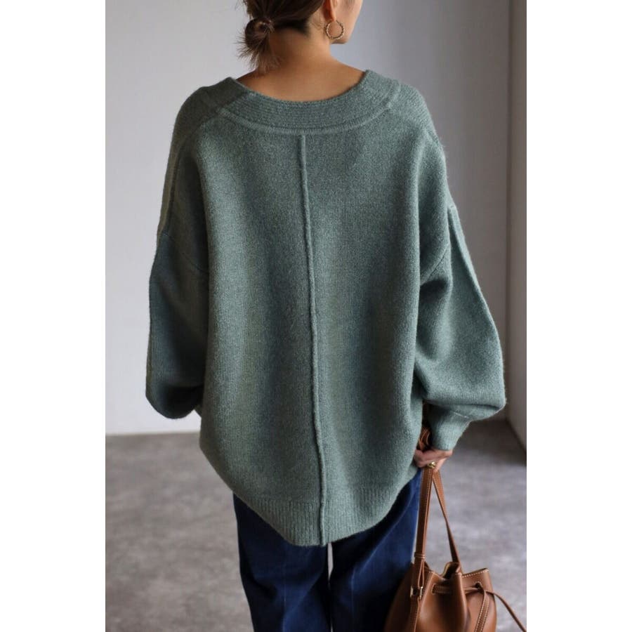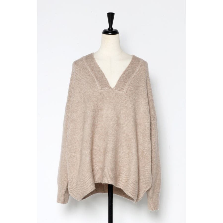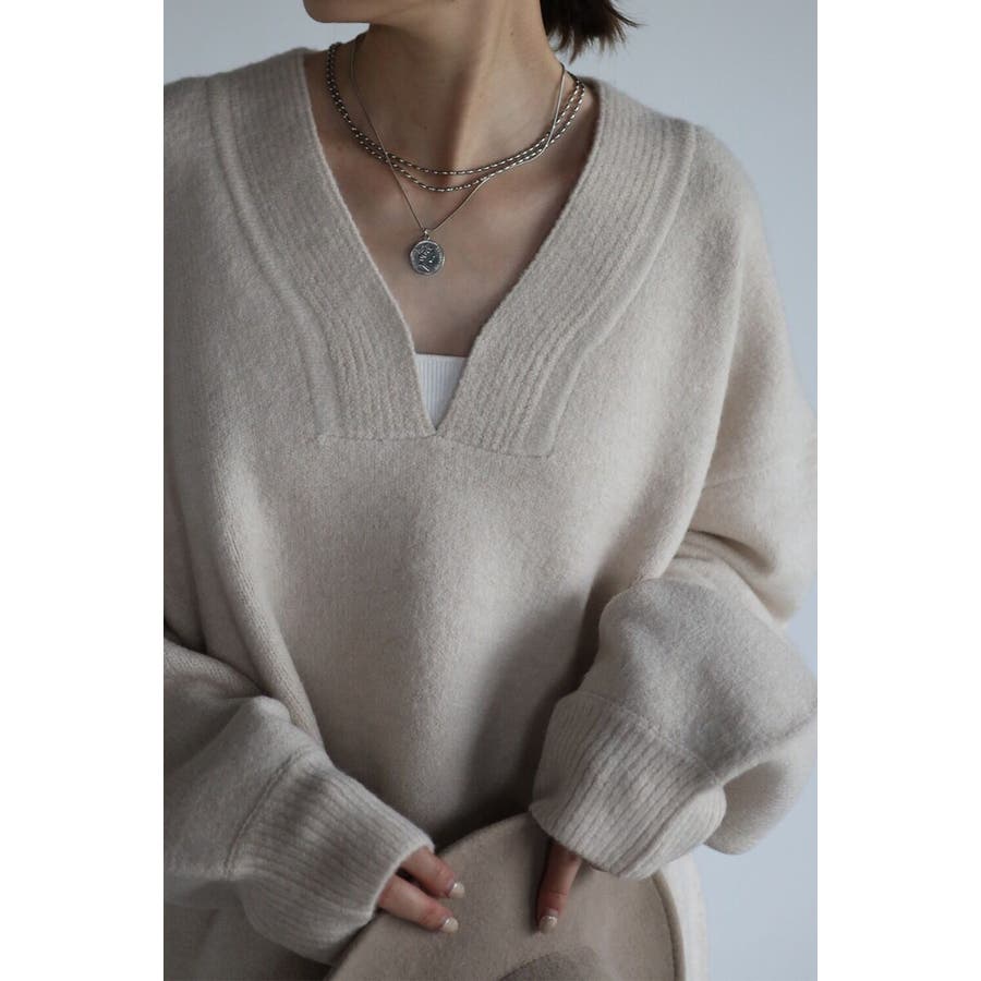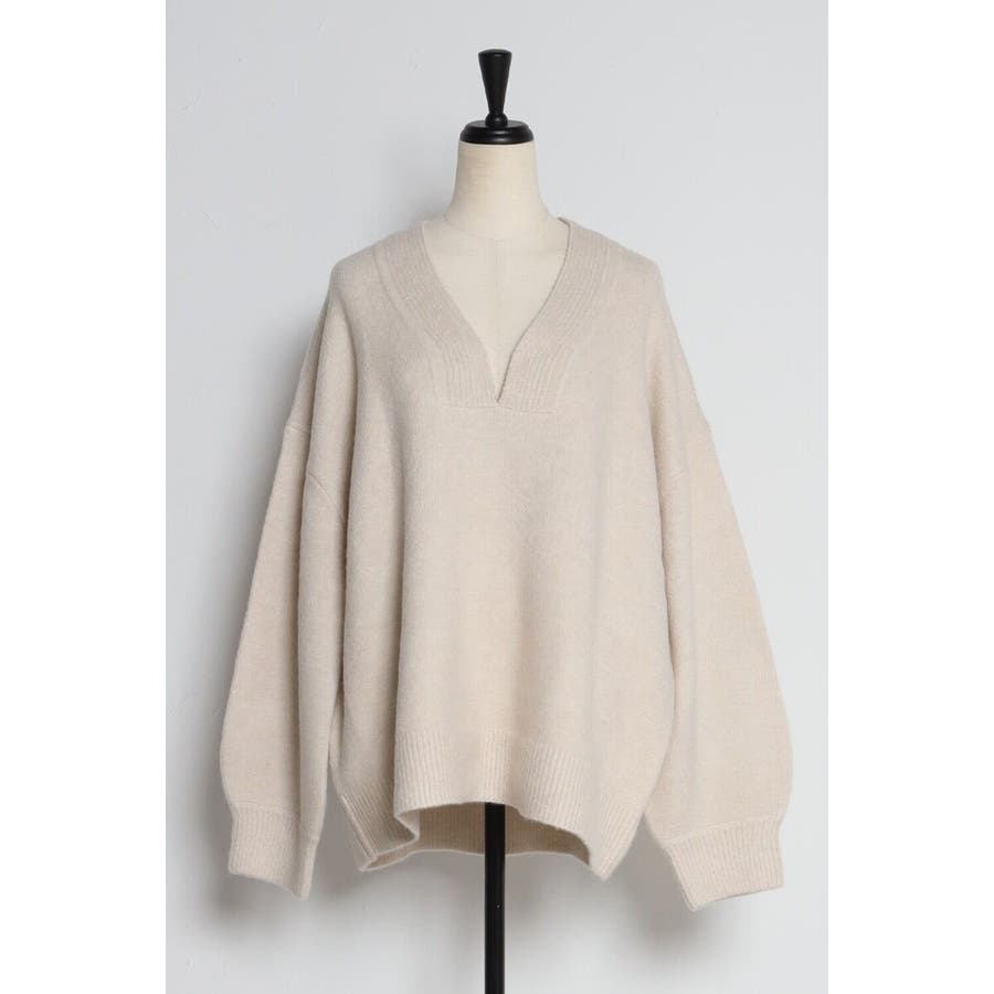 深めのVネック開きでオーバーサイズの抜け感のあるシルエット。