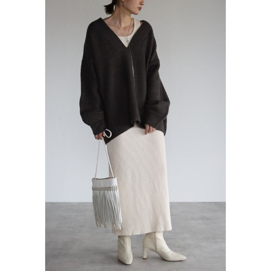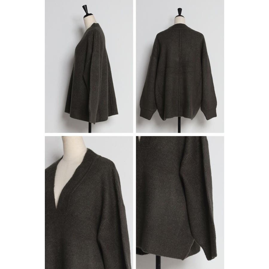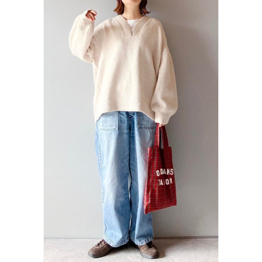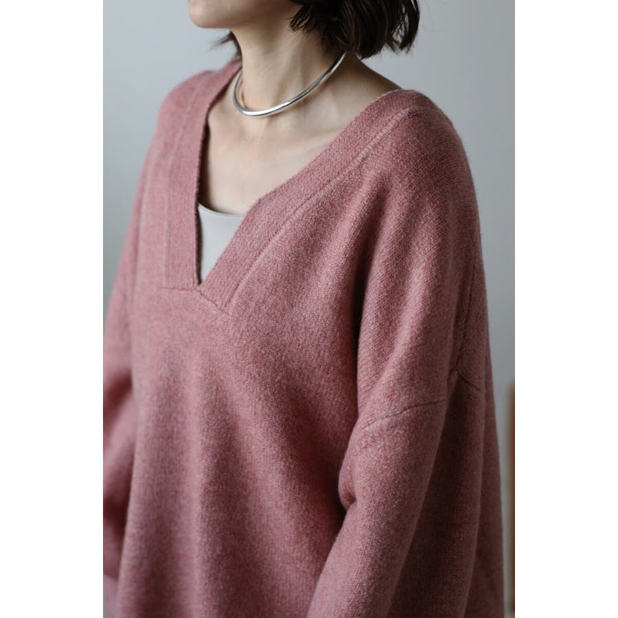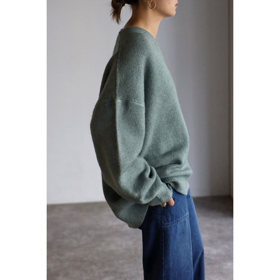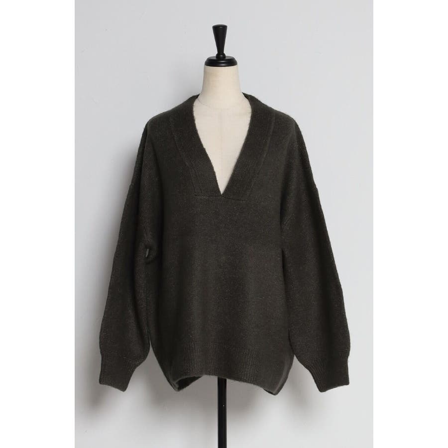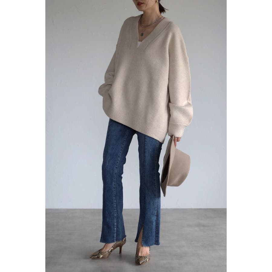 深めのVネック開きでオーバーサイズの抜け感のあるシルエット。