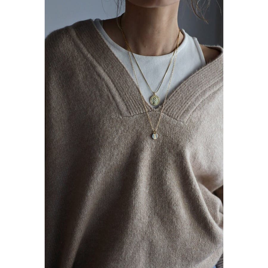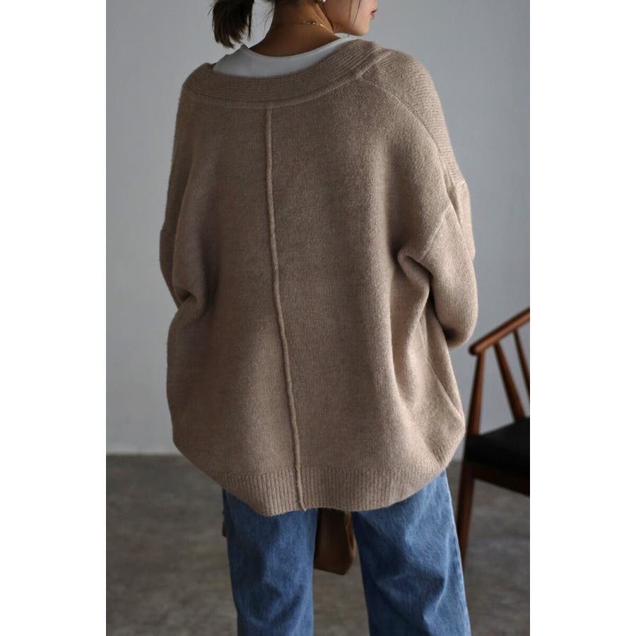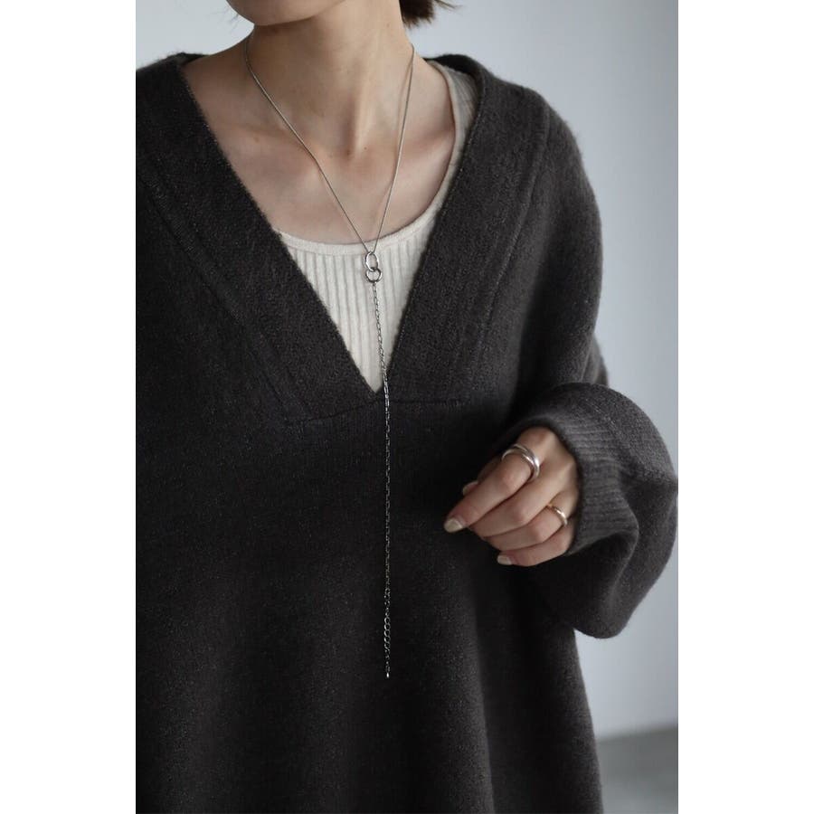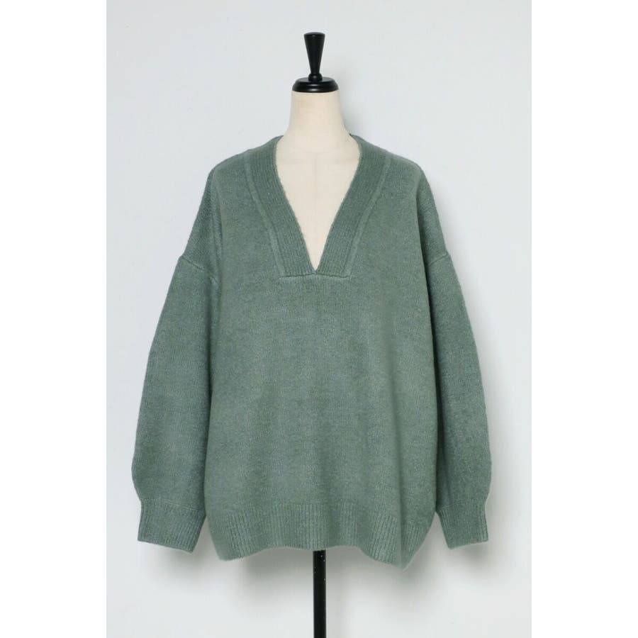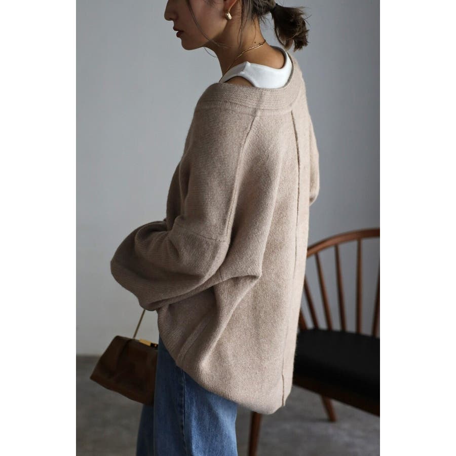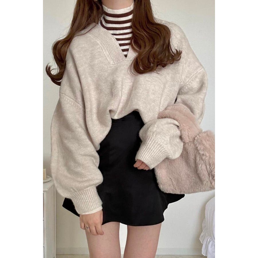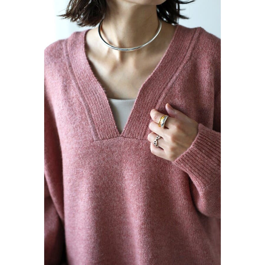 深めのVネック開きでオーバーサイズの抜け感のあるシルエット。