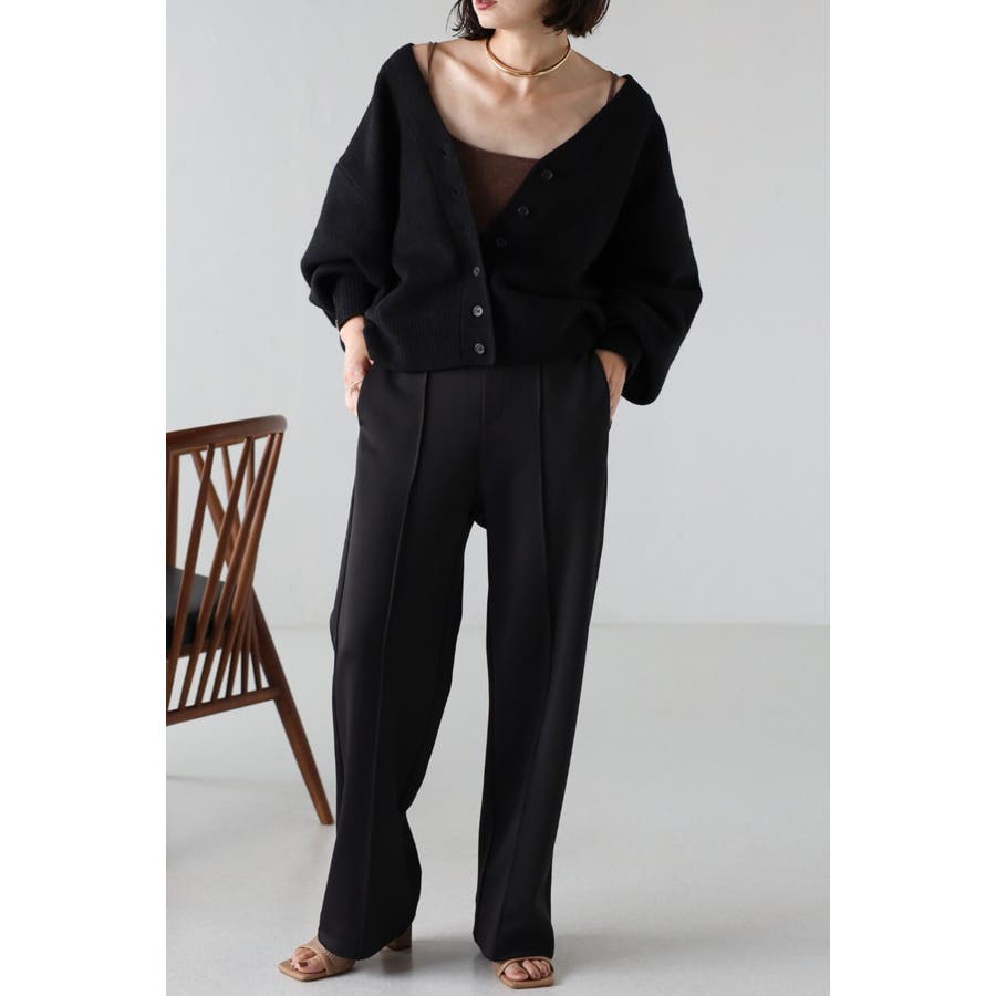 トレンドのVネックにサイドの切替シルエットが、オシャレで細見えも叶う優秀ディテール。