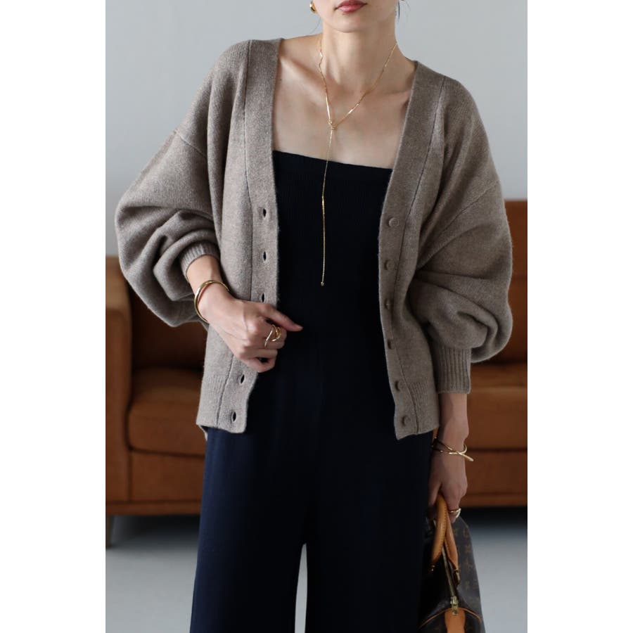 包まれるようなコクーンシルエットが魅力的なニットカーディガン。