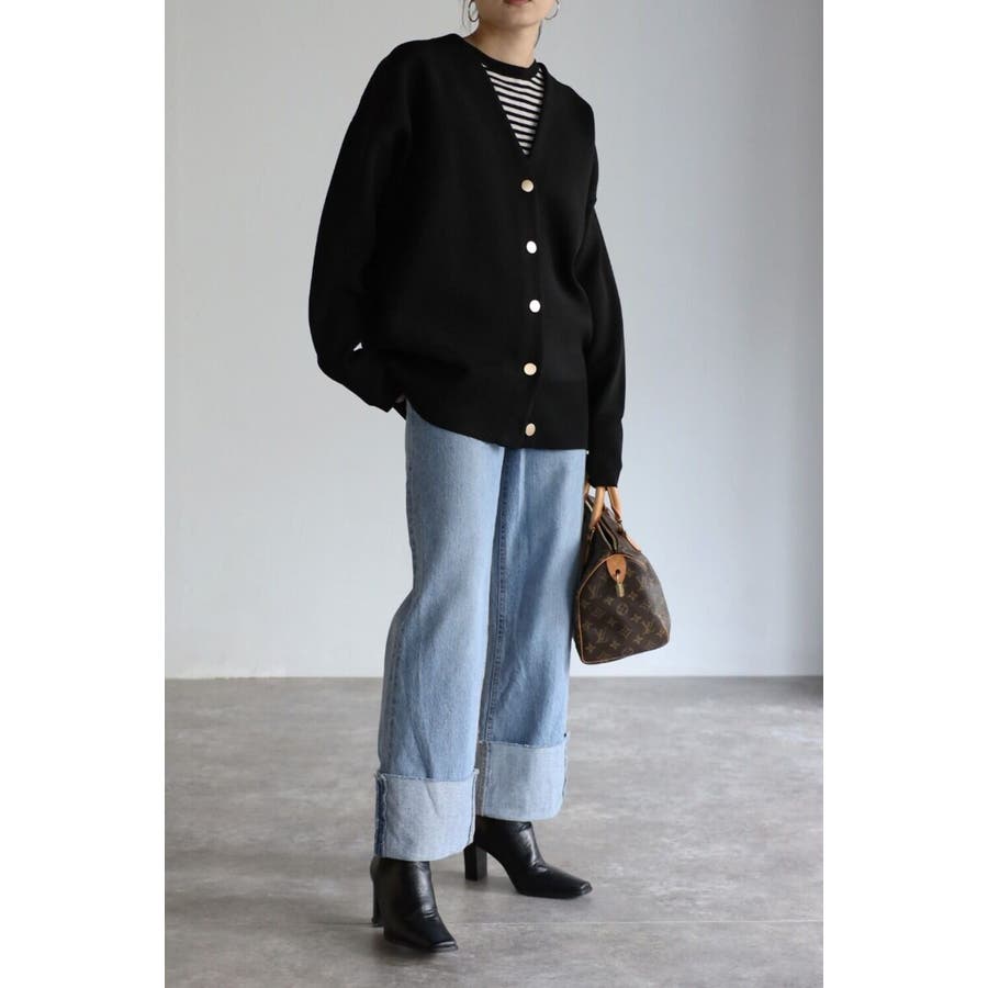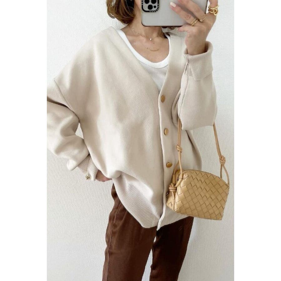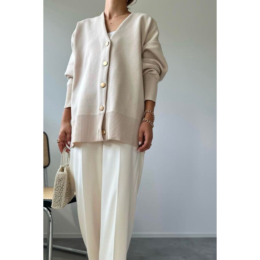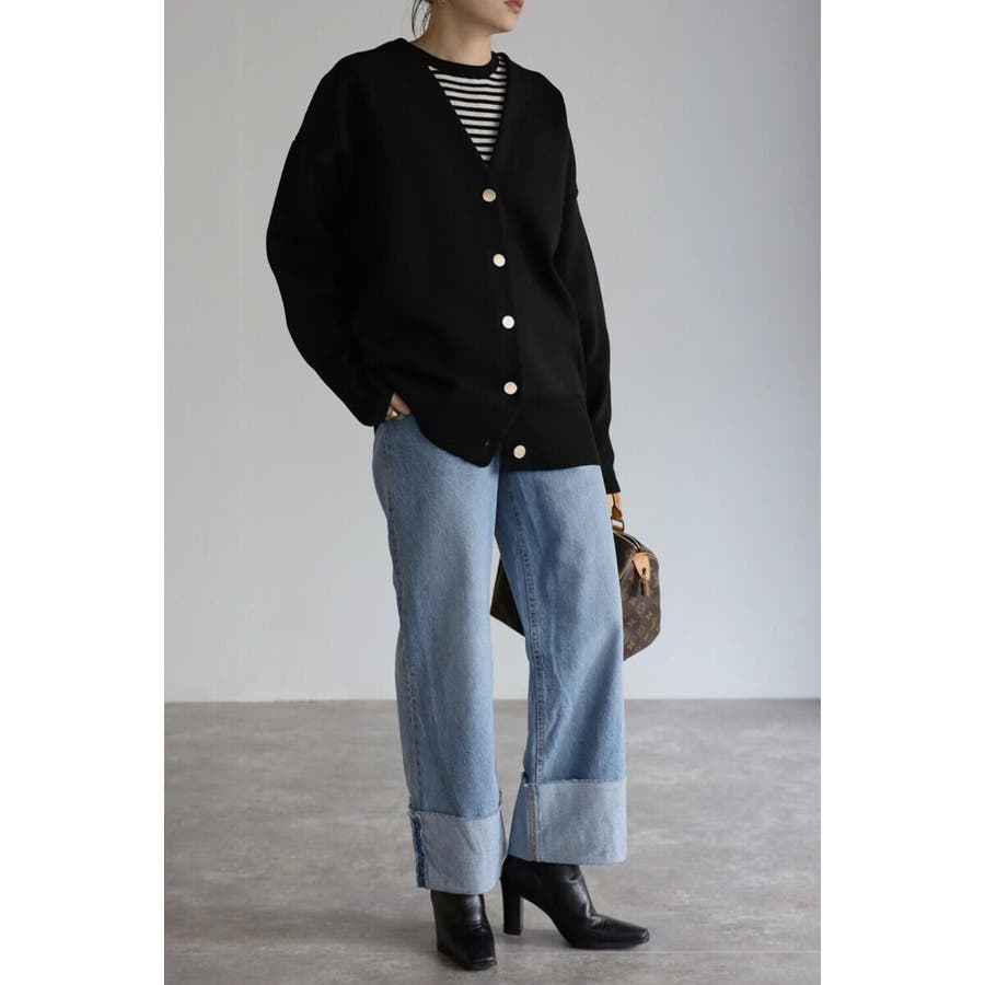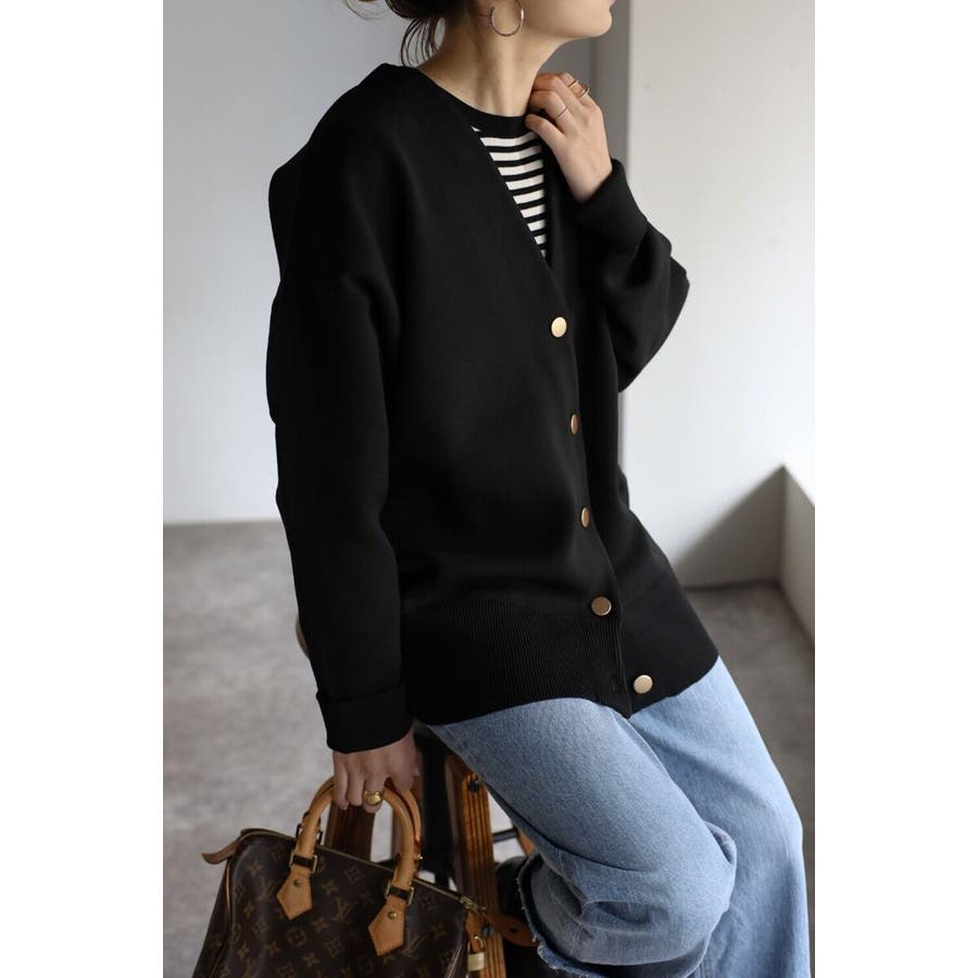 マットな金ボタンがきれいめにしてくれて、かわいいカーディガンです。