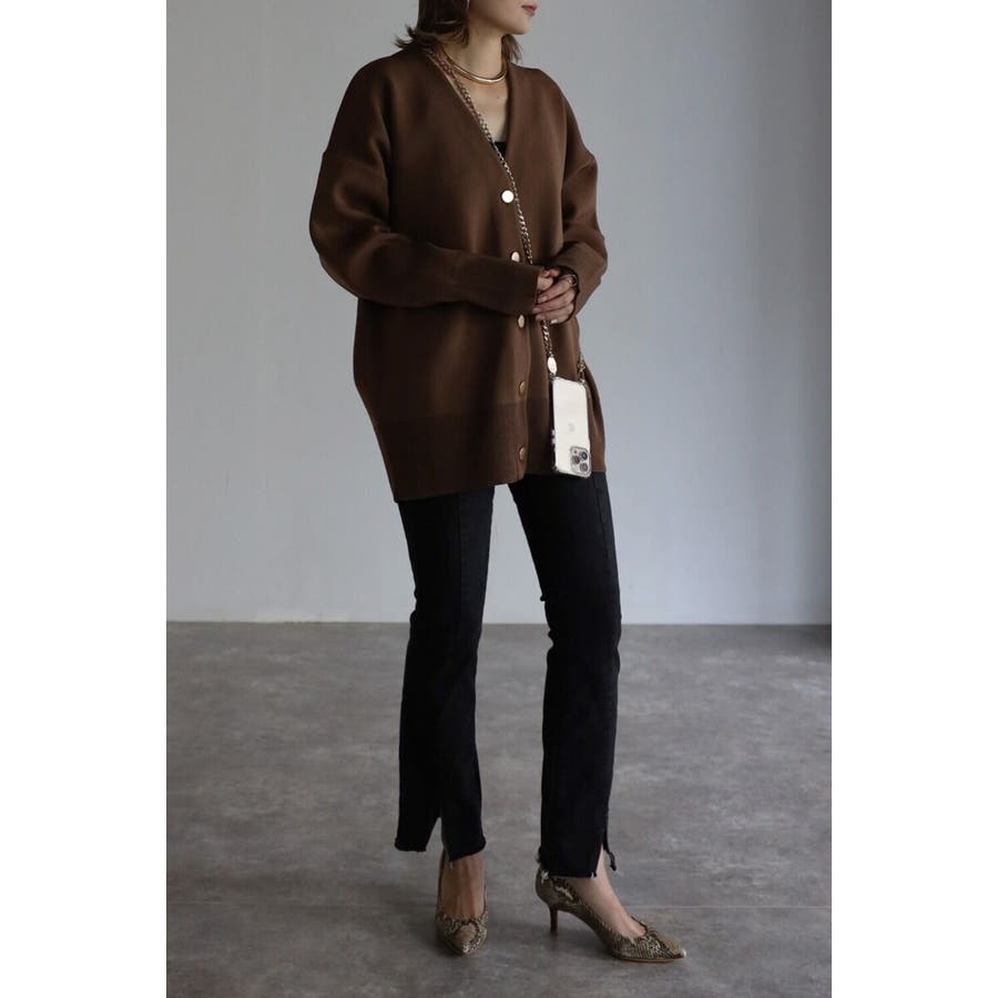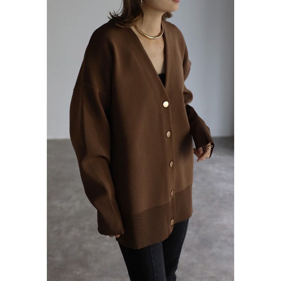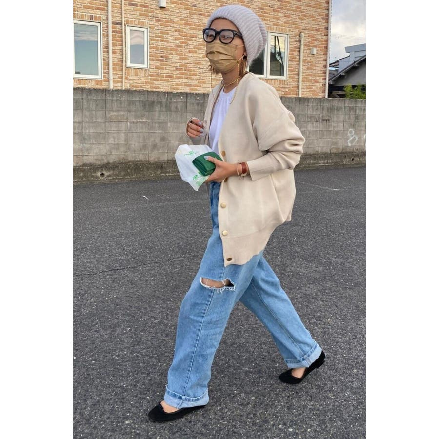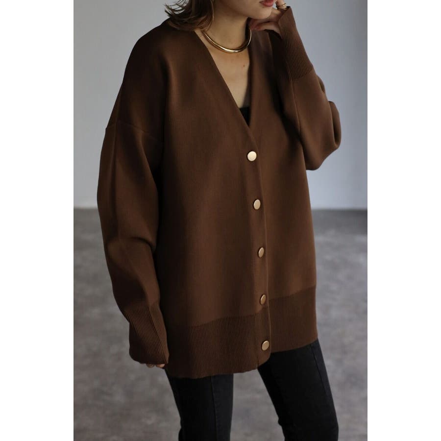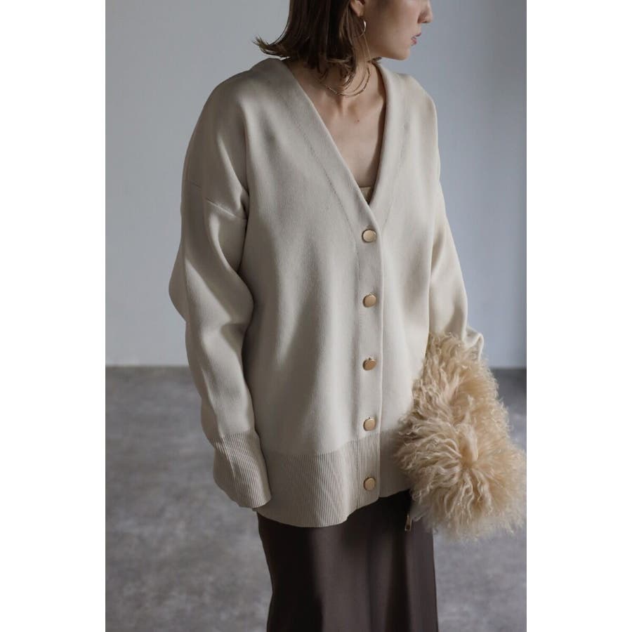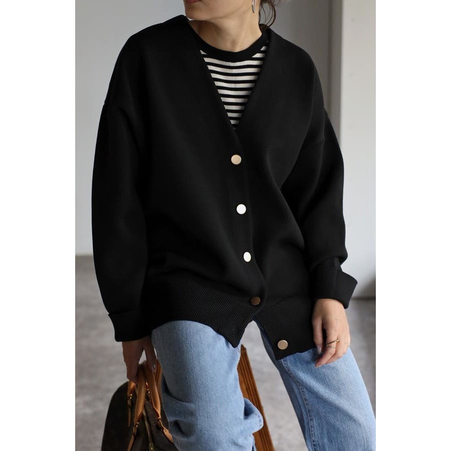 マットな金ボタンがきれいめにしてくれて、かわいいカーディガンです。
