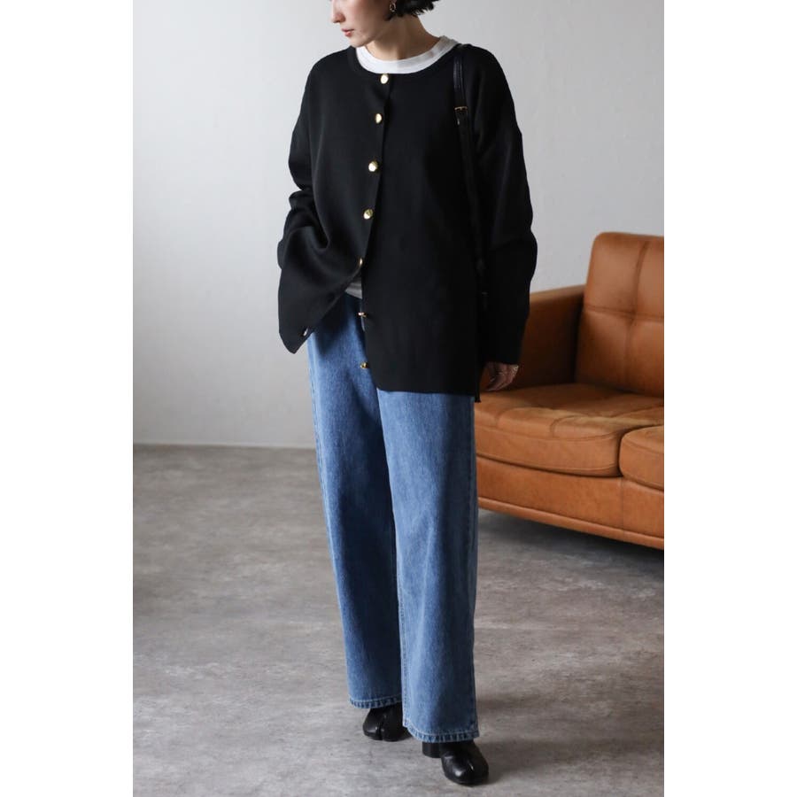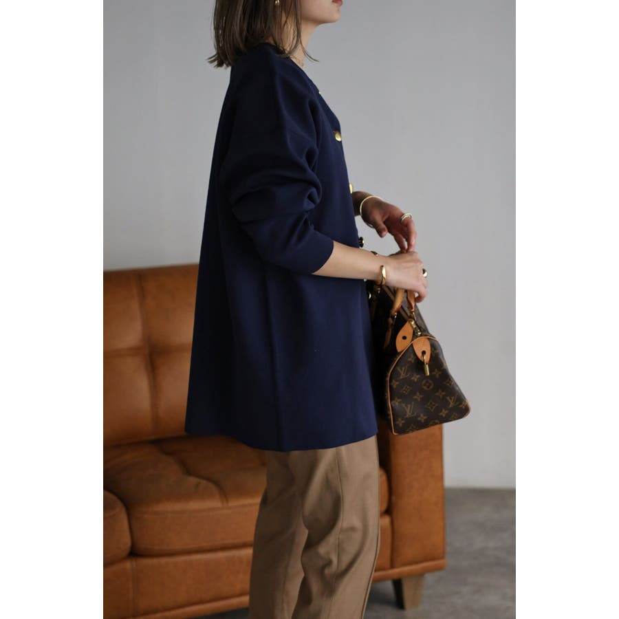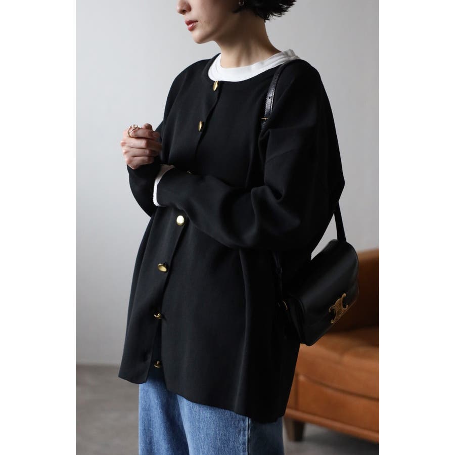 大人気のダイバーニット生地を使用した金釦カーディガン《スタイリング》