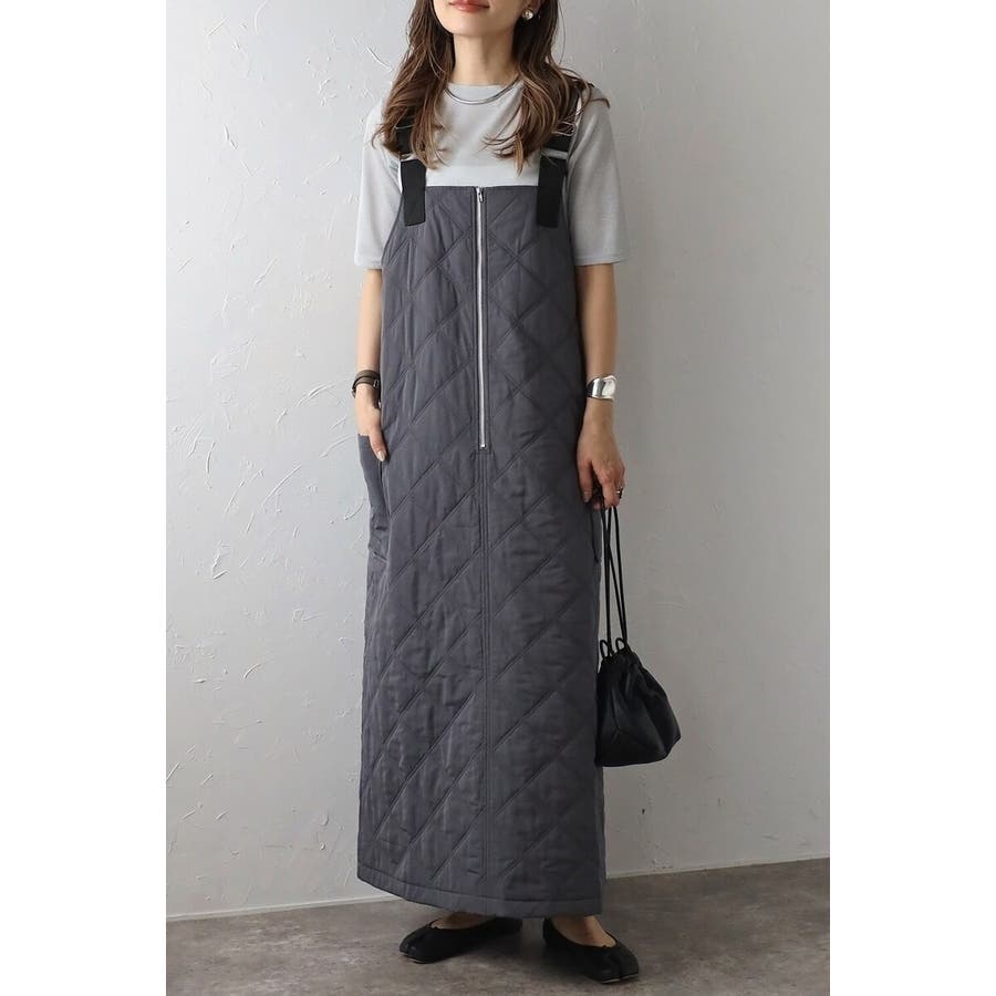 トレンド感のあるキルティング生地を使用したジャンスカワンピース。