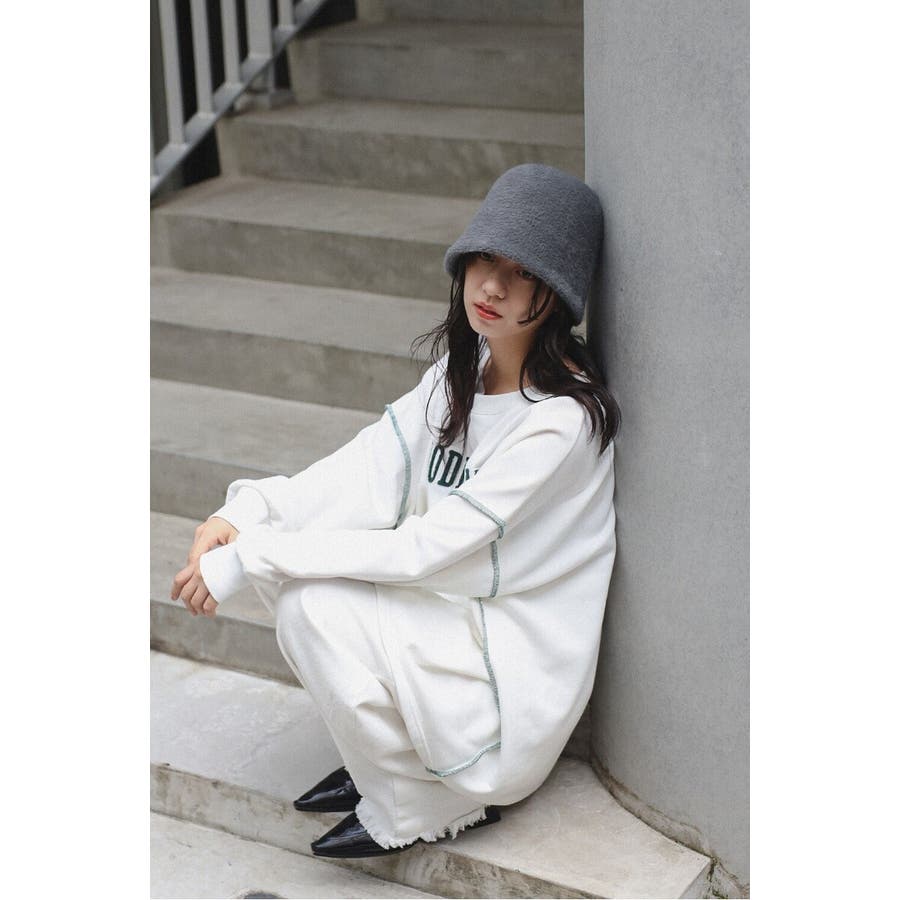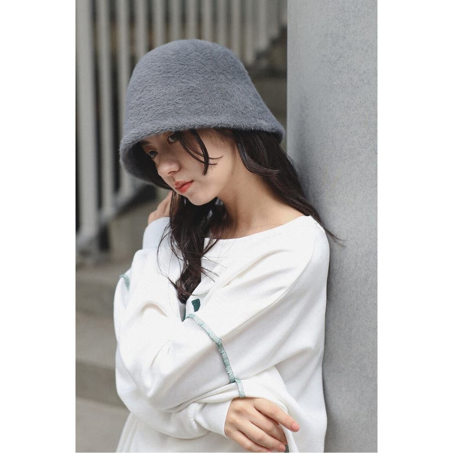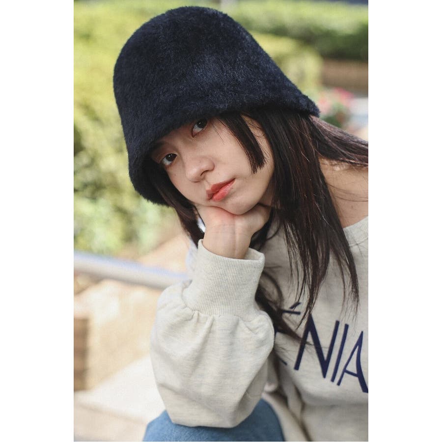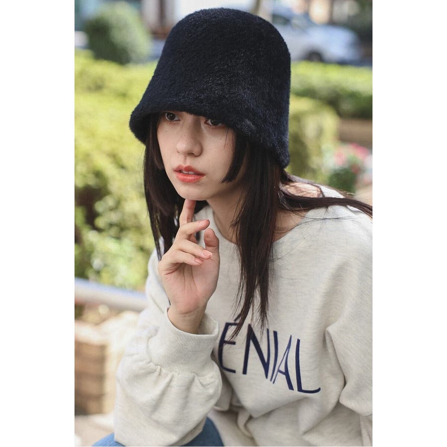 柔らかシャギー素材で仕立てたあったかベルハットシャギー素材がシーズンムードを演出し、暖かみのあるベルハット。
