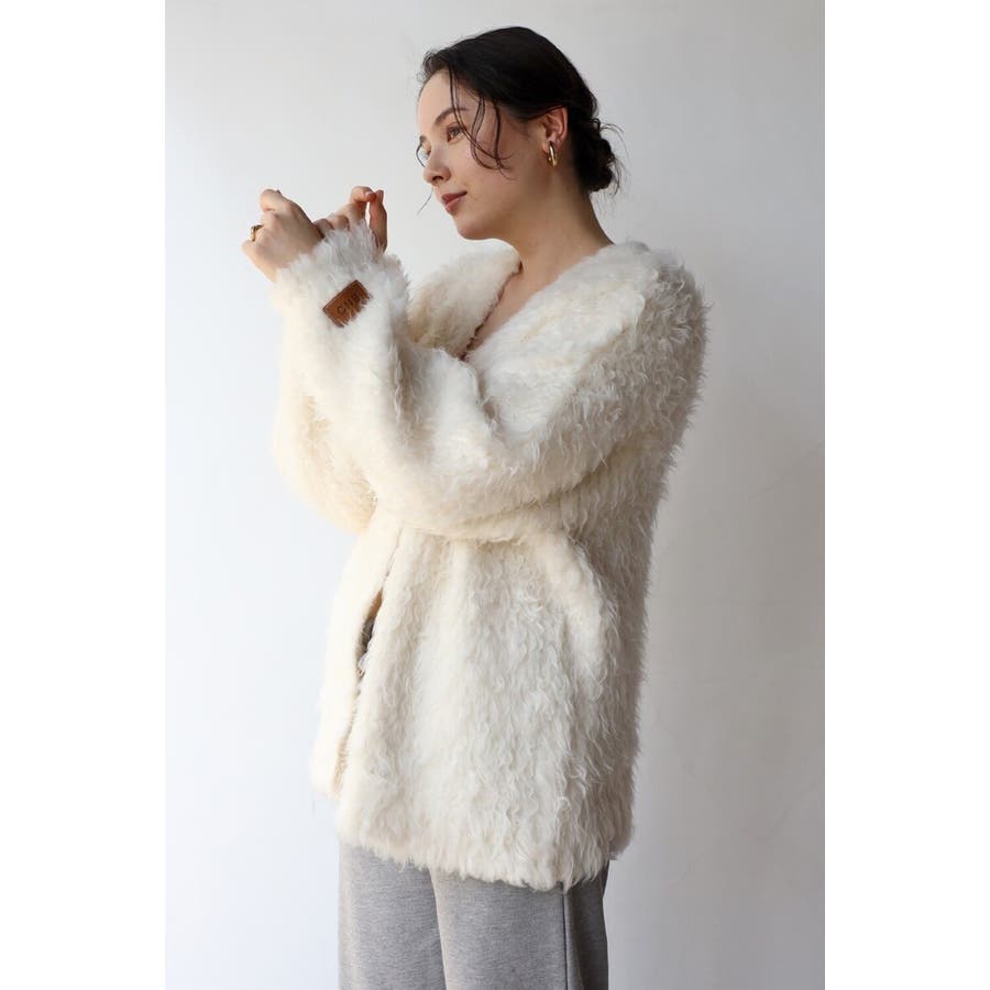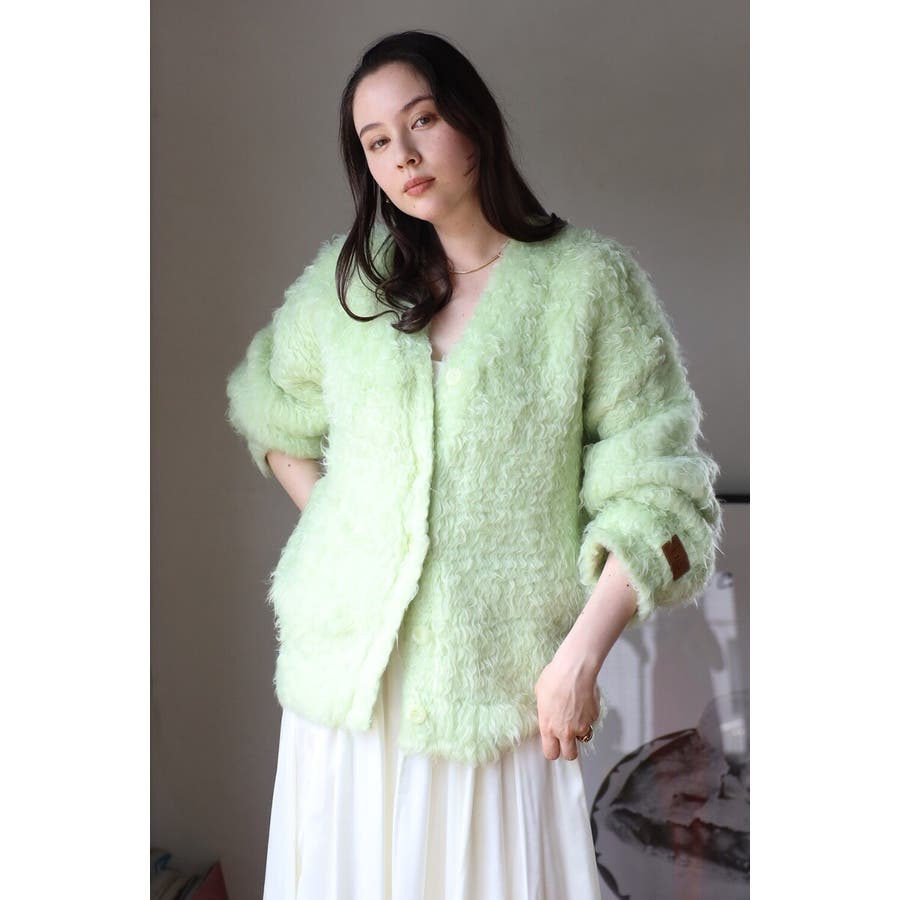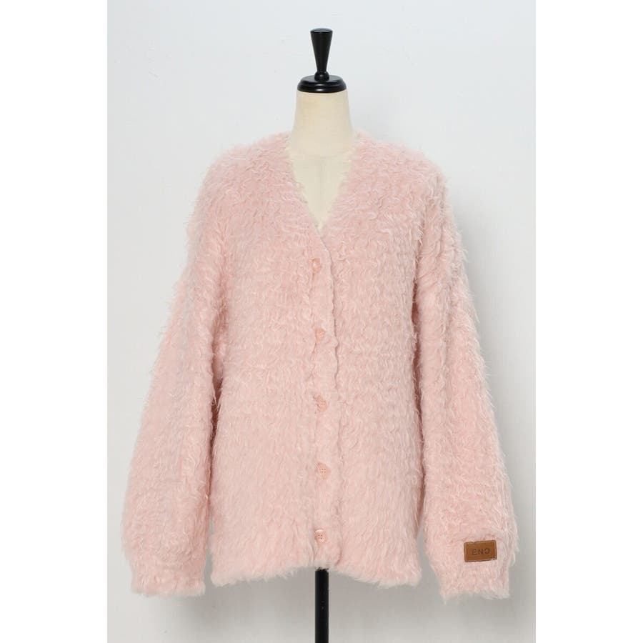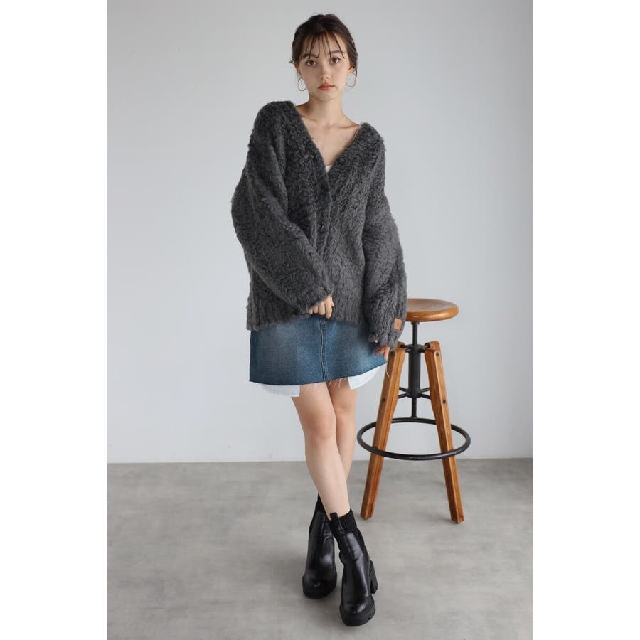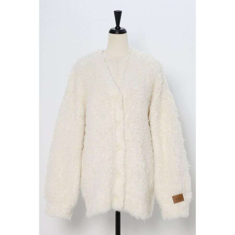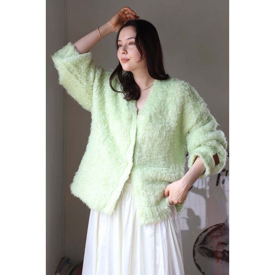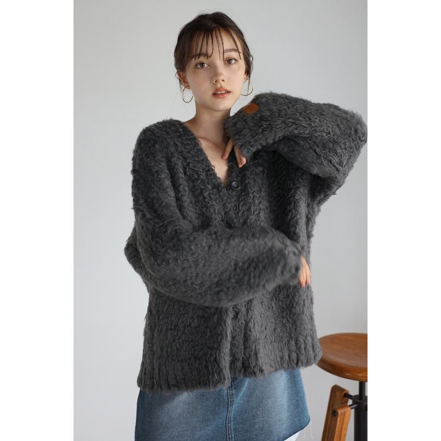 ふわふわのテディベアシャギーニットのVネックカーディガン。