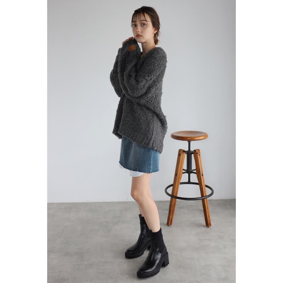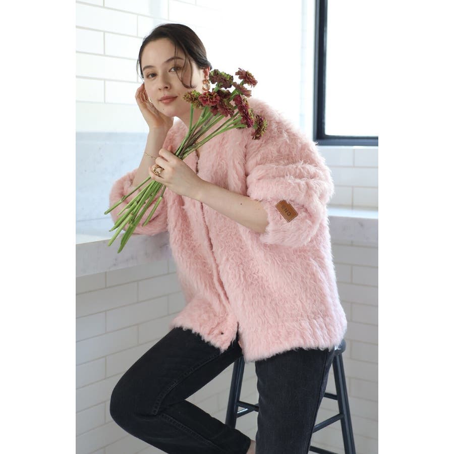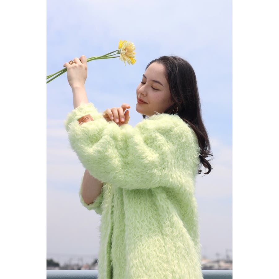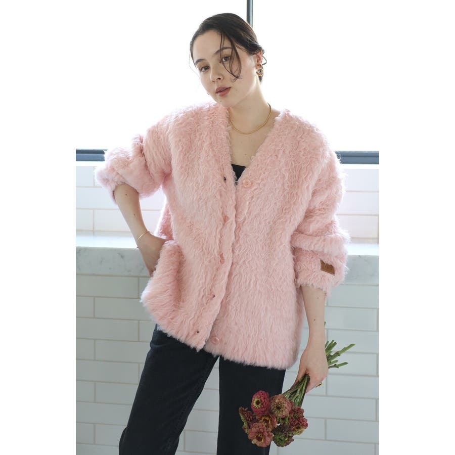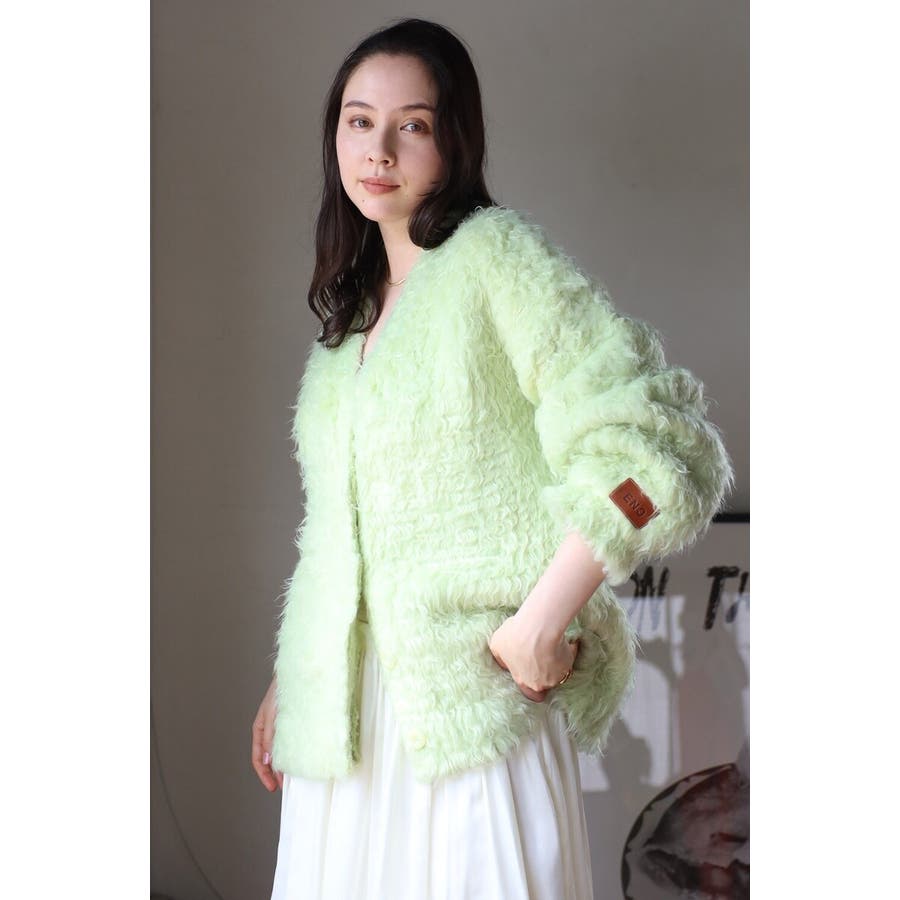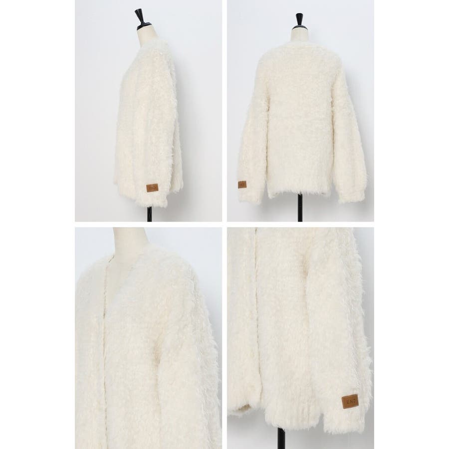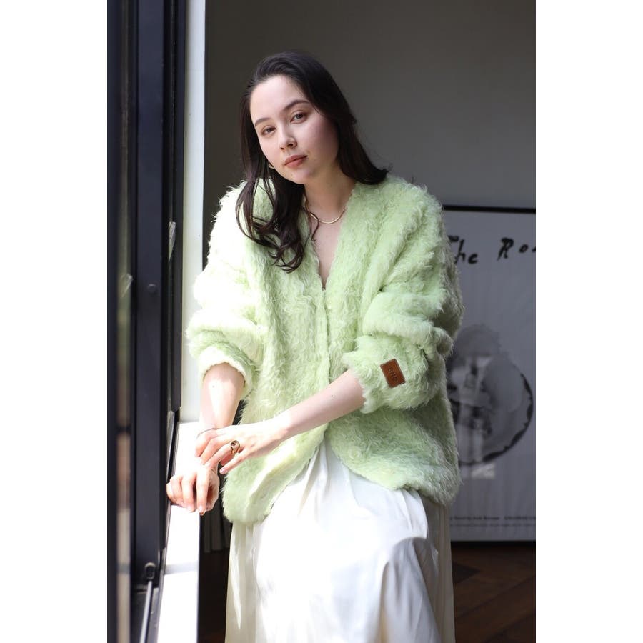 ふわふわのテディベアシャギーニットのVネックカーディガン。