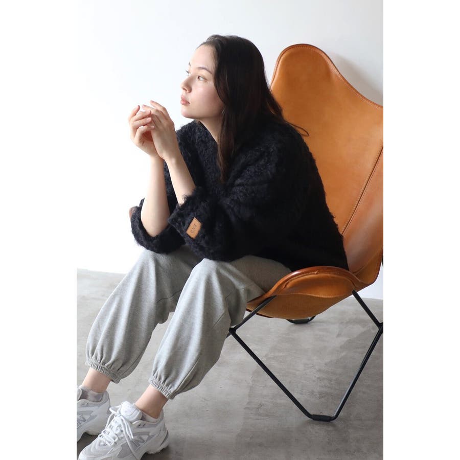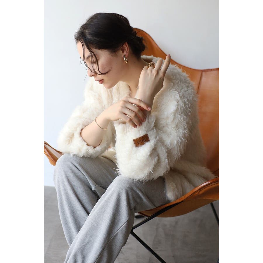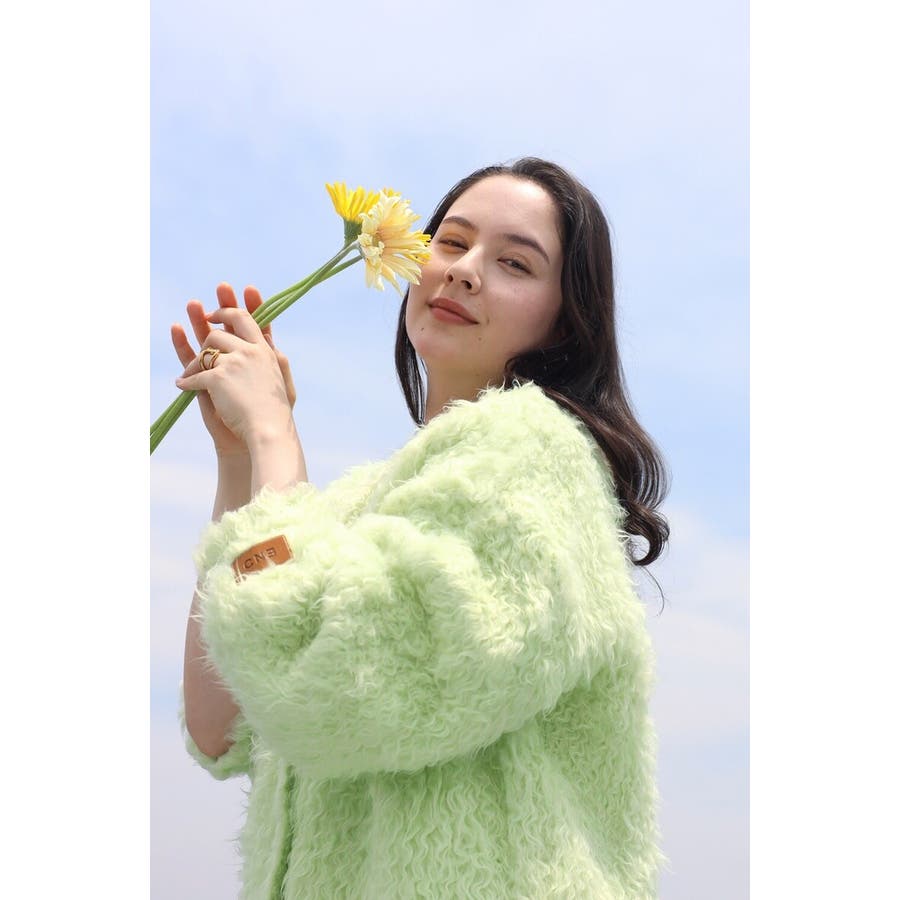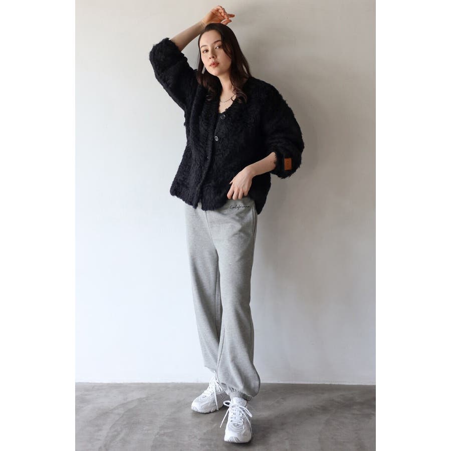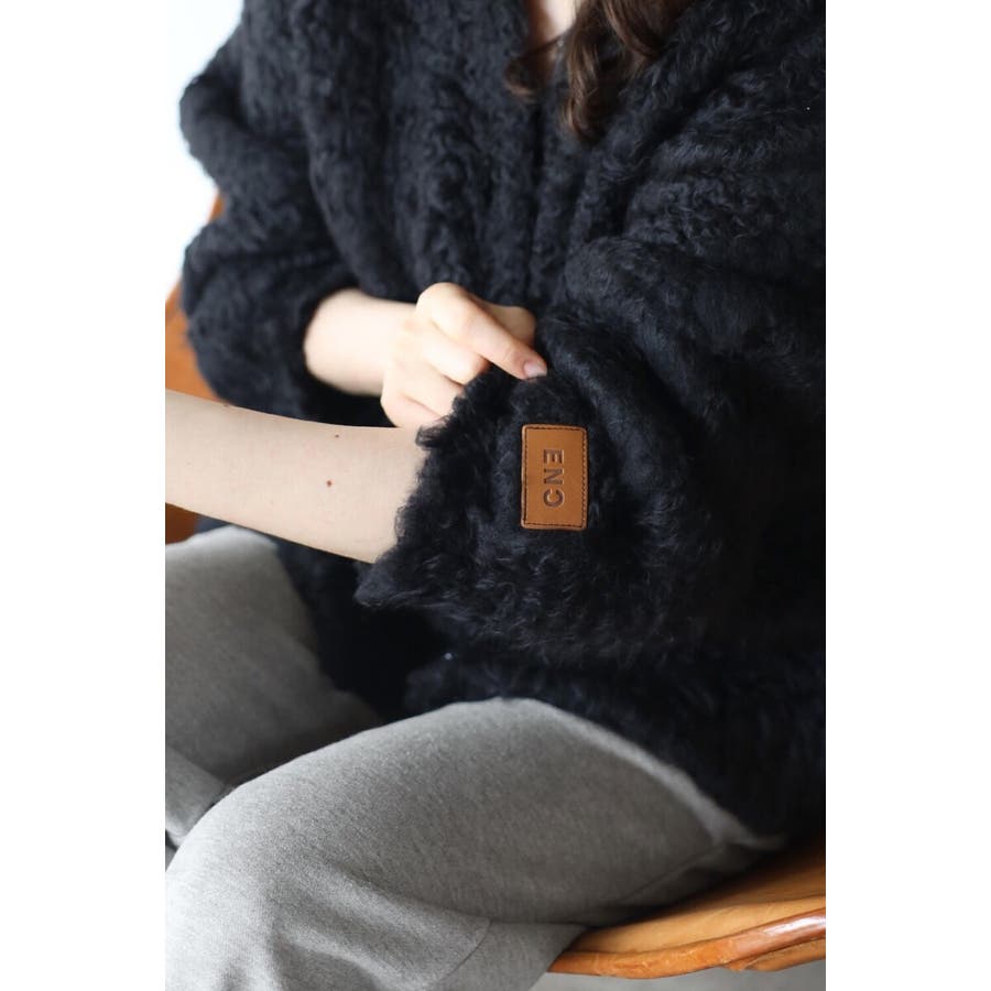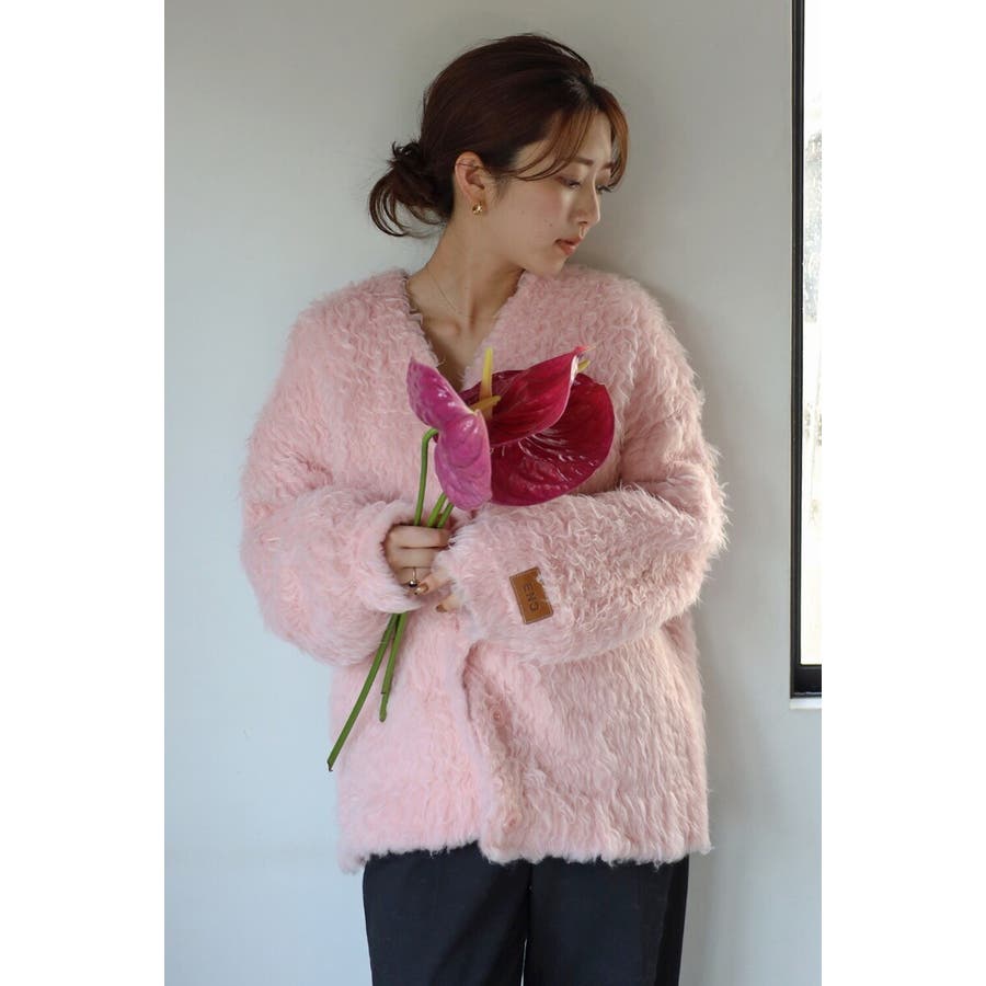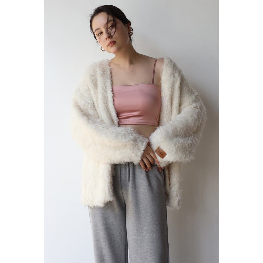 ふわふわのテディベアシャギーニットのVネックカーディガン。