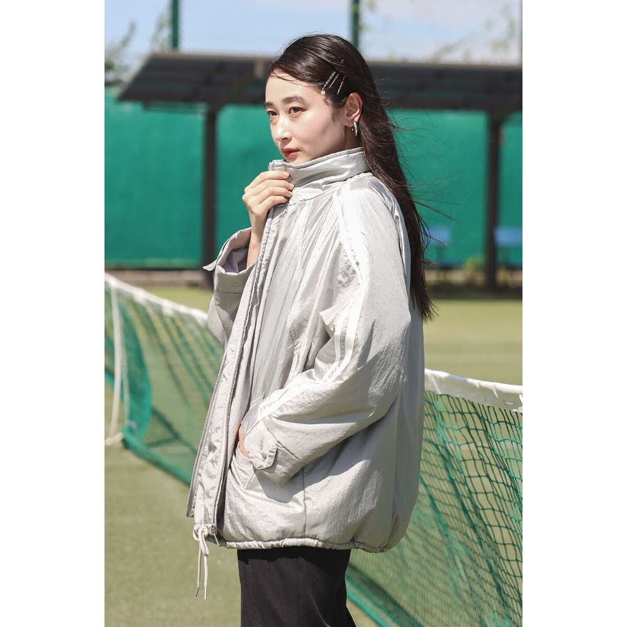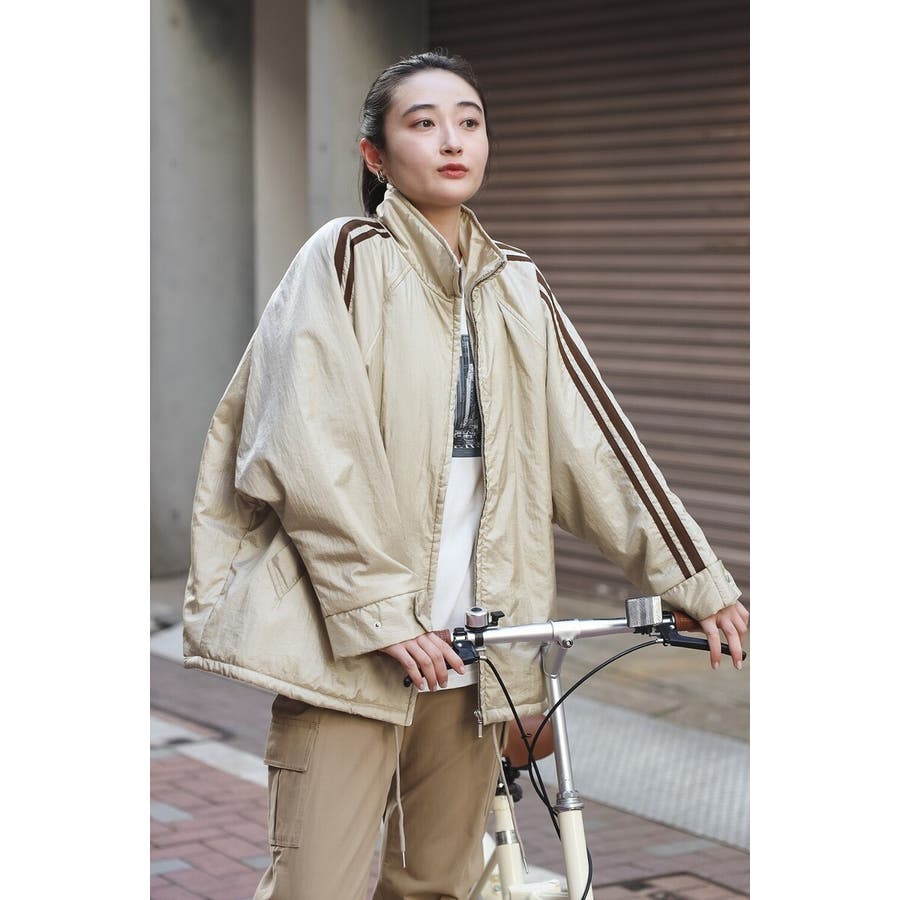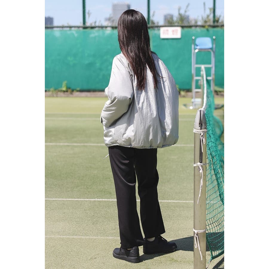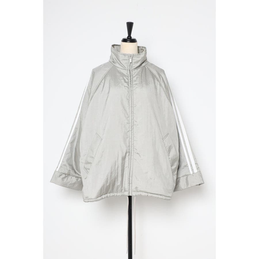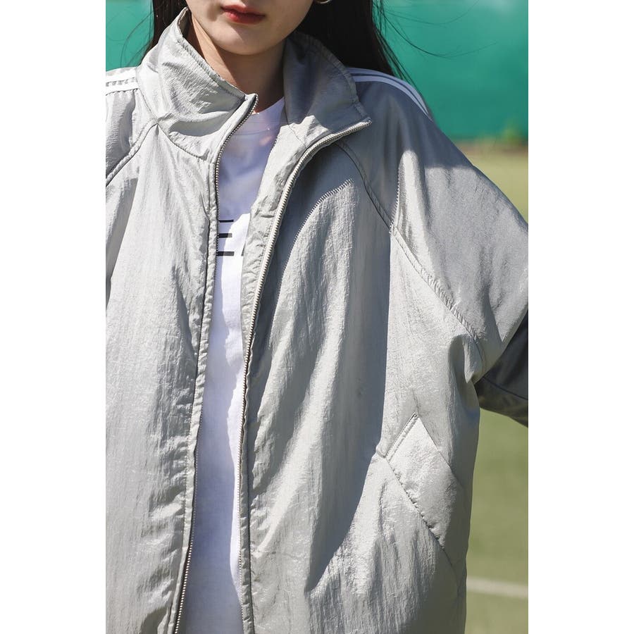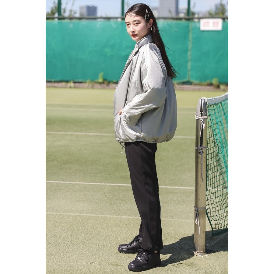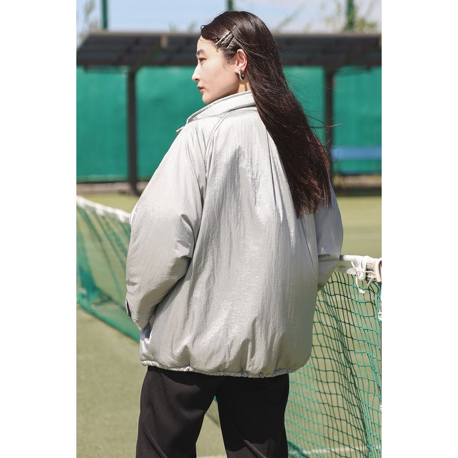 軽やかなグロッシーナイロンタフタ素材を使用した中わた入りブルゾン。