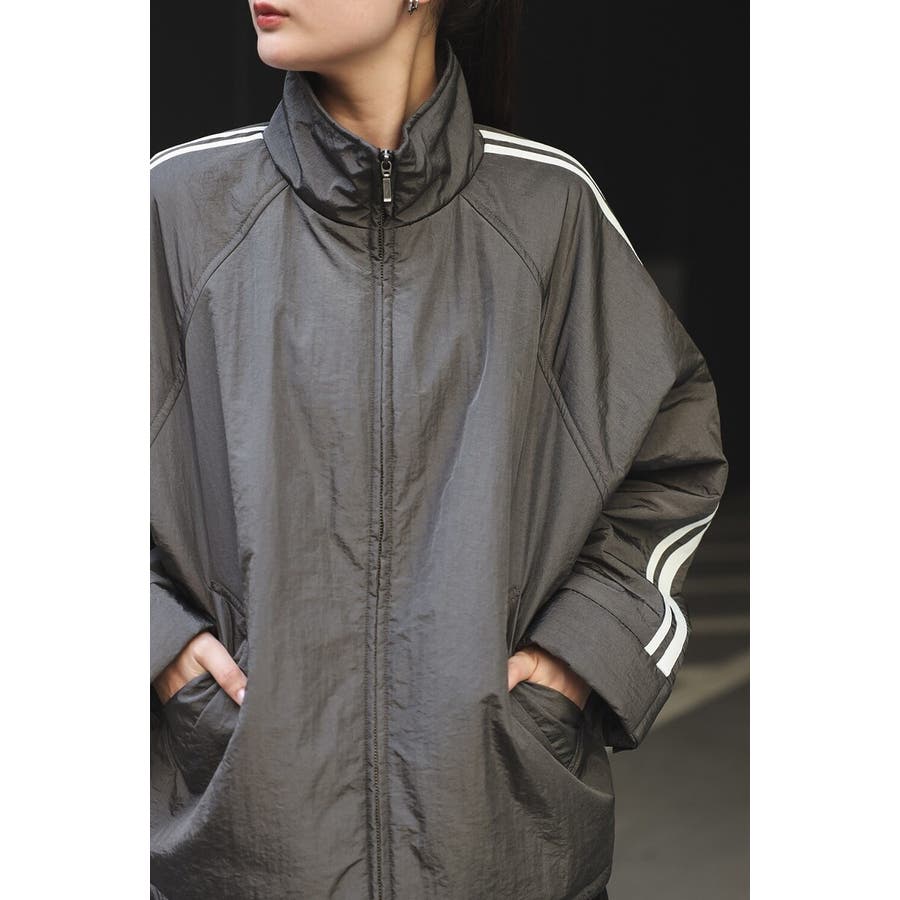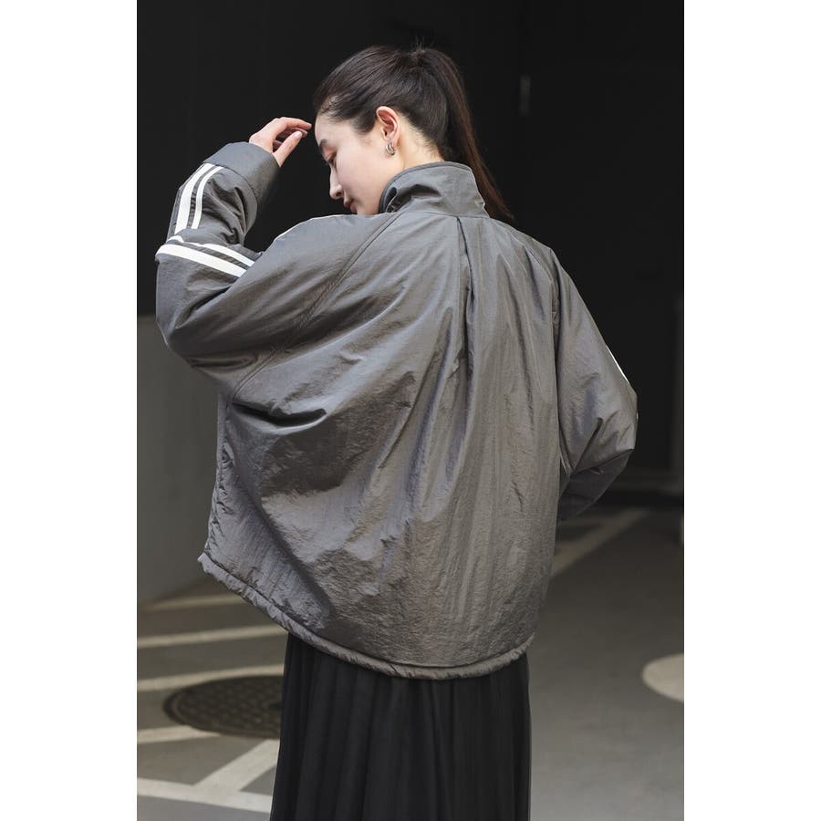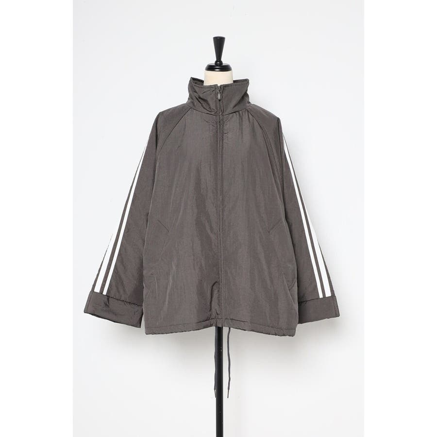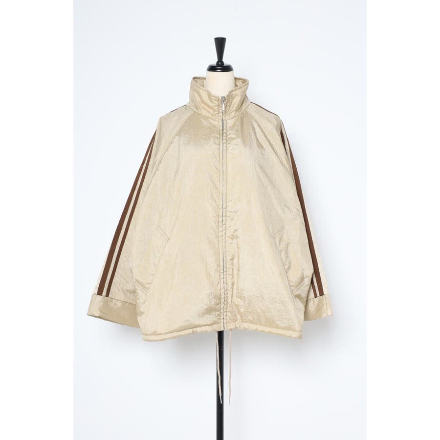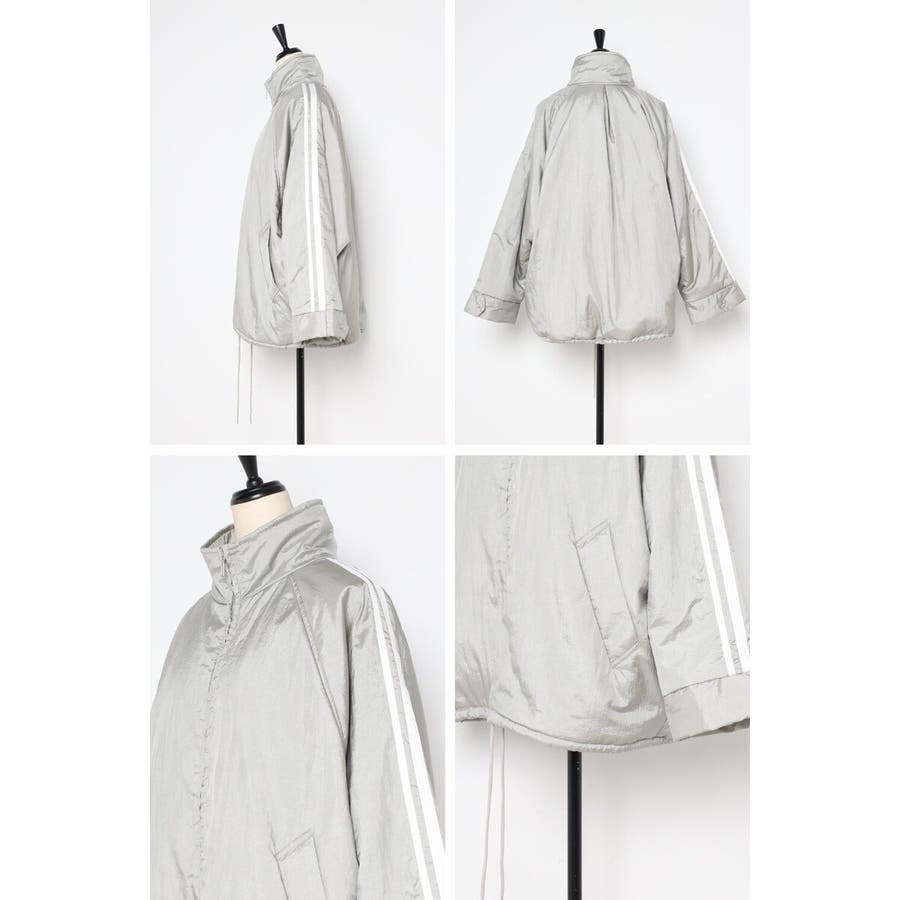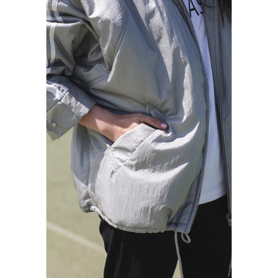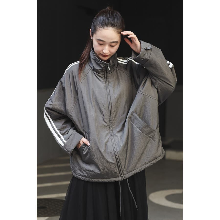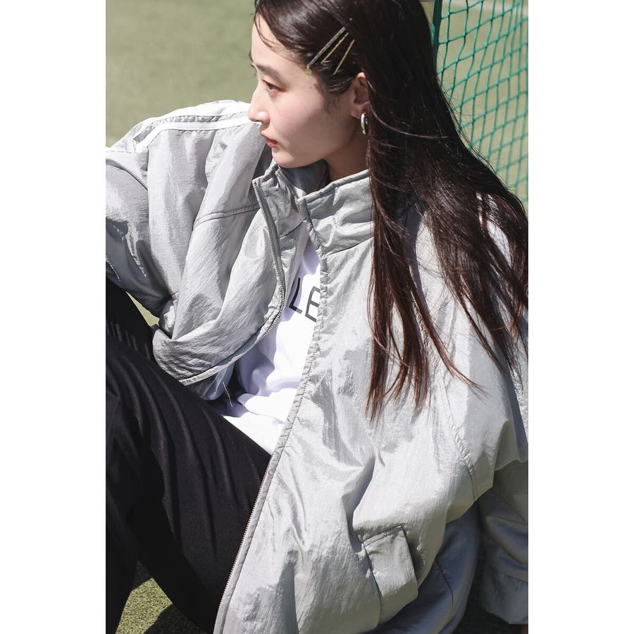 軽やかなグロッシーナイロンタフタ素材を使用した中わた入りブルゾン。