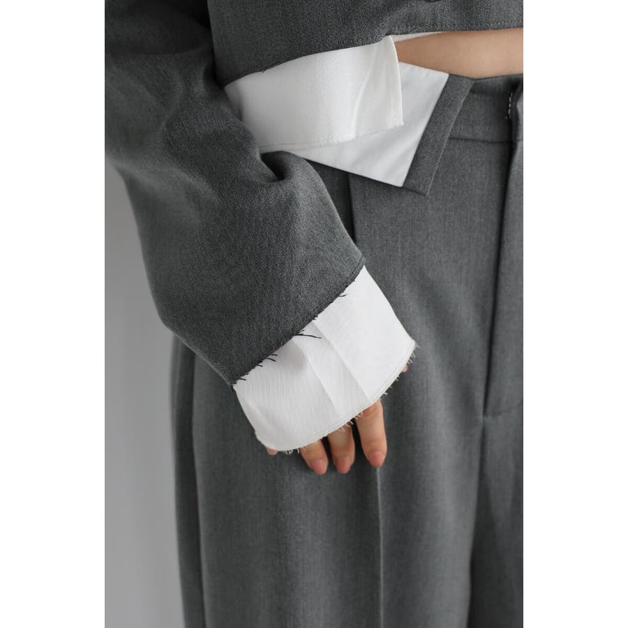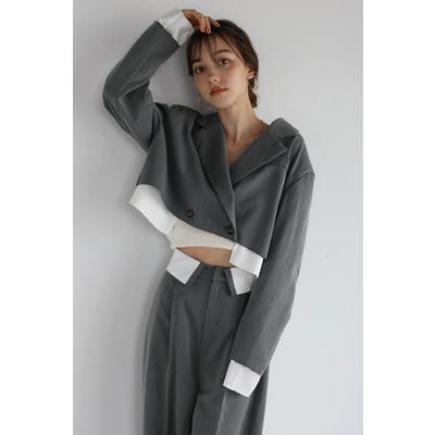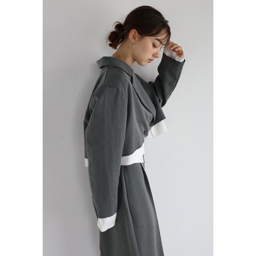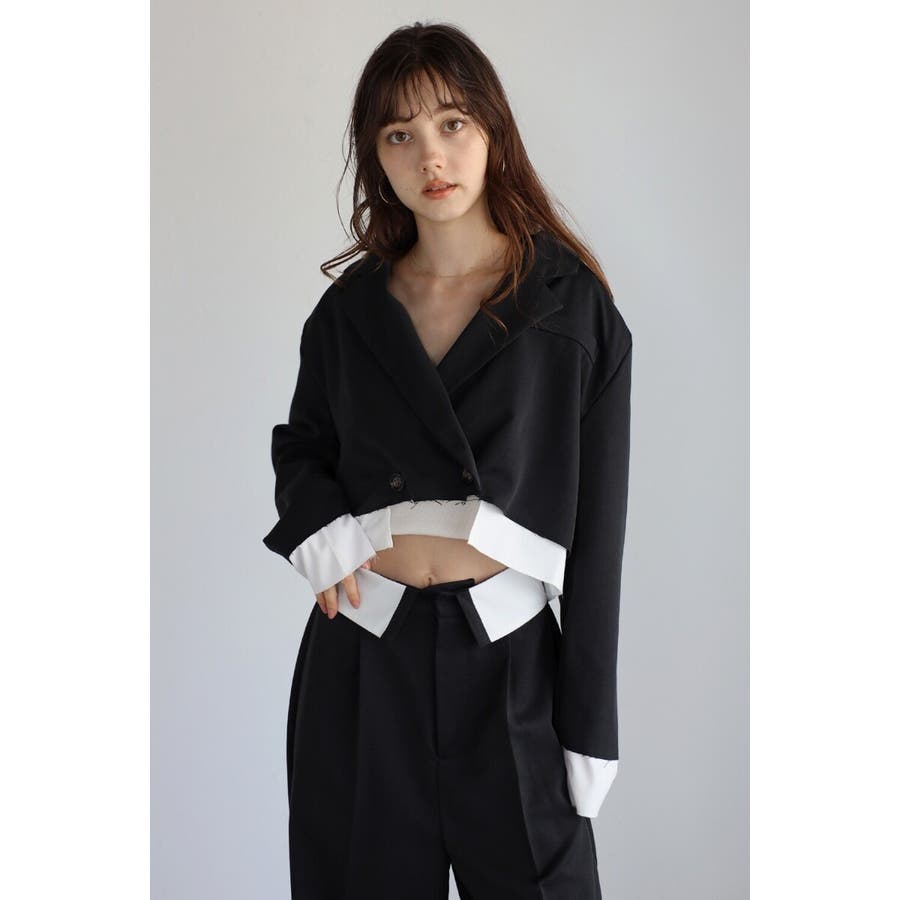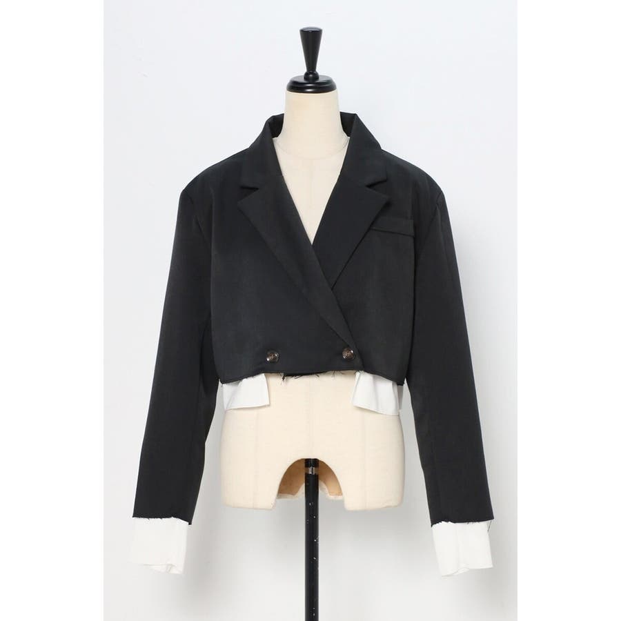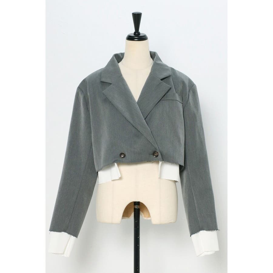 コンパクトなショート丈にレイヤードデザインが映える個性的なジャケット。