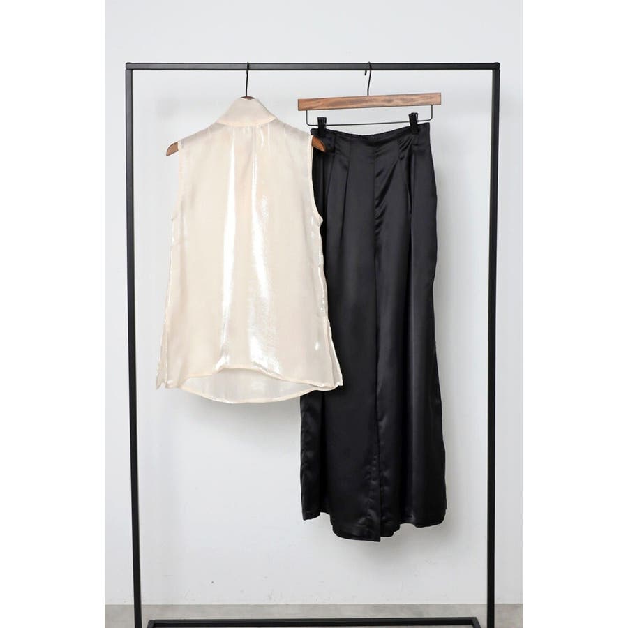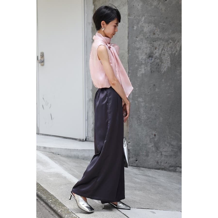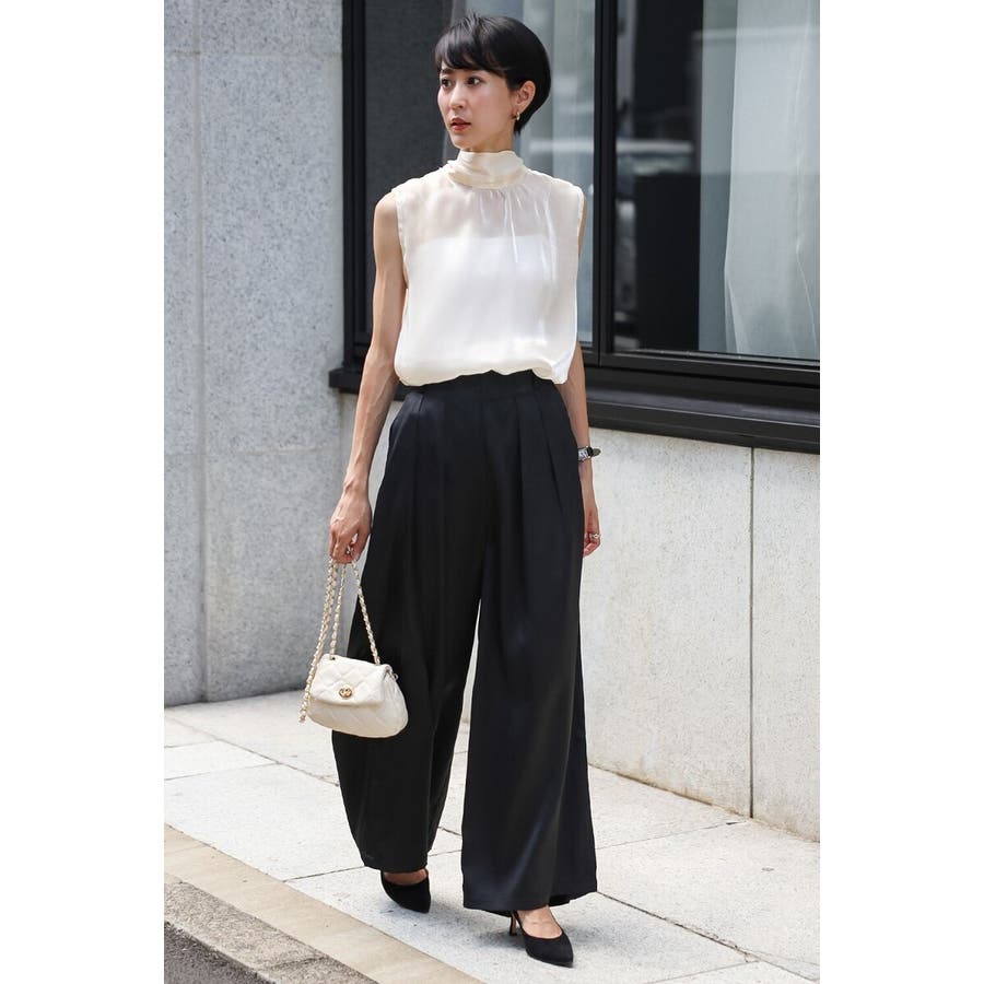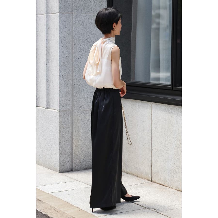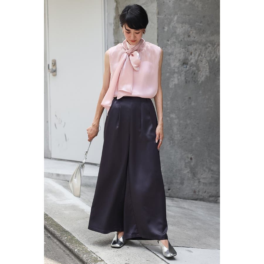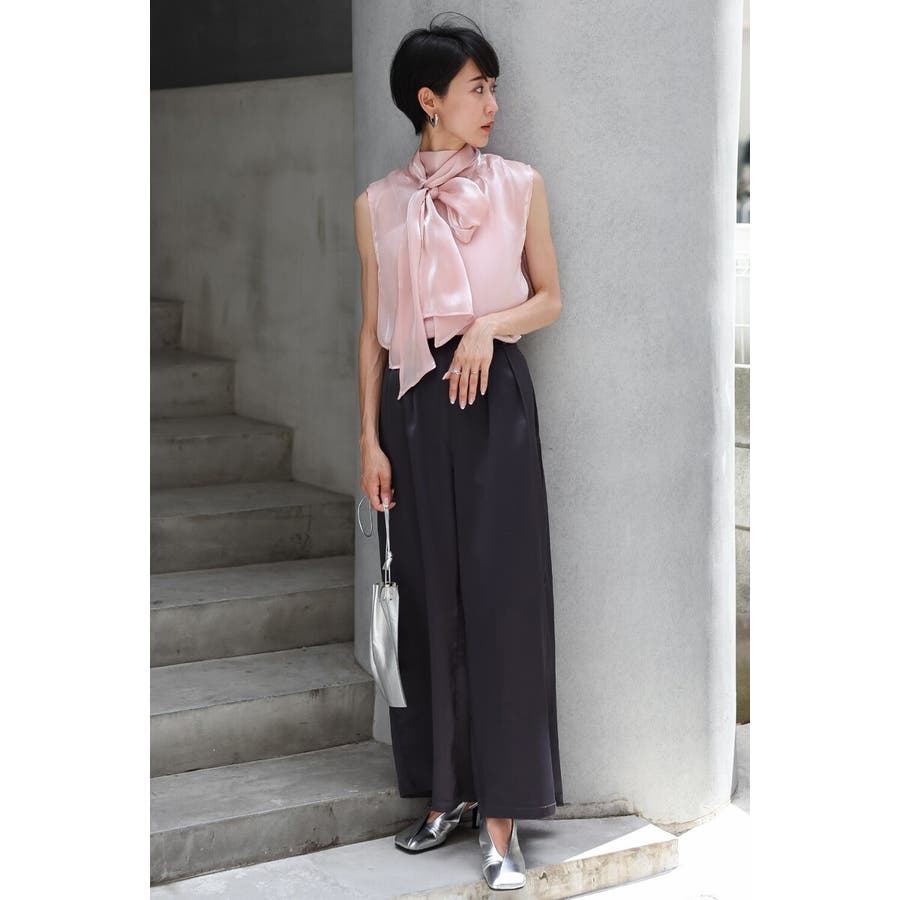2WAYリボンオーガンジブラウス×サテンタックワイドパンツセットアップ 88 0…