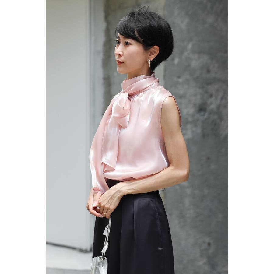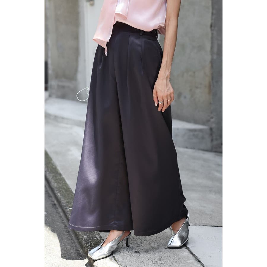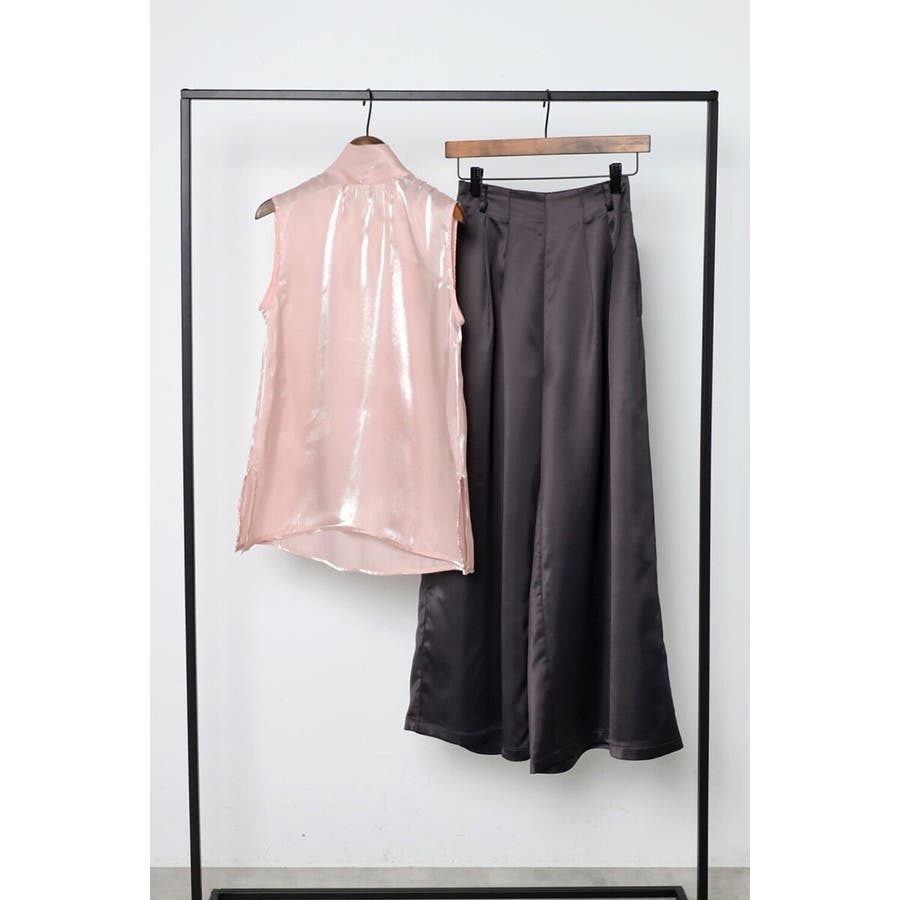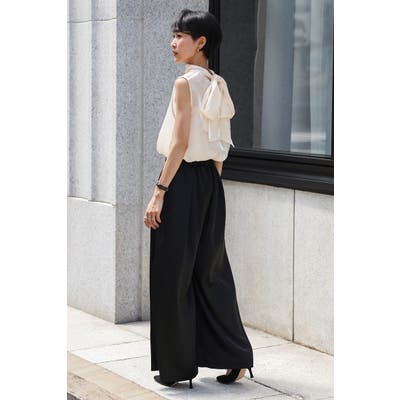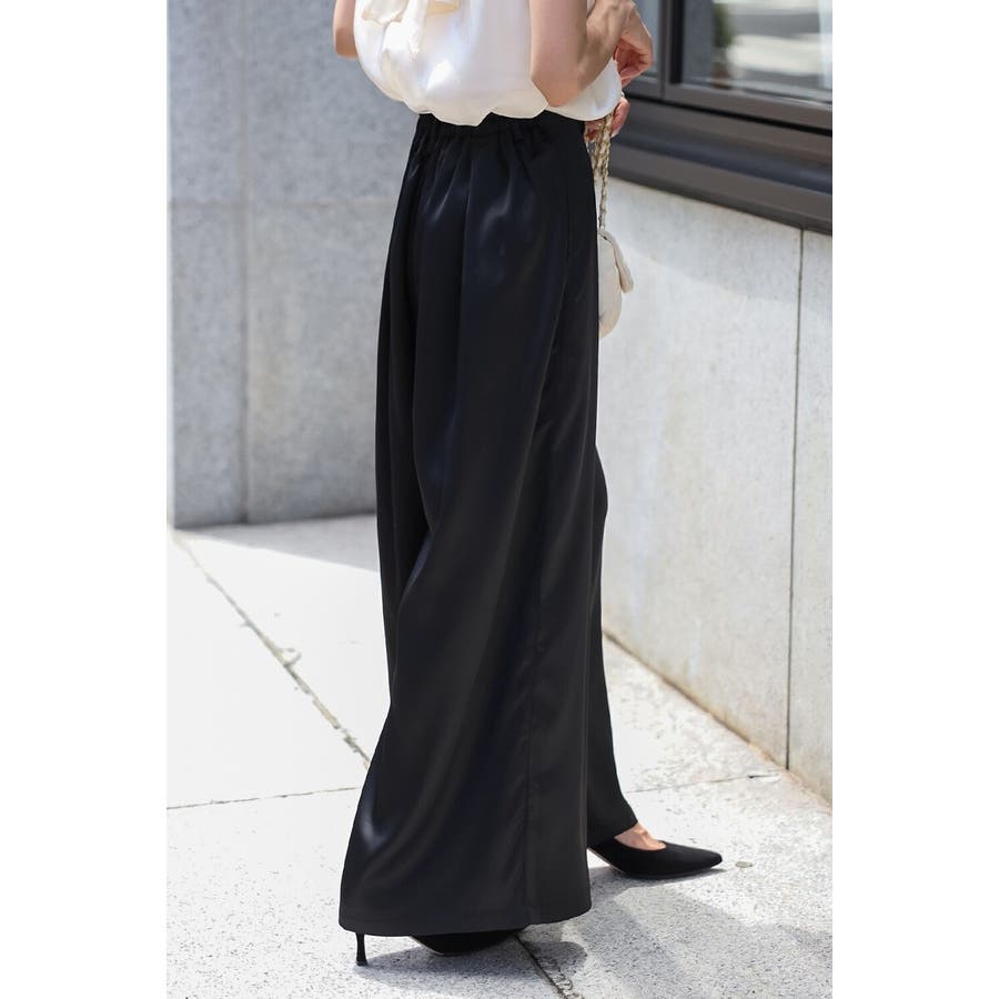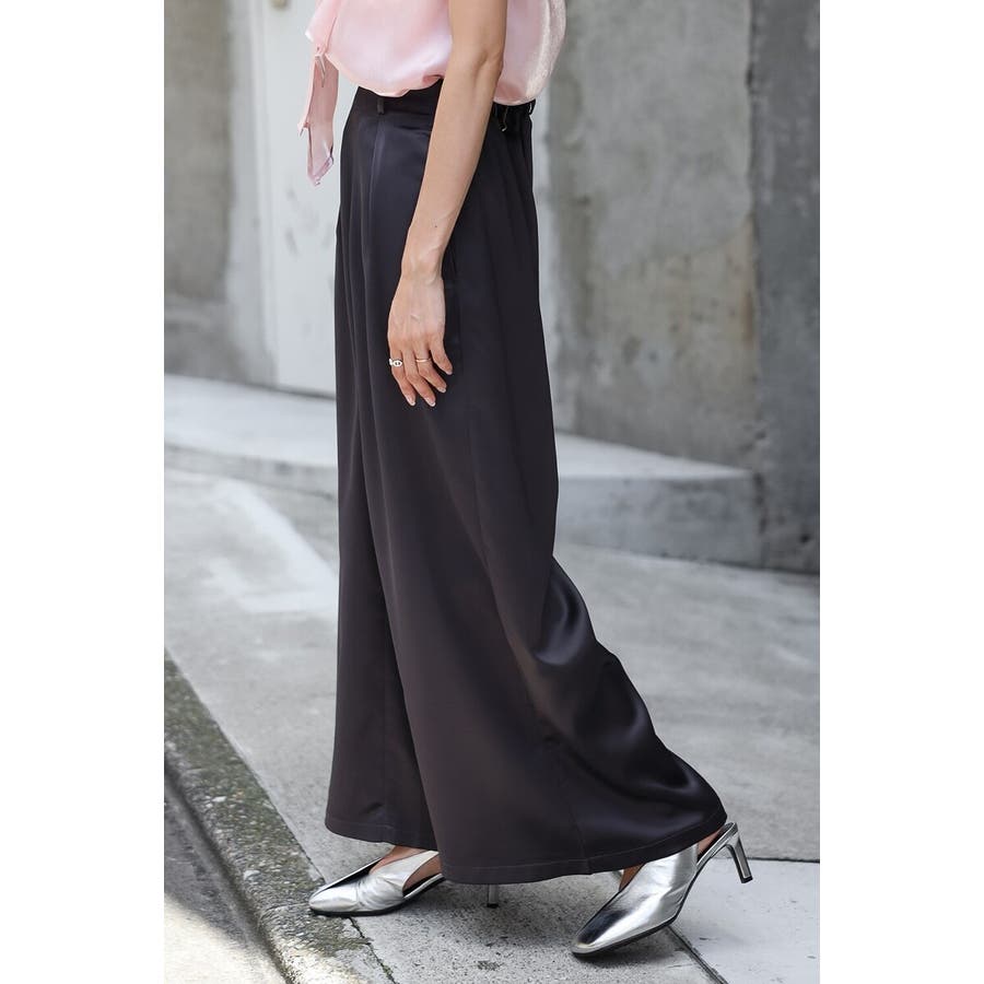 2WAYリボンオーガンジブラウス×サテンタックワイドパンツセットアップ 88 0…