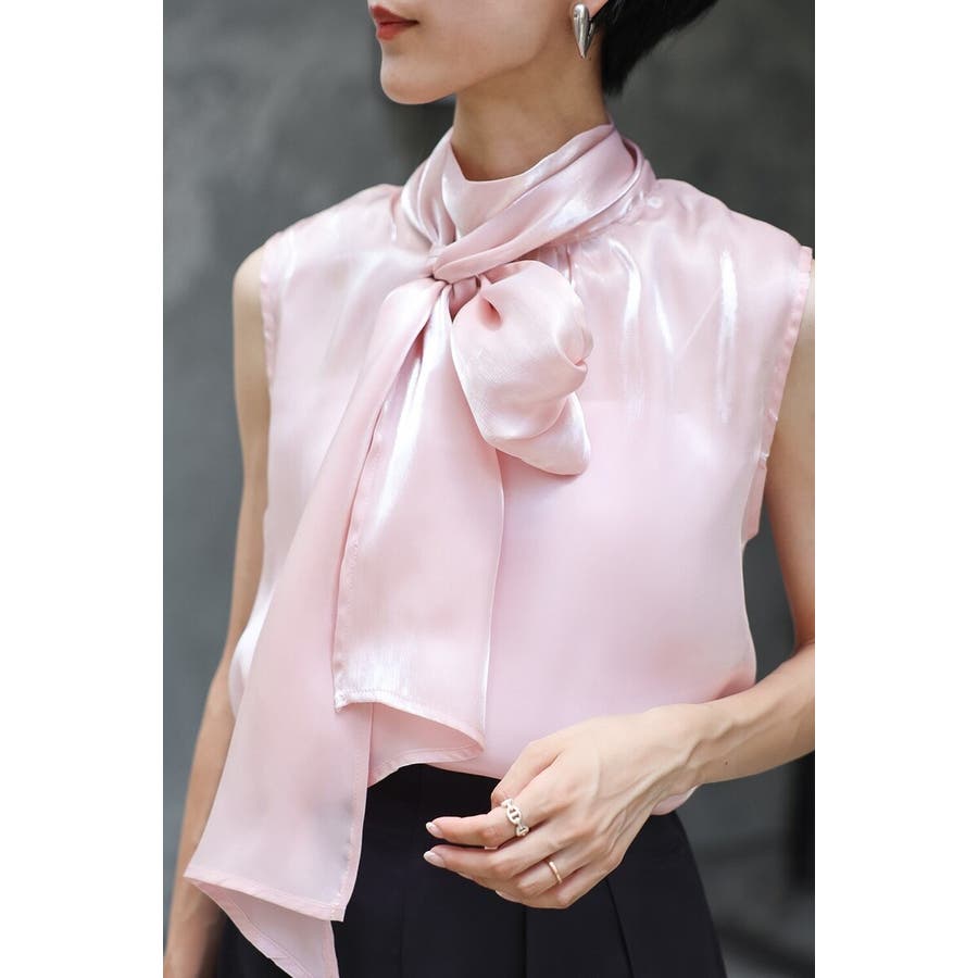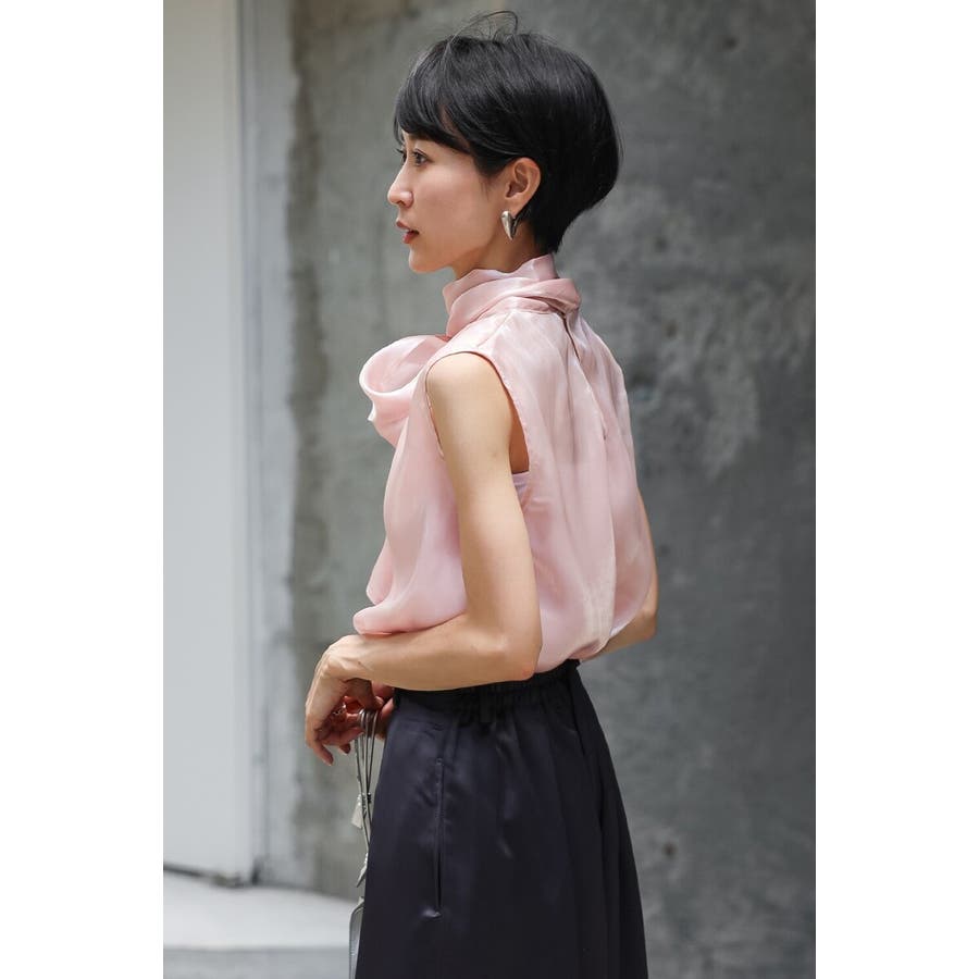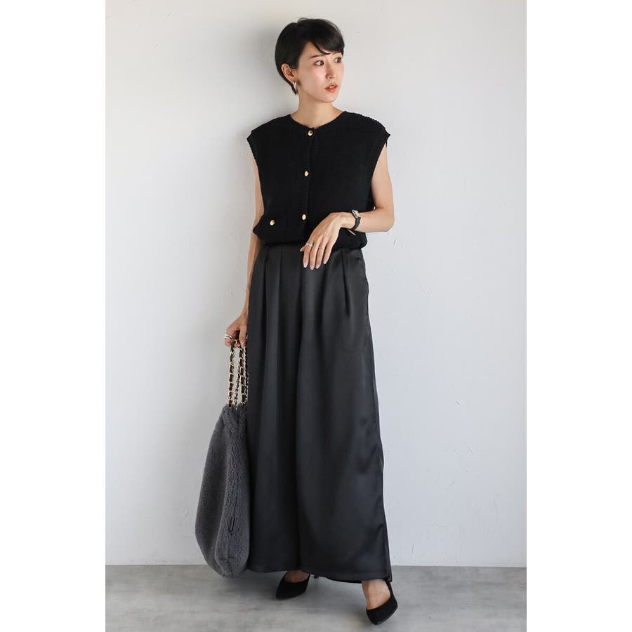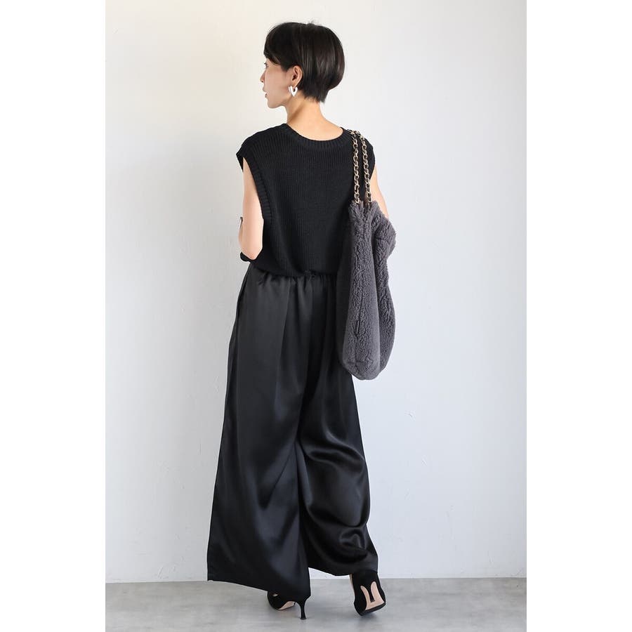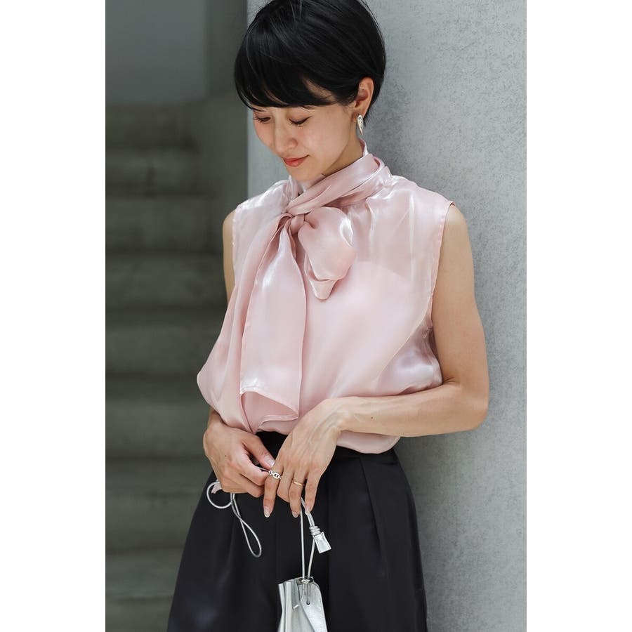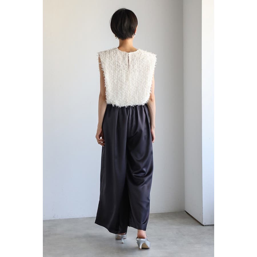 2WAYリボンオーガンジブラウス×サテンタックワイドパンツセットアップ 88 0…