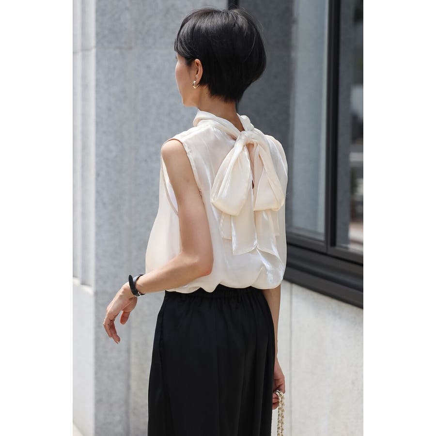 ブラウスは前後2WAYのボウタイデザインで、シーンに合わせたアレンジが楽しめます。