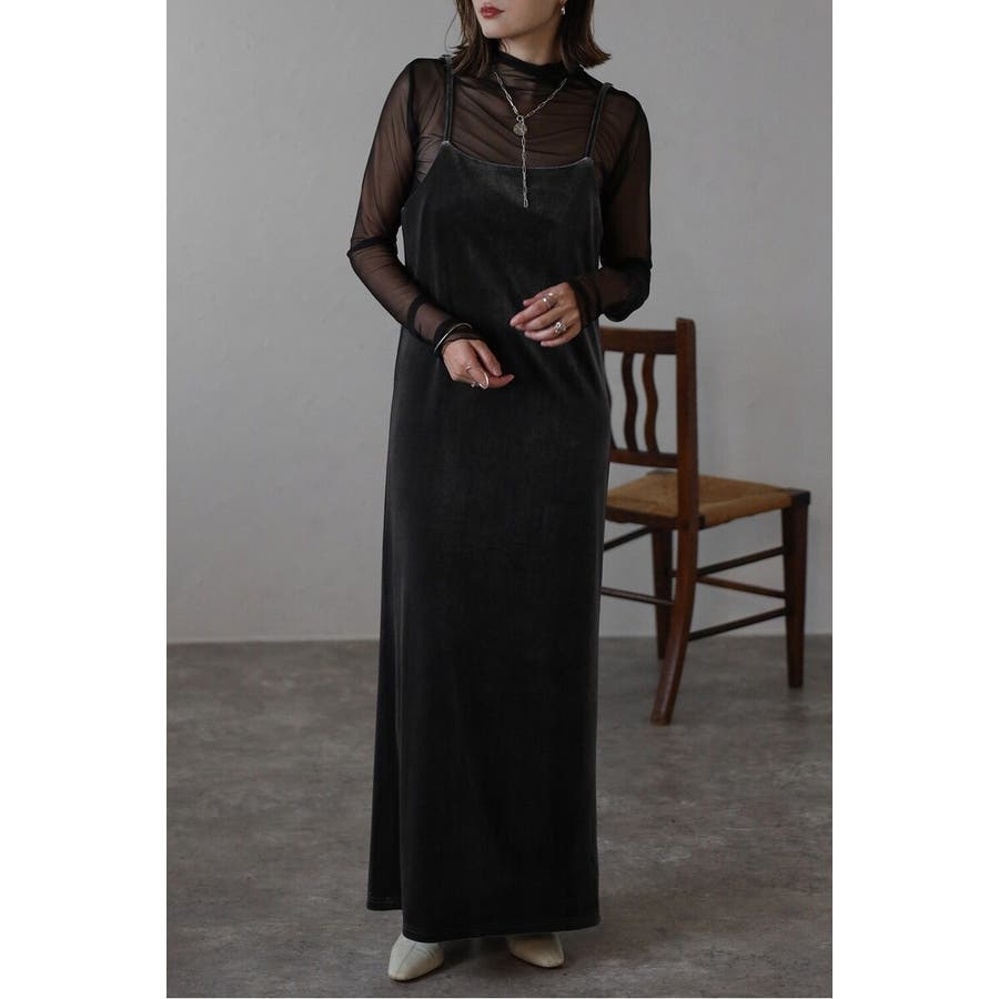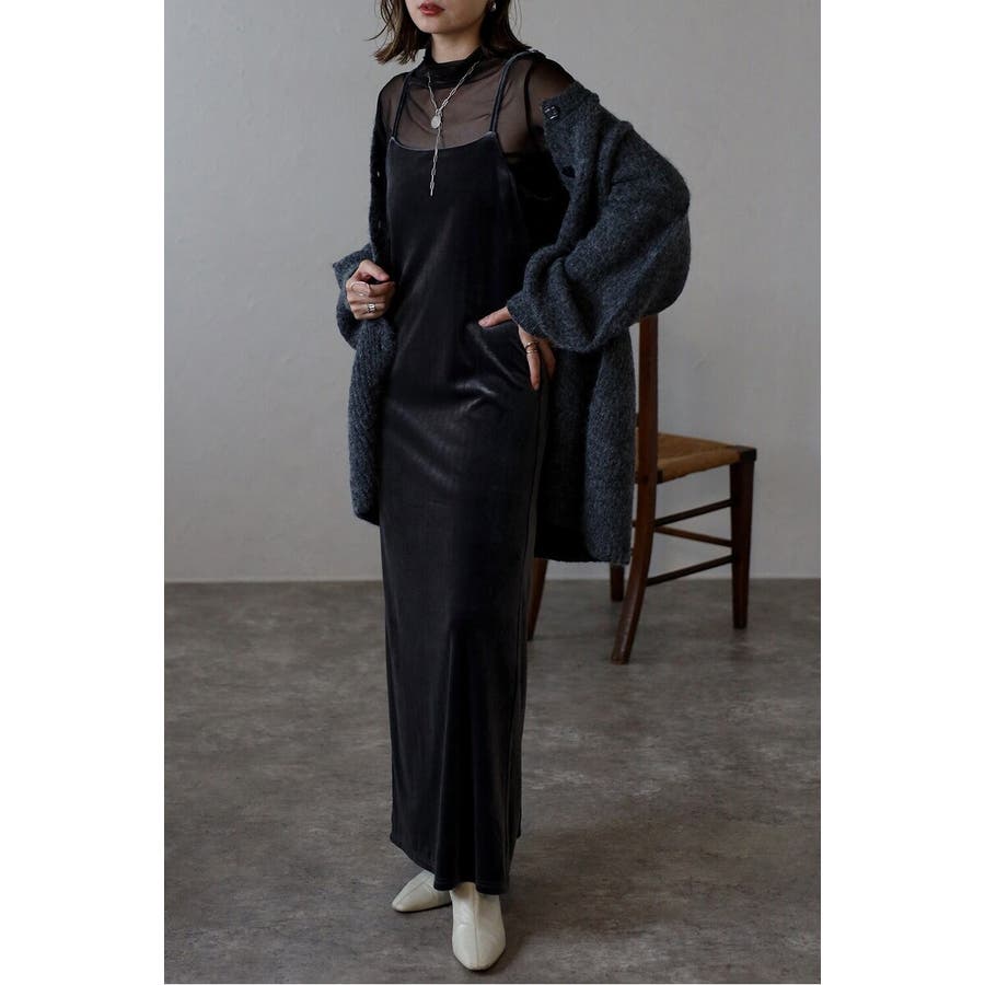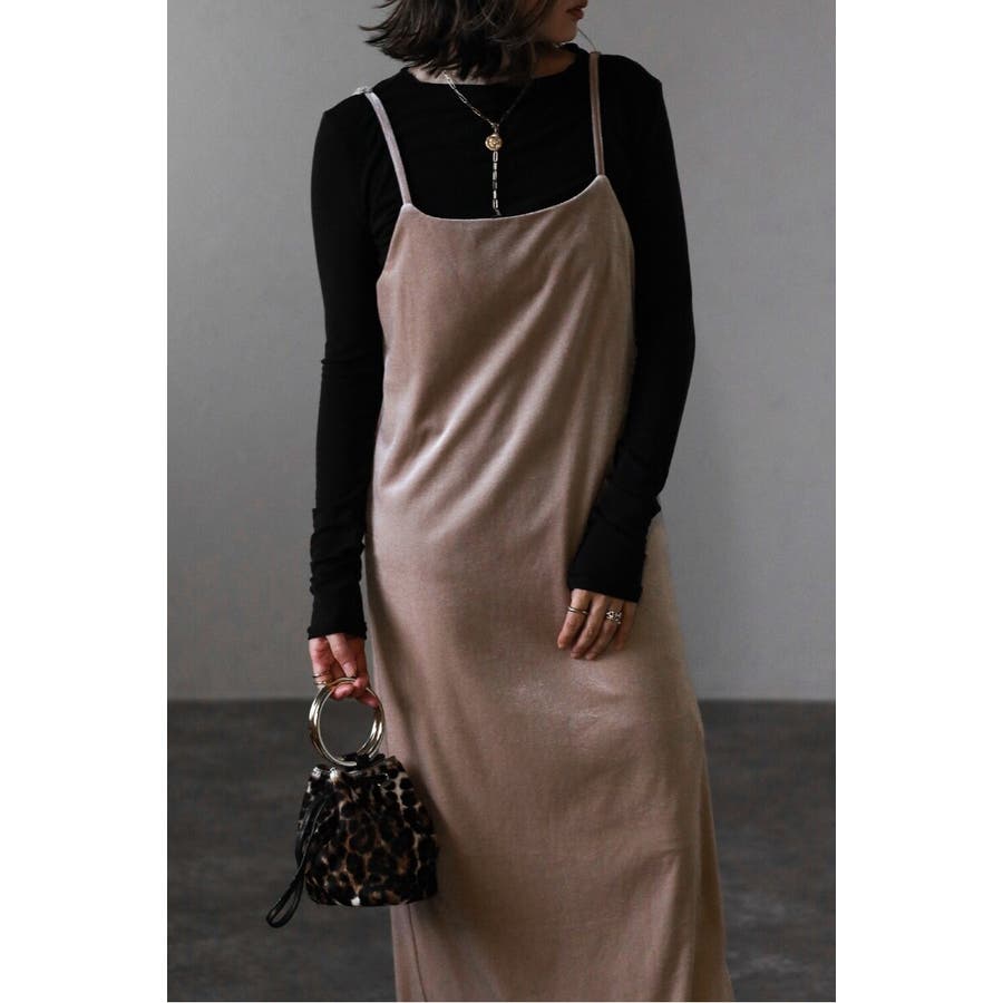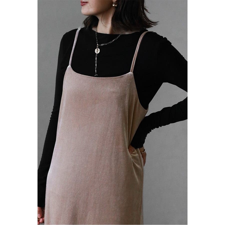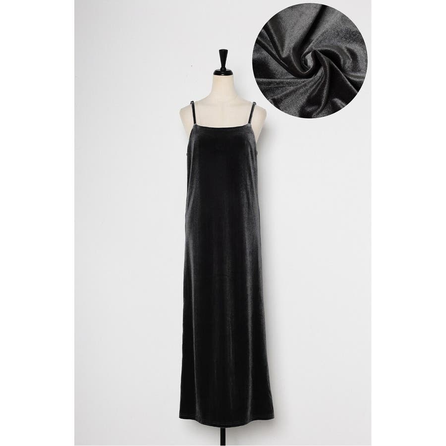 上品な光沢が魅力のベロア素材を使用したキャミワンピース。