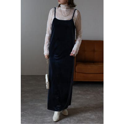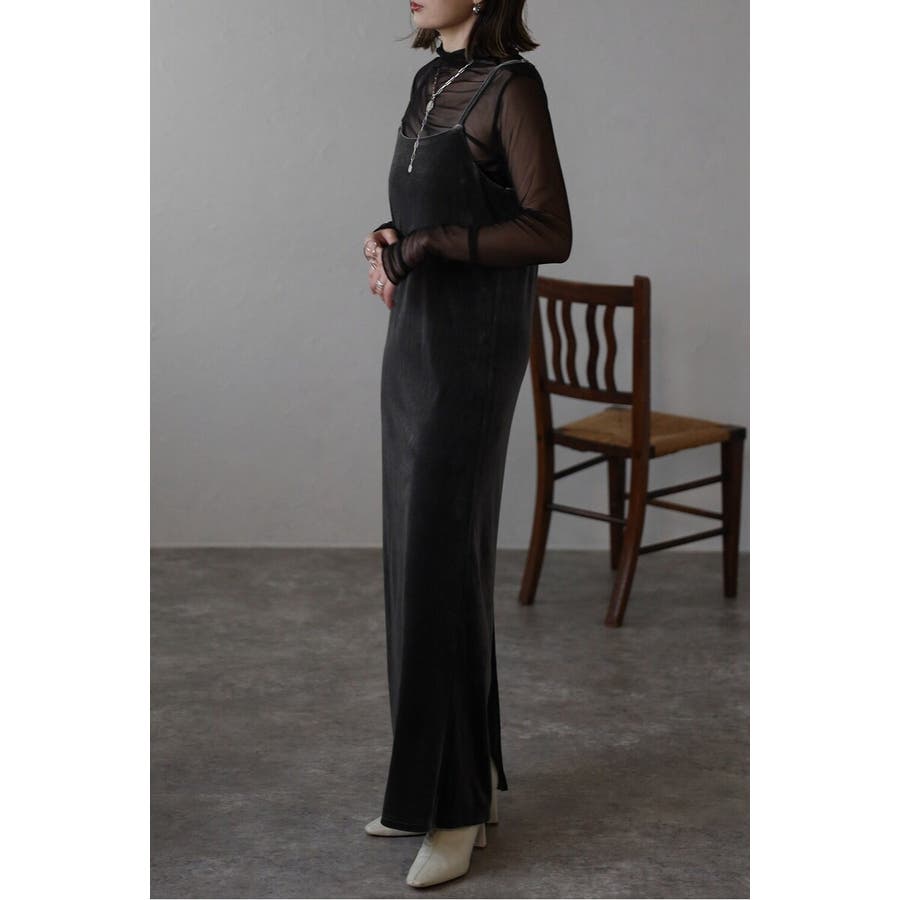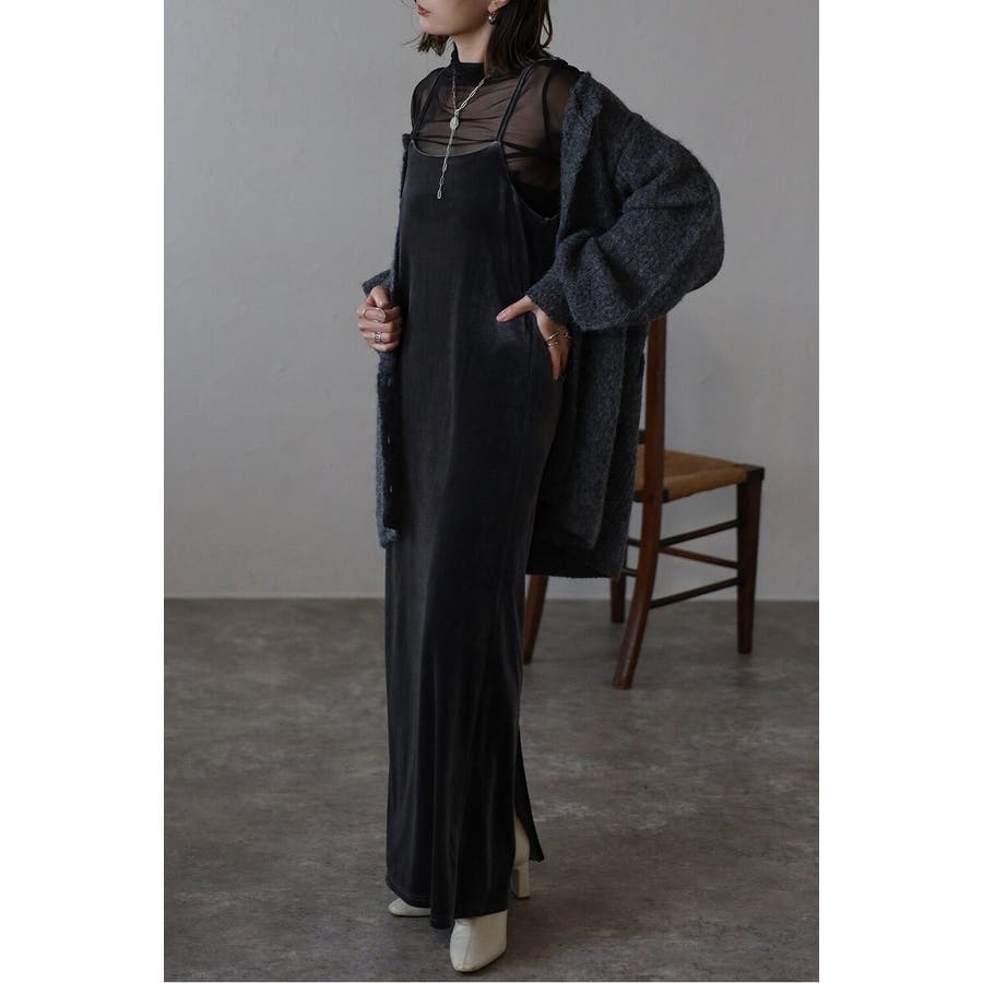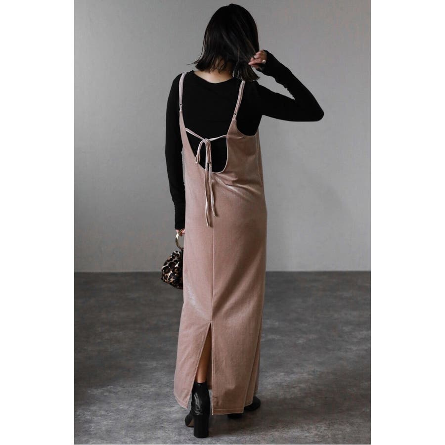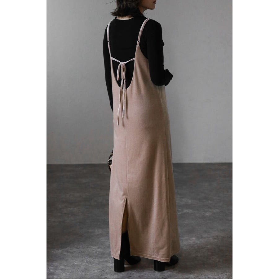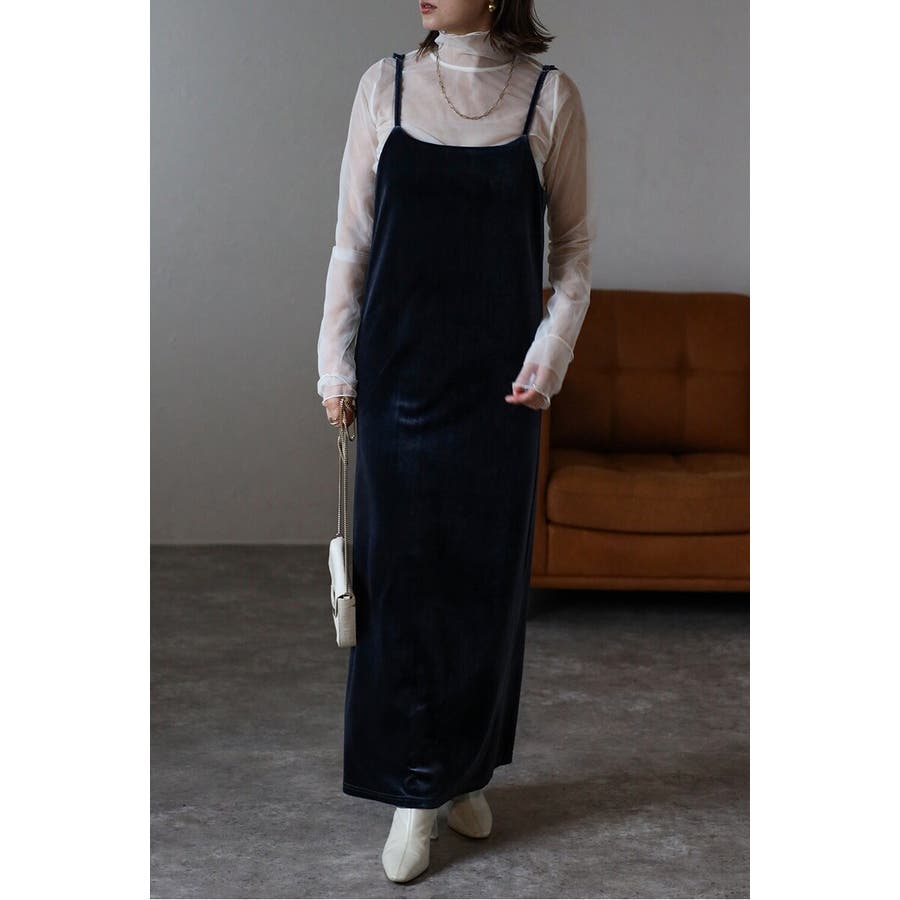 上品な光沢が魅力のベロア素材を使用したキャミワンピース。