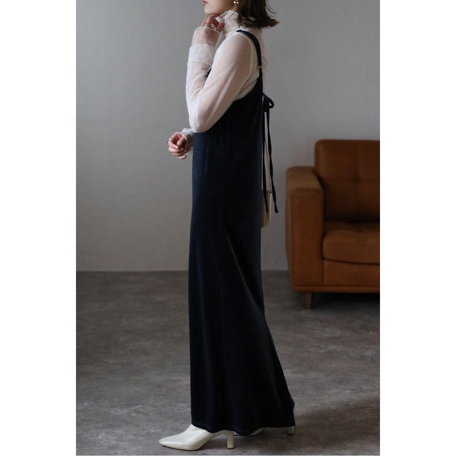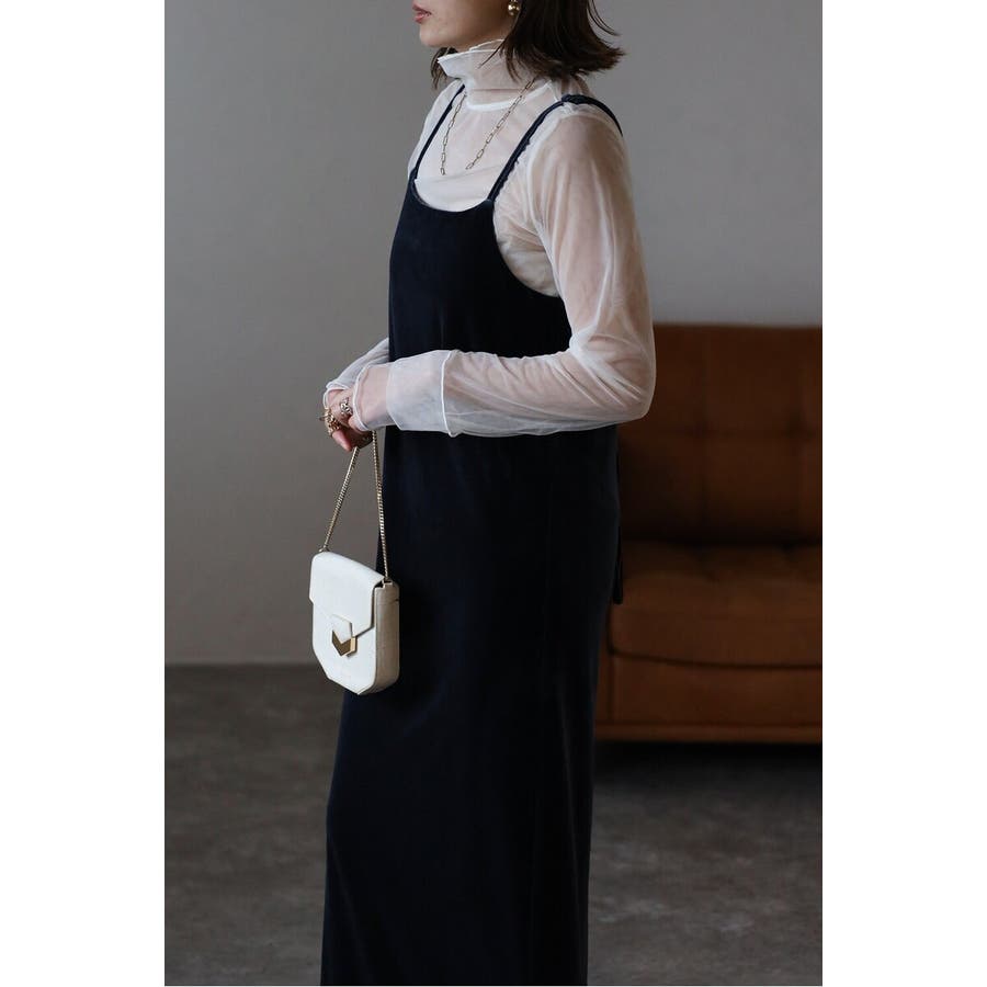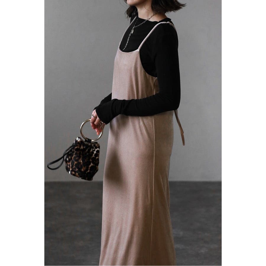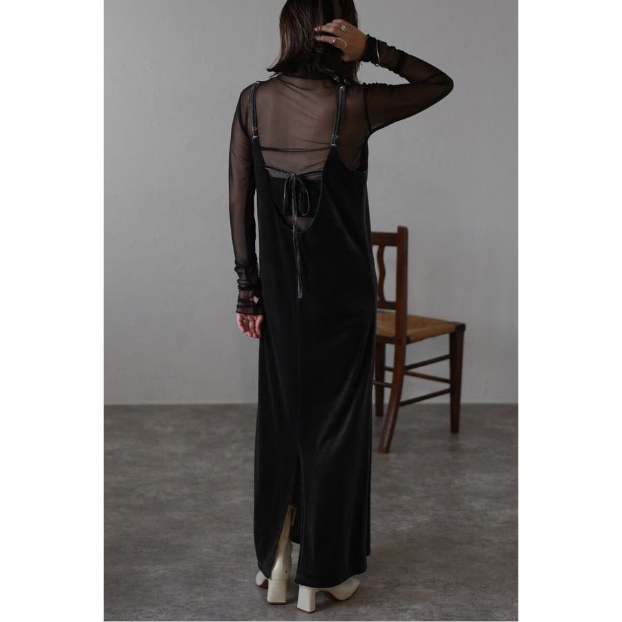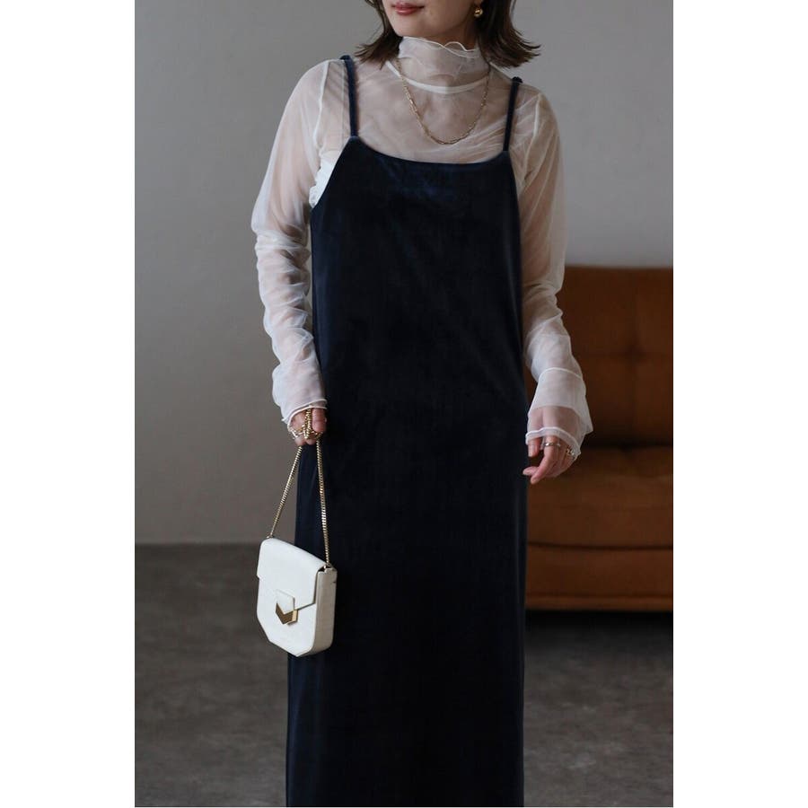 上品な光沢が魅力のベロア素材を使用したキャミワンピース。