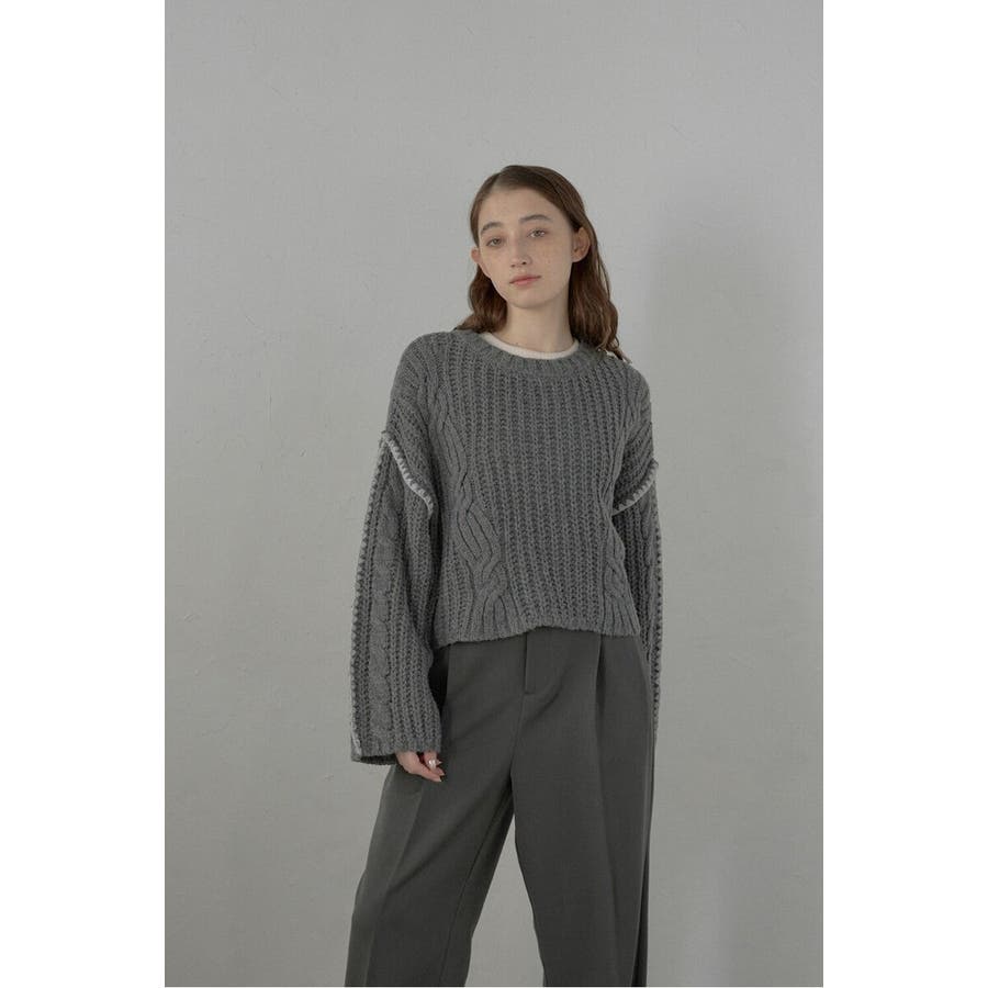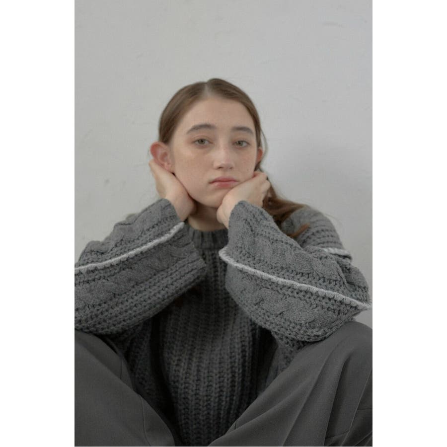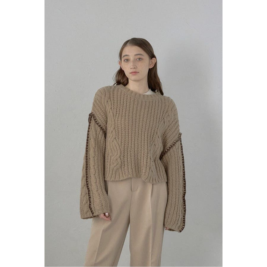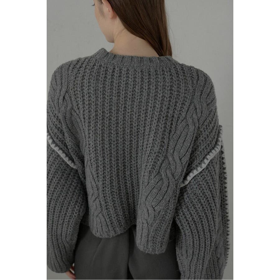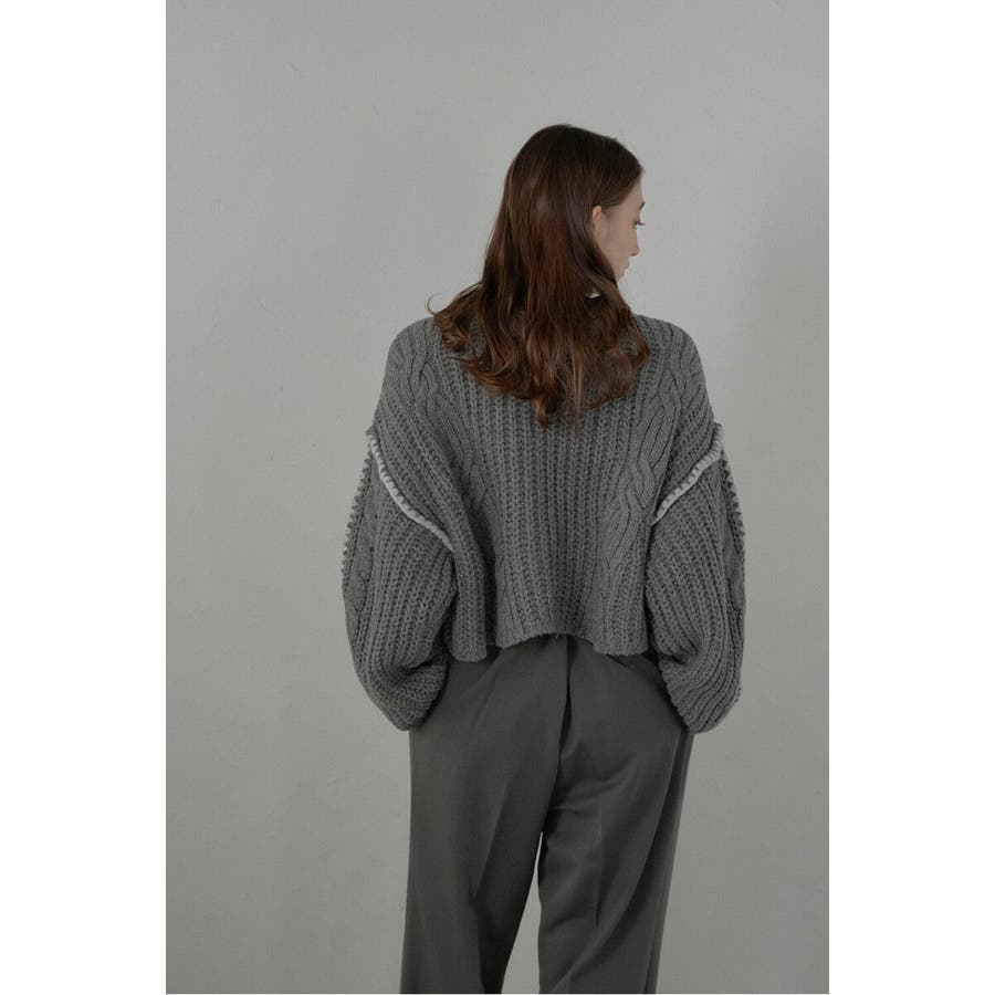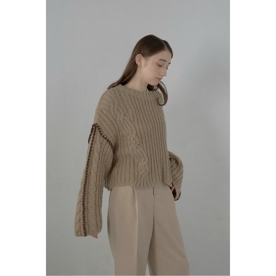 配色ディテールが効いたケーブル編みクロップドニットゆったりとしたシルエットが魅力のケーブル編みクロップドニット。