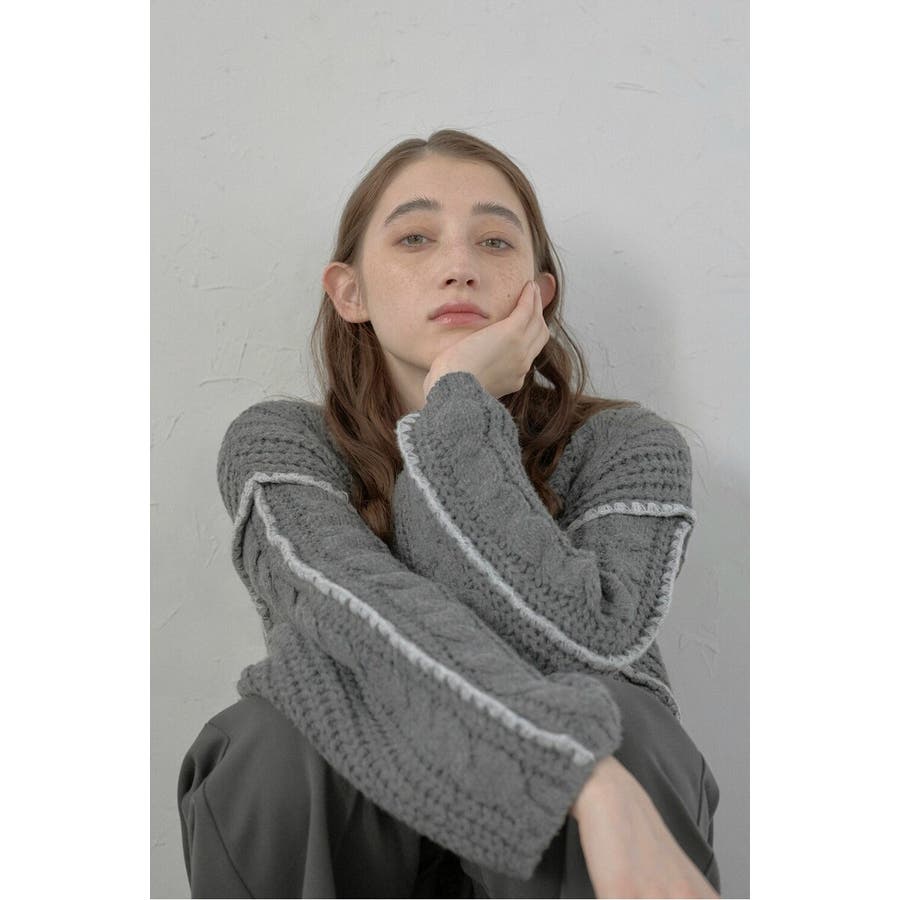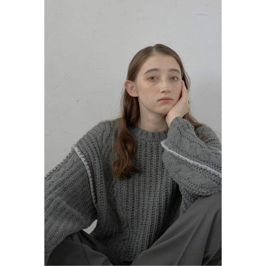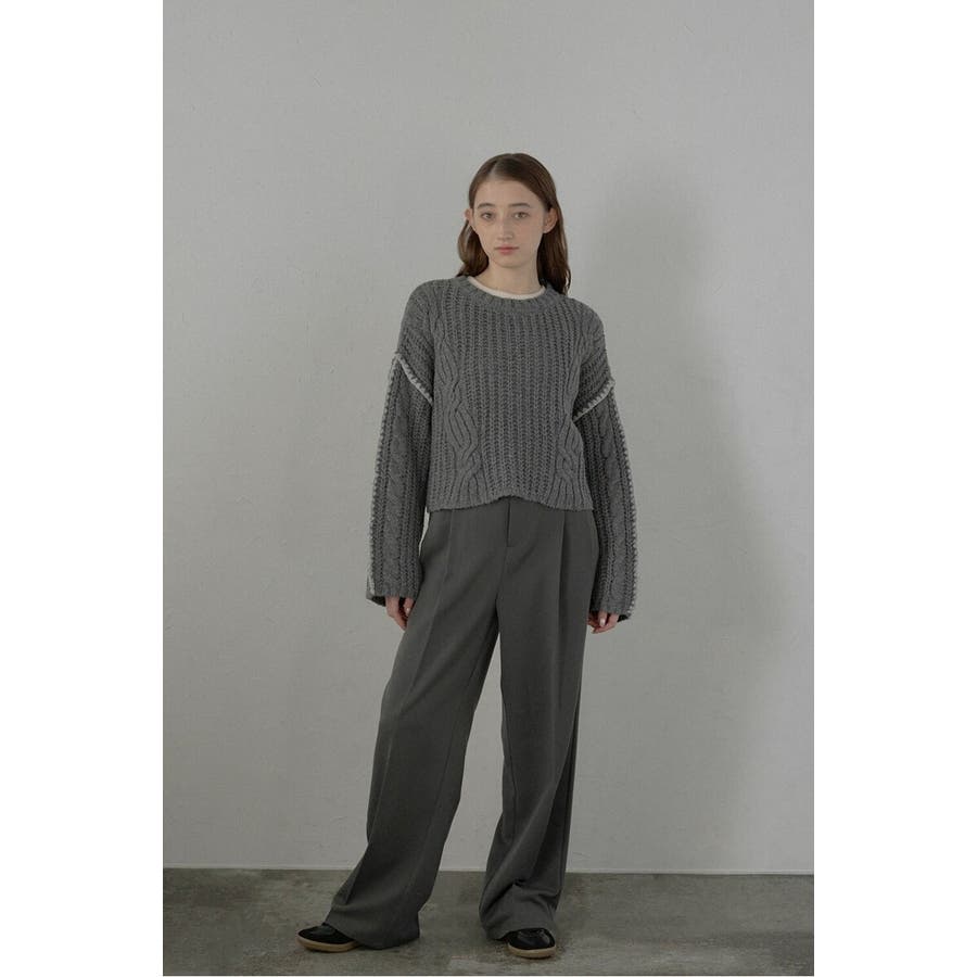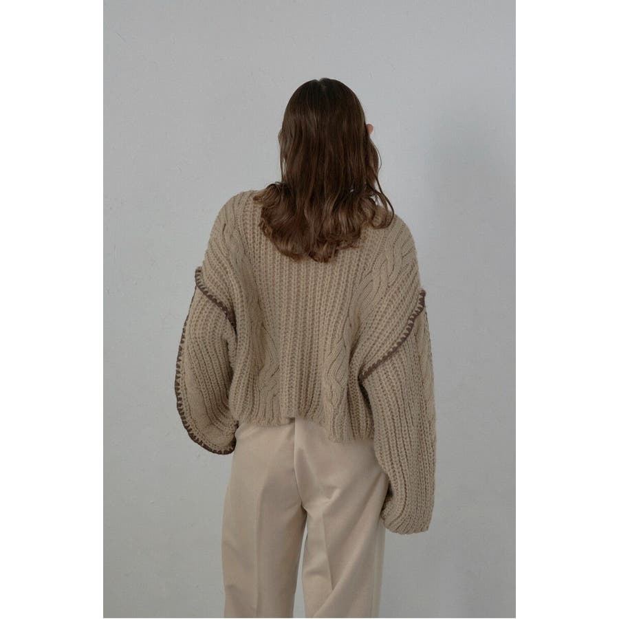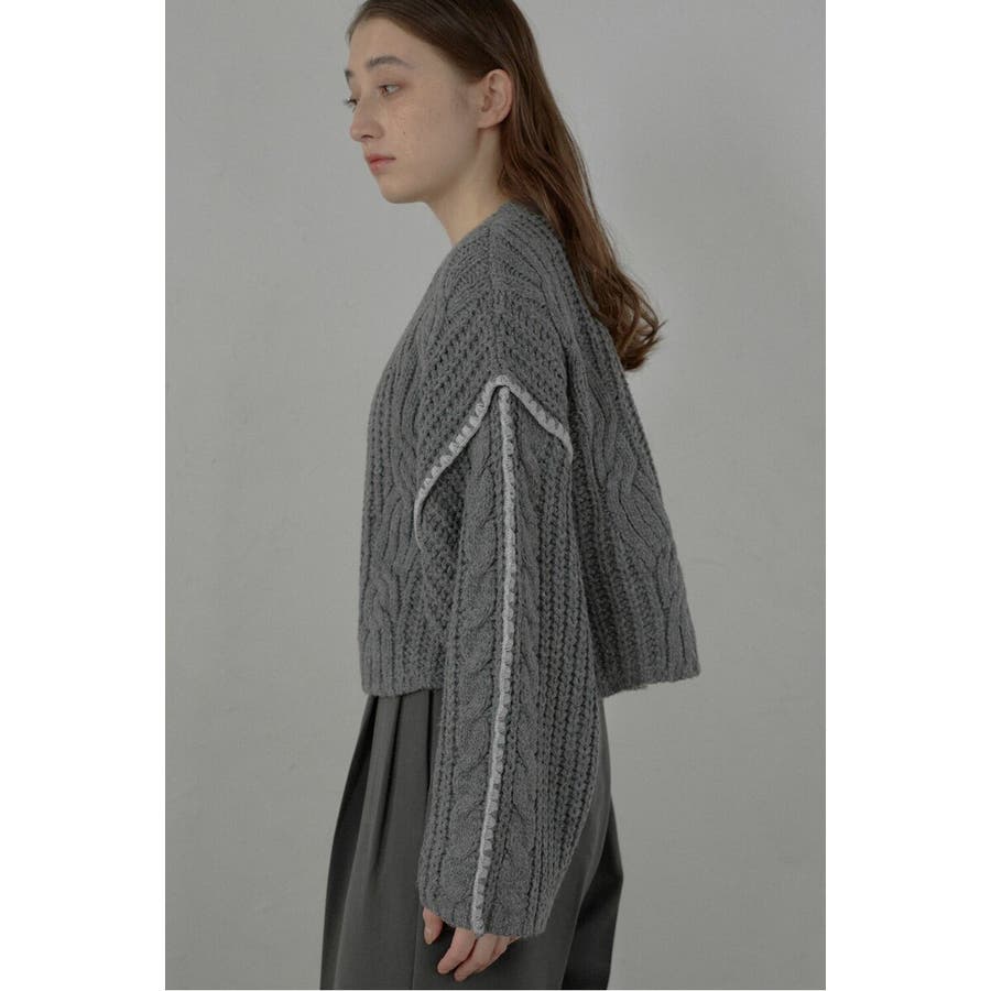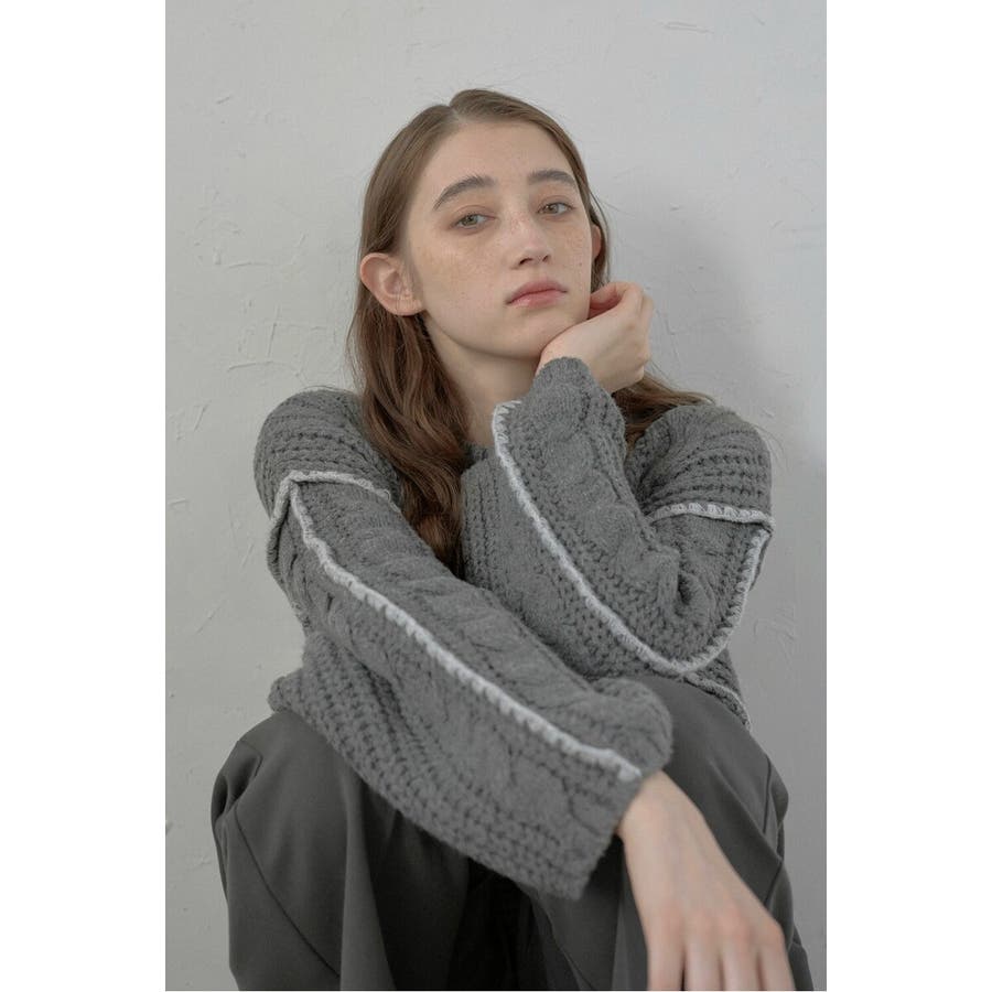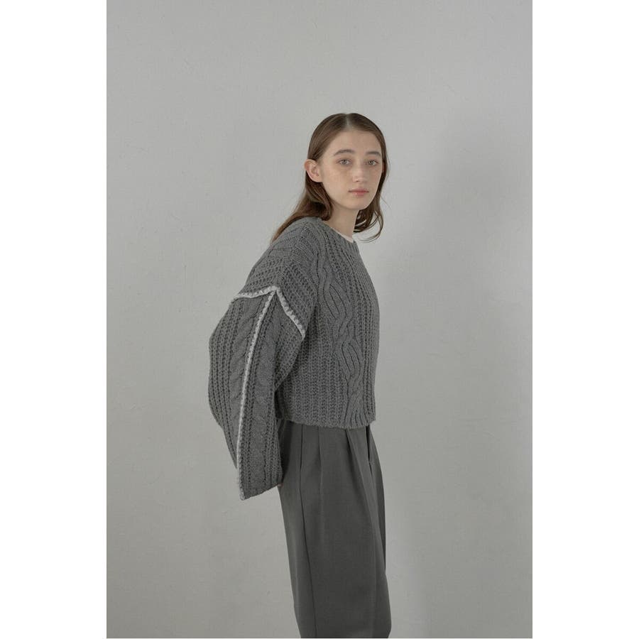 配色ディテールが効いたケーブル編みクロップドニットゆったりとしたシルエットが魅力のケーブル編みクロップドニット。