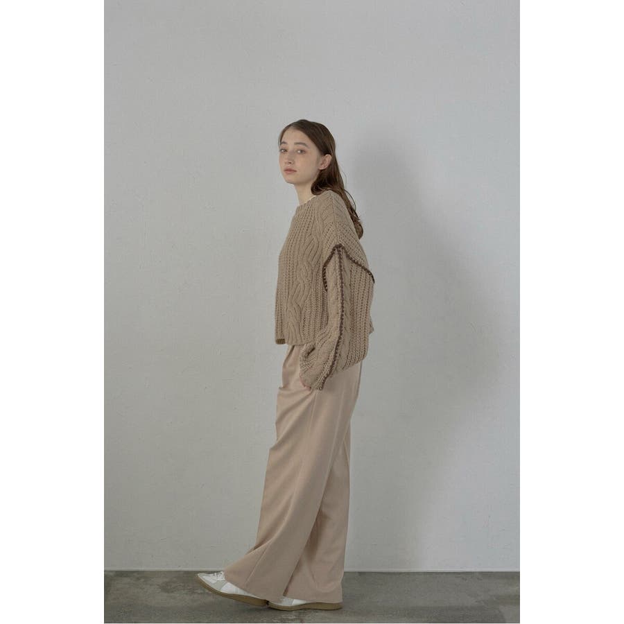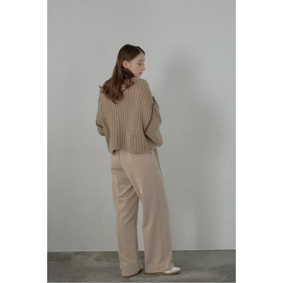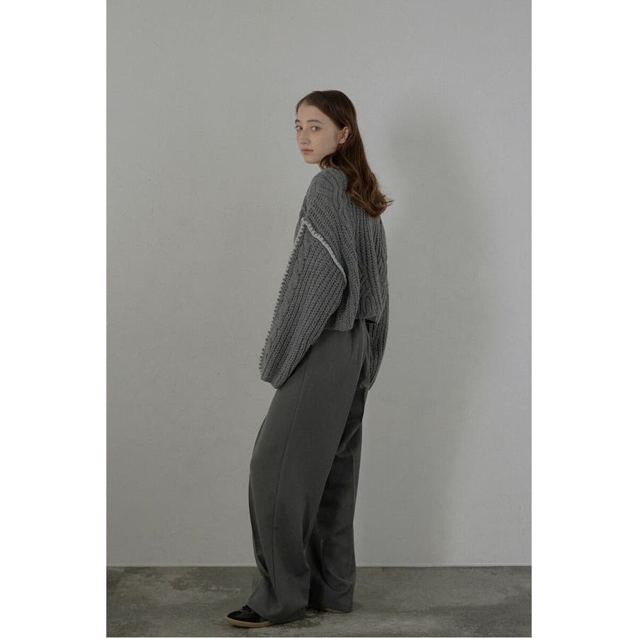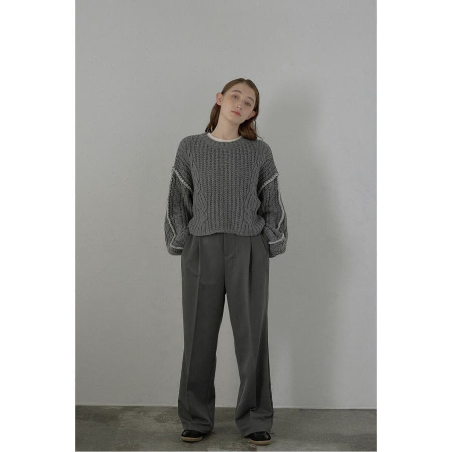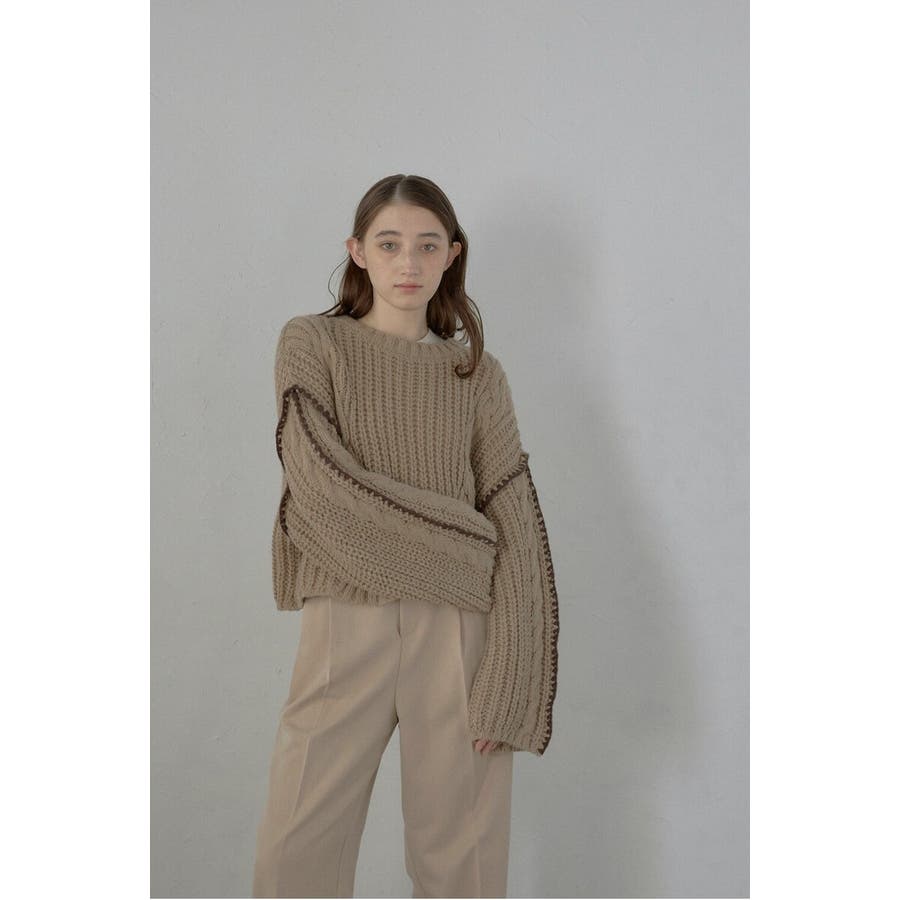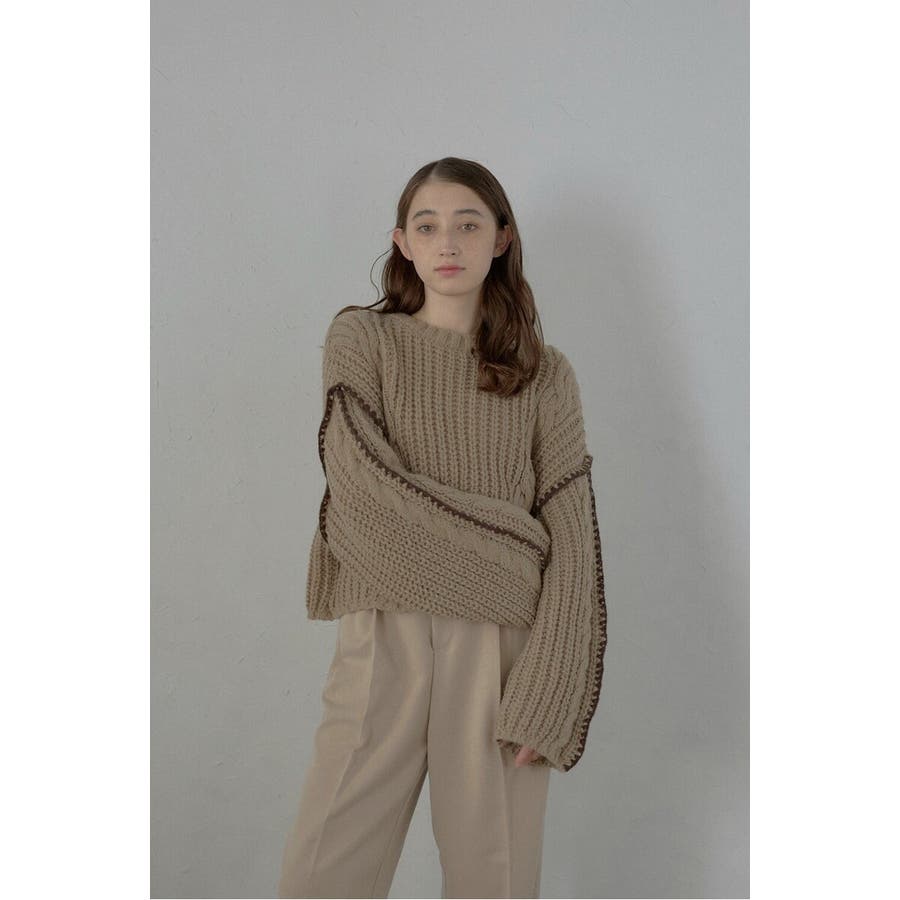 配色ディテールが効いたケーブル編みクロップドニットゆったりとしたシルエットが魅力のケーブル編みクロップドニット。