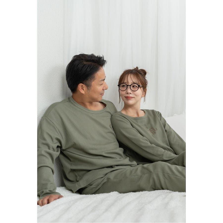 Women'sとMen'sでデザインの違うペアコーデが楽しめるワッフル地のルームウェア。