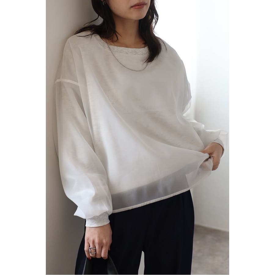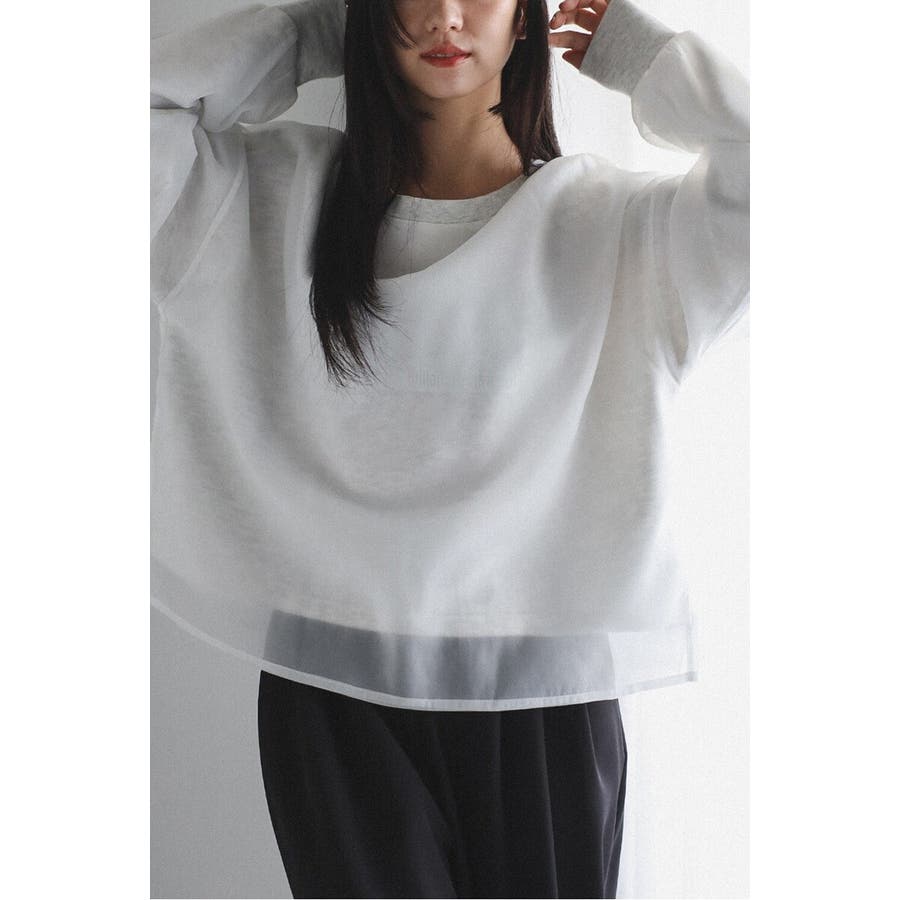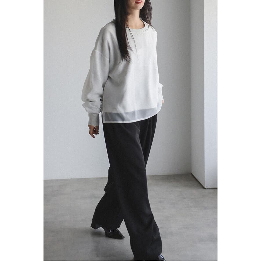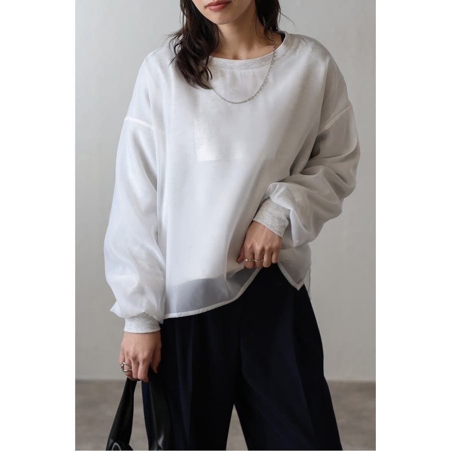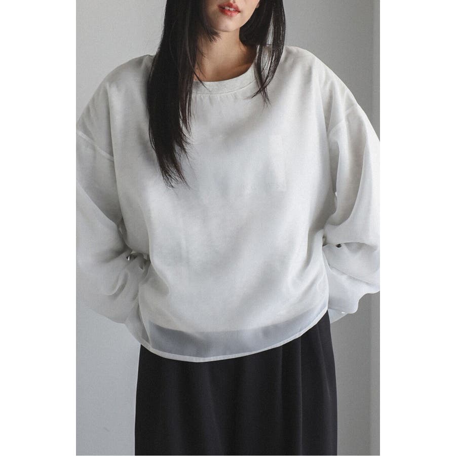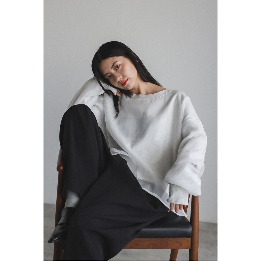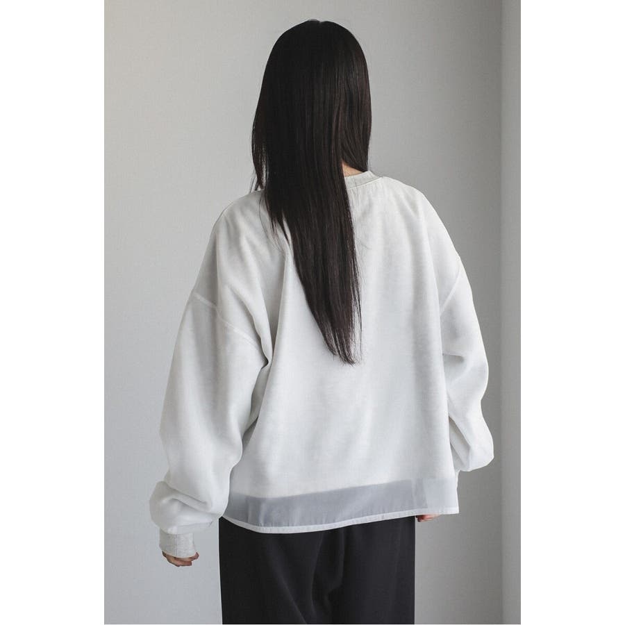 フェミニンな透け感とカジュアルな存在感を兼ね備えたシアードッキングスウェット軽やかなシアー生地を表層に、その中にスウェット生地をレイヤードしたプルオーバースウェット。