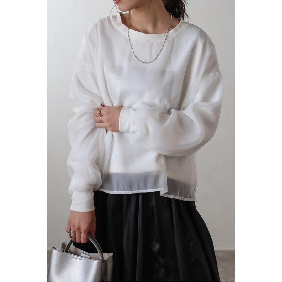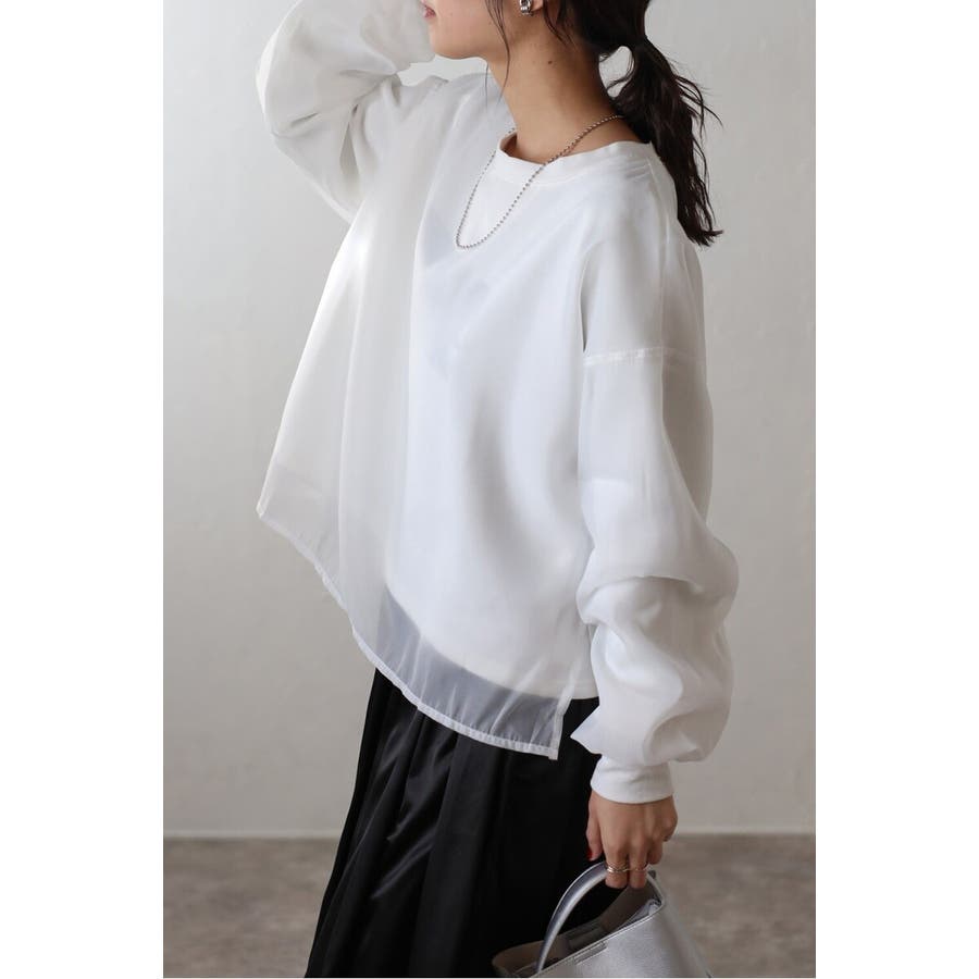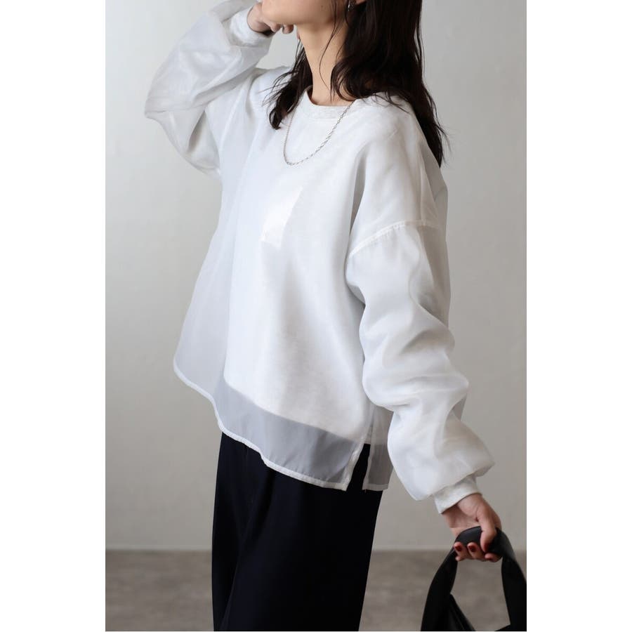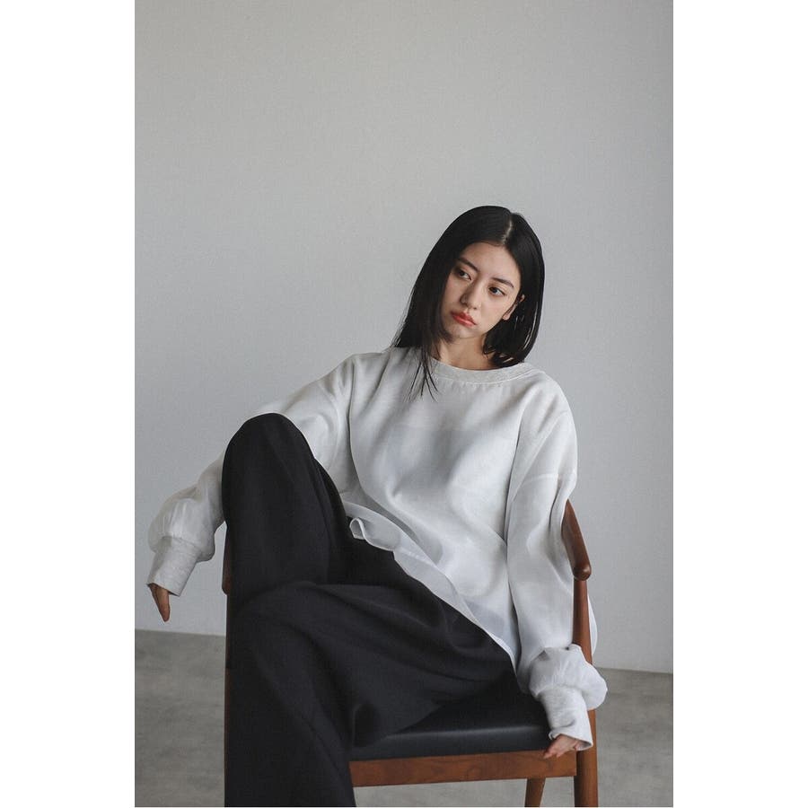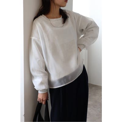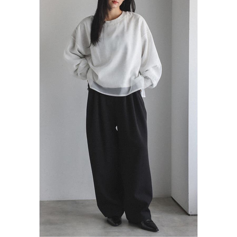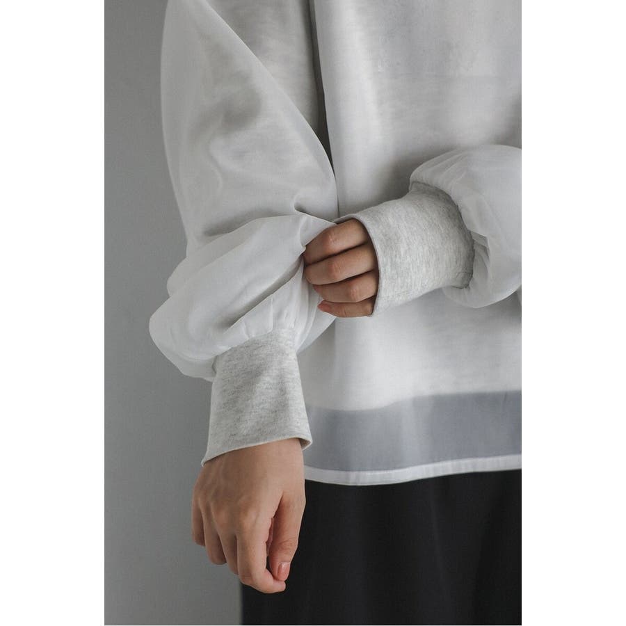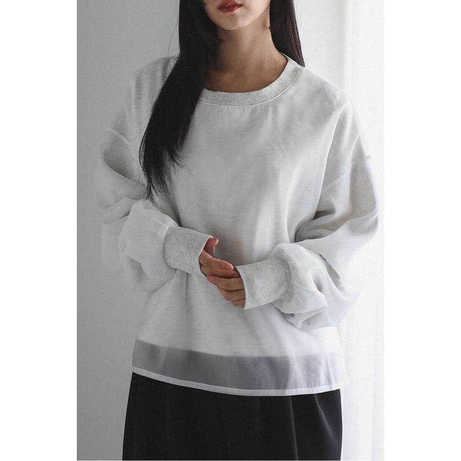 フェミニンな透け感とカジュアルな存在感を兼ね備えたシアードッキングスウェット軽やかなシアー生地を表層に、その中にスウェット生地をレイヤードしたプルオーバースウェット。