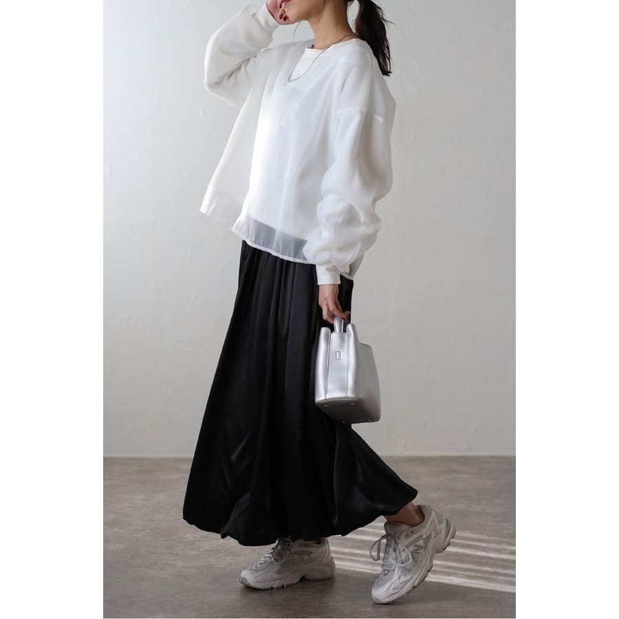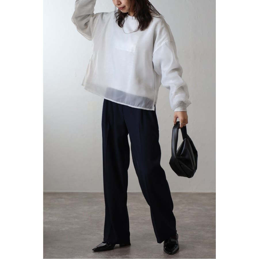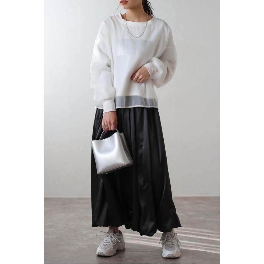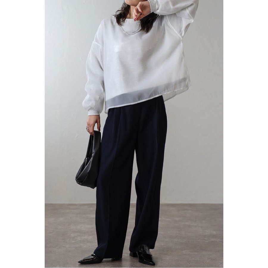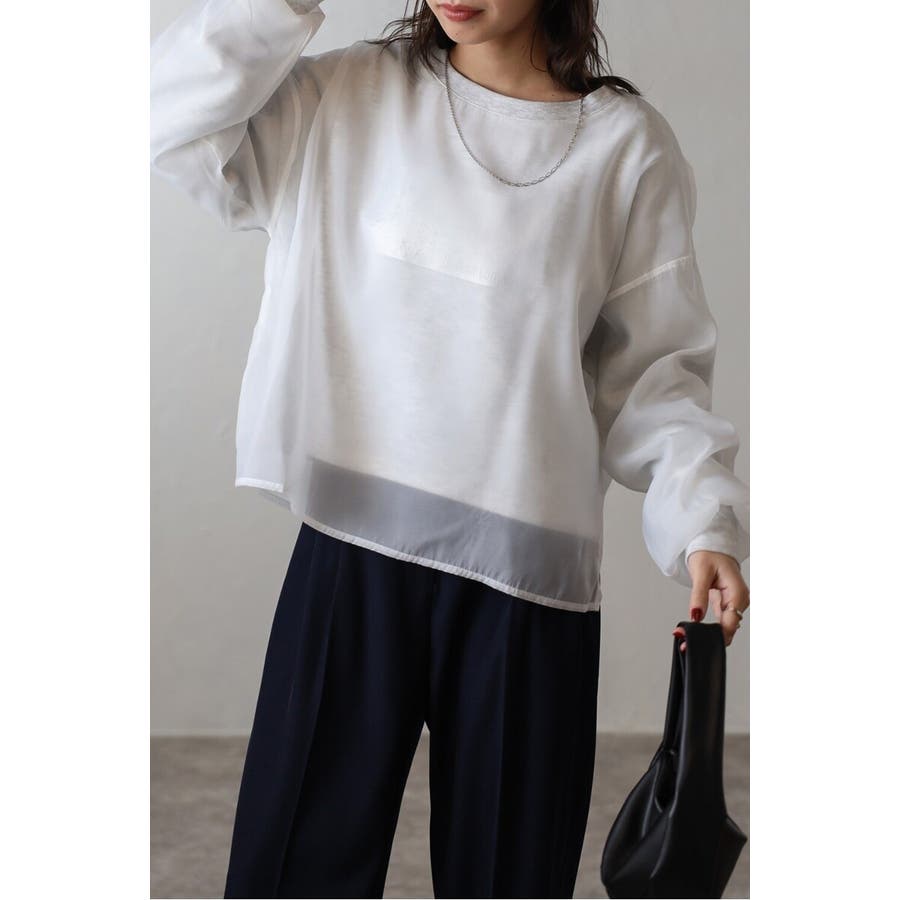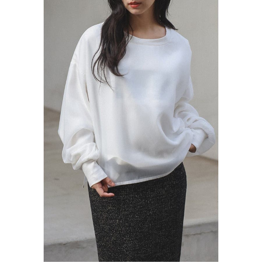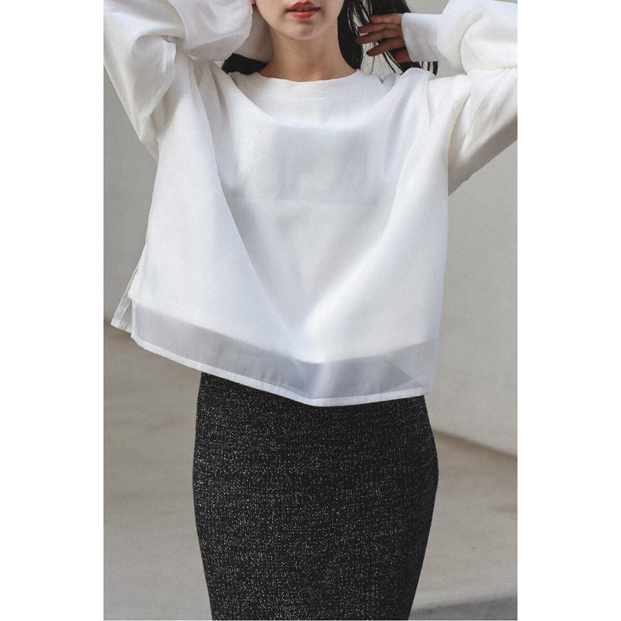 フェミニンな透け感とカジュアルな存在感を兼ね備えたシアードッキングスウェット軽やかなシアー生地を表層に、その中にスウェット生地をレイヤードしたプルオーバースウェット。
