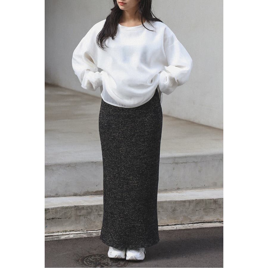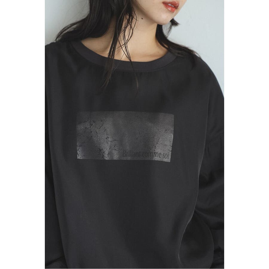 スウェットには箔プリントが施され、光を受けて控えめな輝きを演出します。