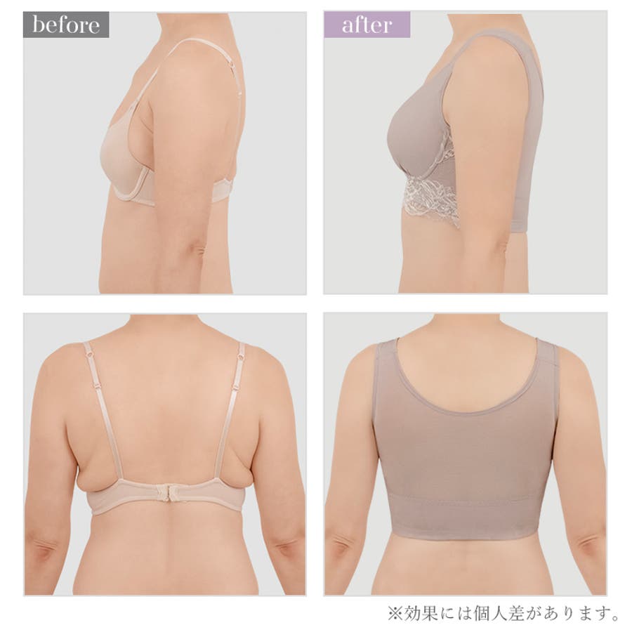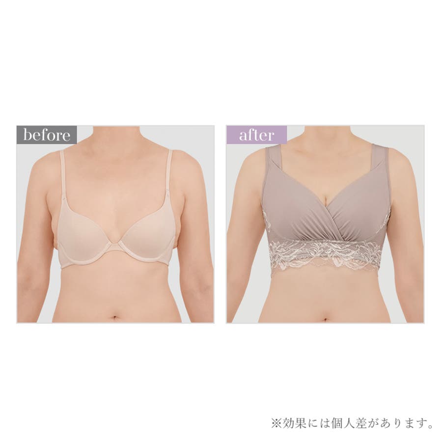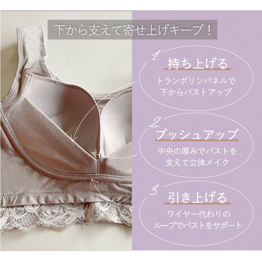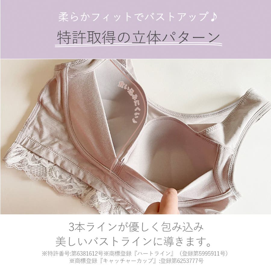 また、特許取得のキャッチャーカップとカップ周りの独自の補整機能により、バストの横広がりを防止し、ノンワイヤーでも立体的なバストシルエットをつくり