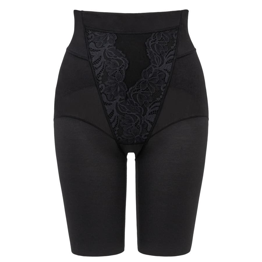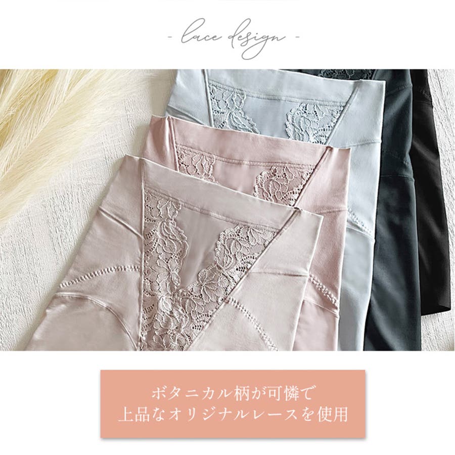 さらに、フロント中央部分はナイロン綿ベア天竺とレースを効果的に配置した5重構造で、気になるお腹をすっきりと整えます。