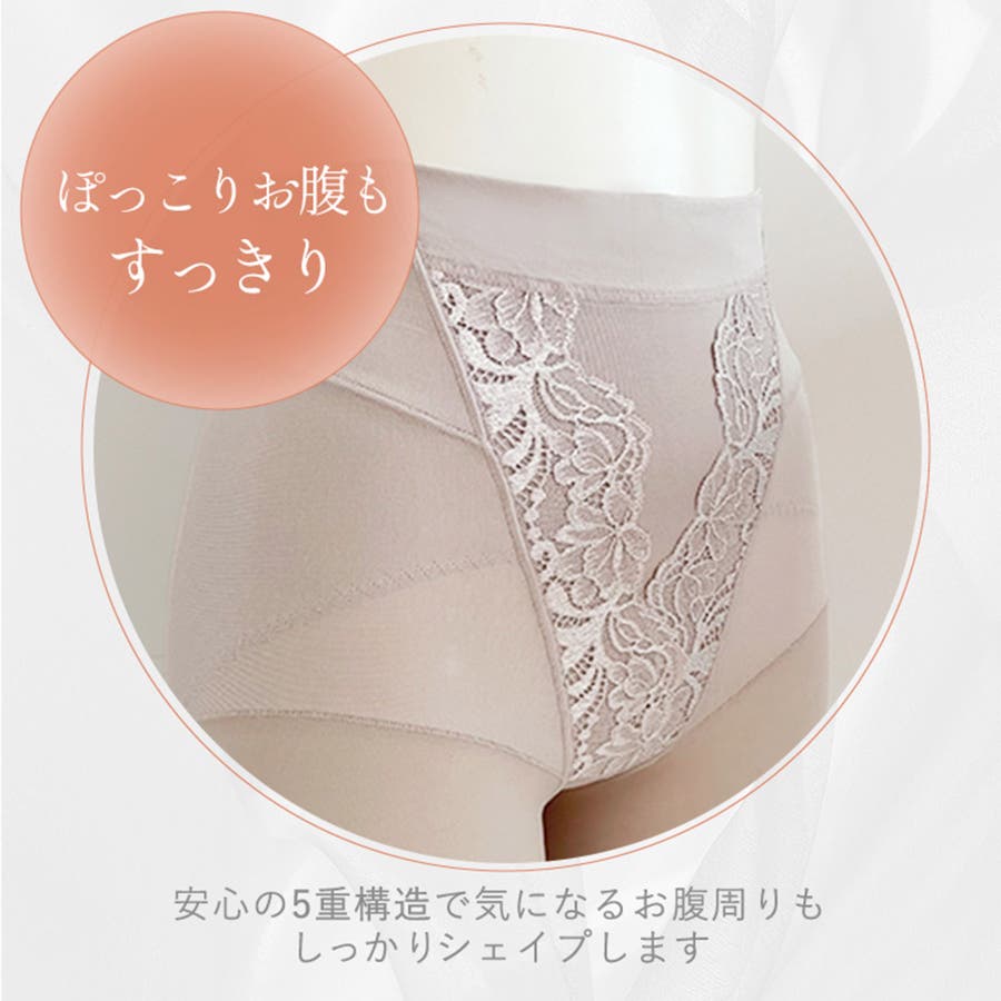 ナイロン綿ベア天竺とレースを効果的に配置した5重構造で、気になるお腹をすっきりと整えます。