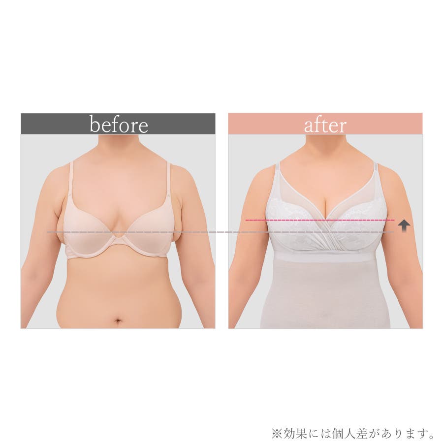 カップ脇は脇高設計で、独自の補整機能と二重のパワーネットが脇部分をしっかり押さえ、バストの横広がりを防ぎ、サイドをすっきり整えます。