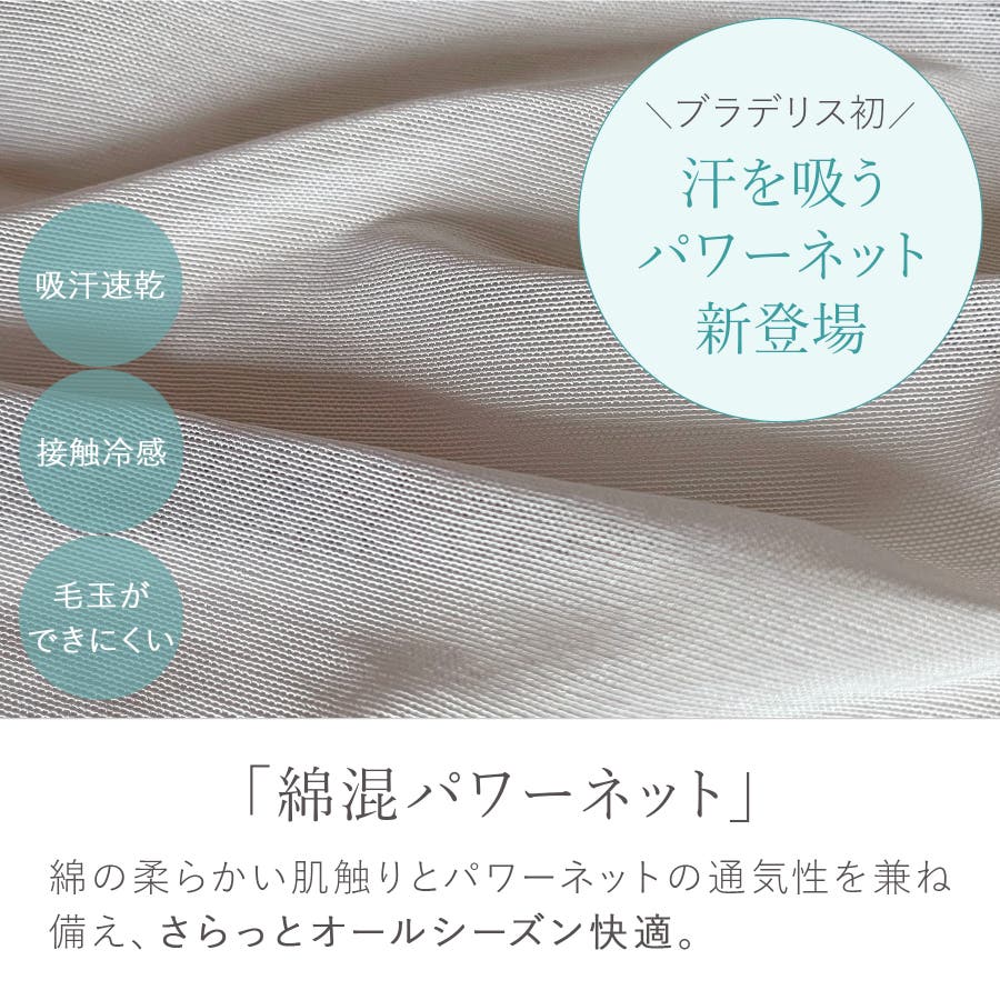天然繊維の綿を混紡したパワーネットを使用。綿の柔らかい肌触りとパワーネットの通気性を兼ね備え、さらっとしてオールシーズン快適に着用できます。