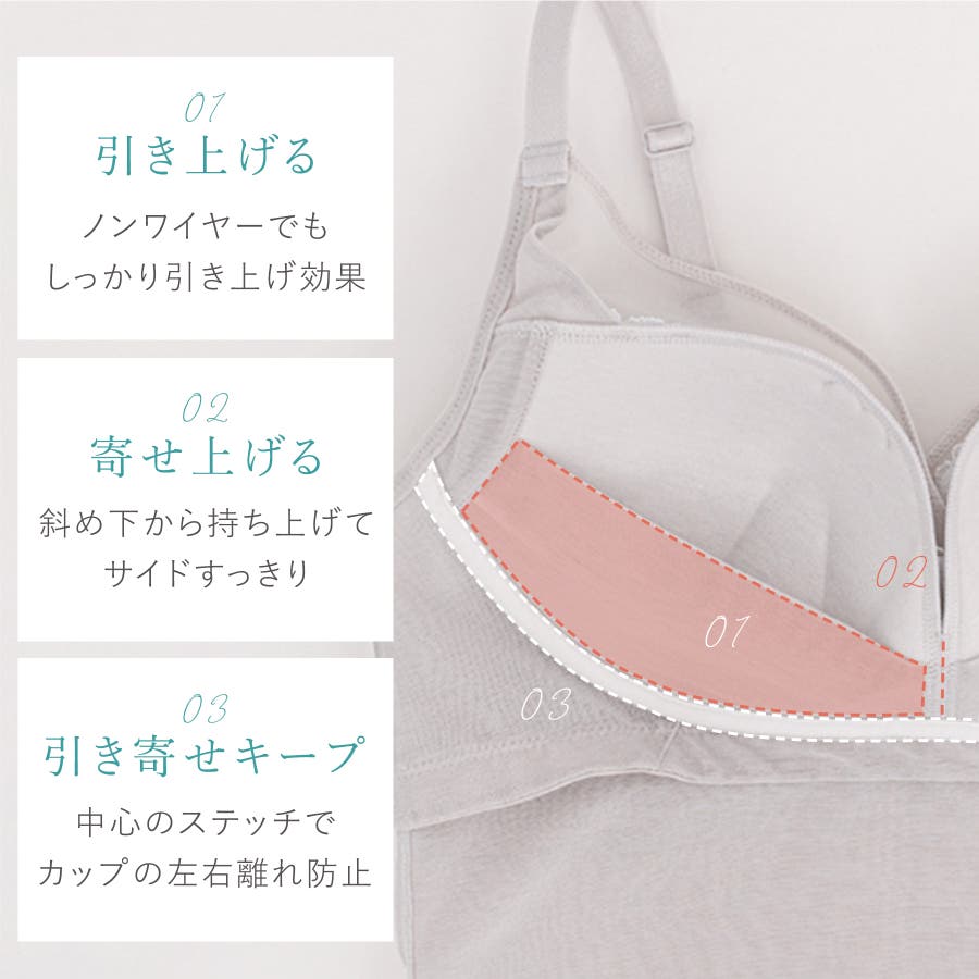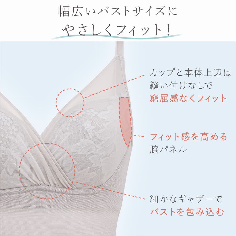 また、伸縮性があるためズレ上がりを軽減し、幅広いバストサイズに柔軟にフィット。